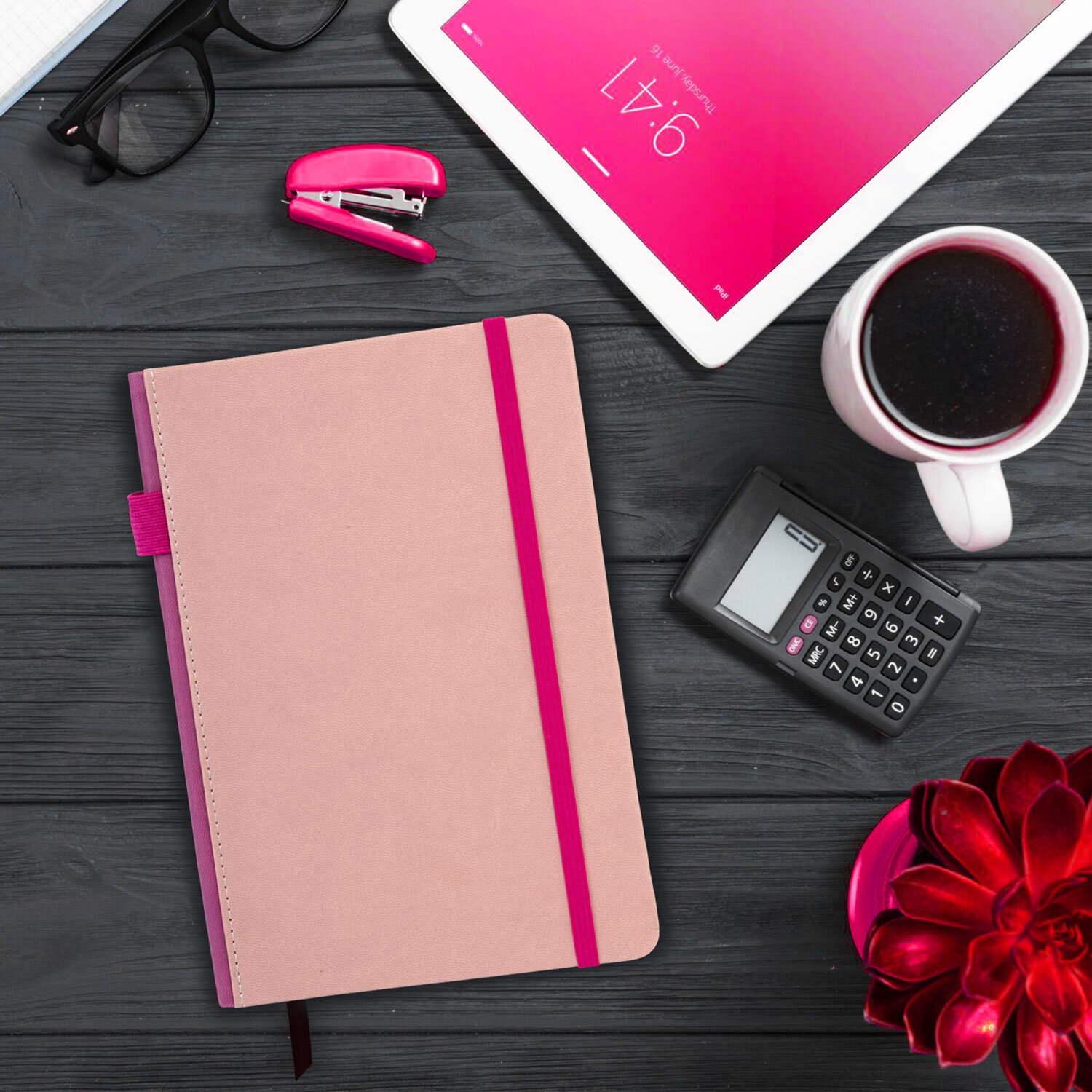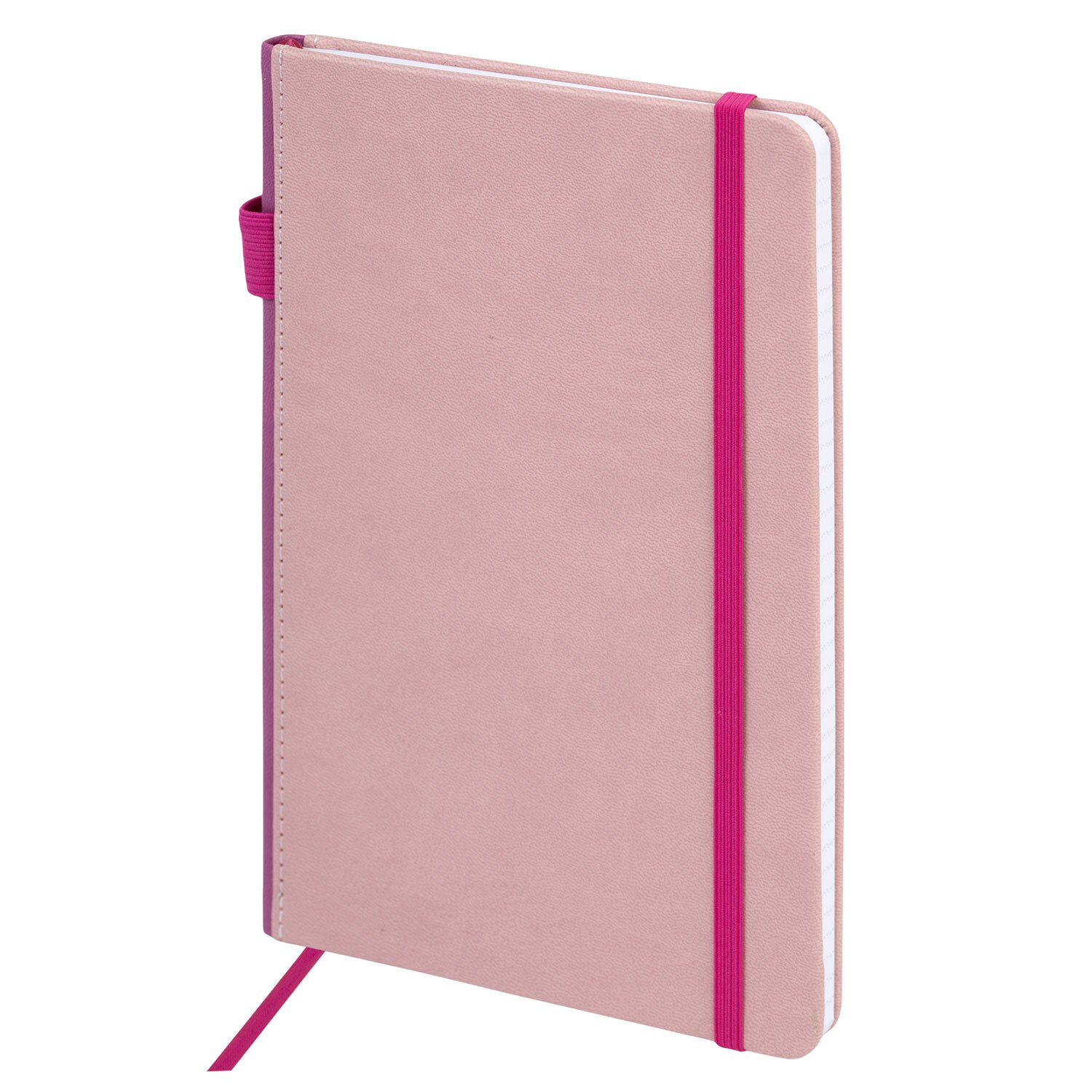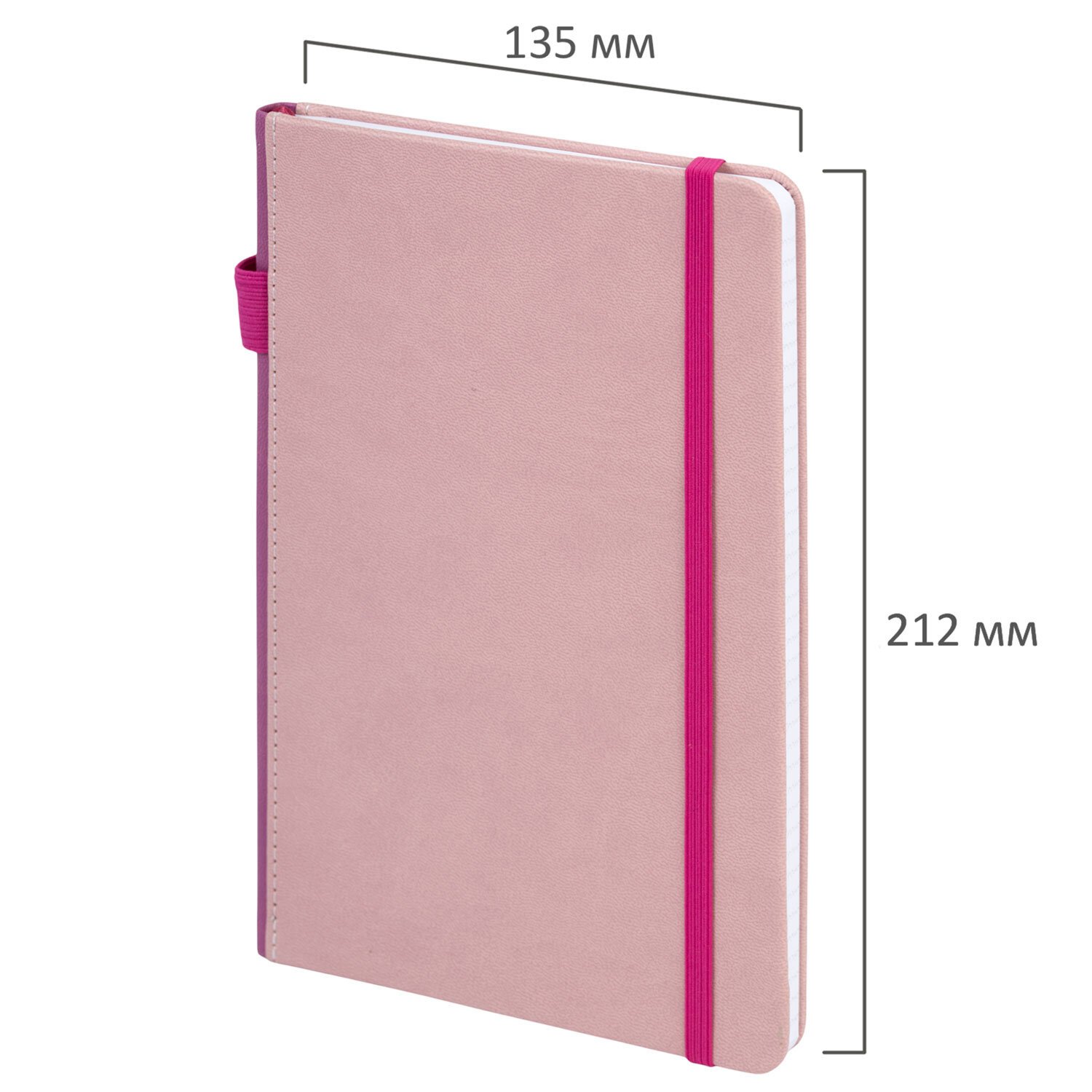 Блокнот А5 135x212мм BRAUBERG "Soft touch" под кожу, резинка, держатель, 80л клетка, розовый, 117148