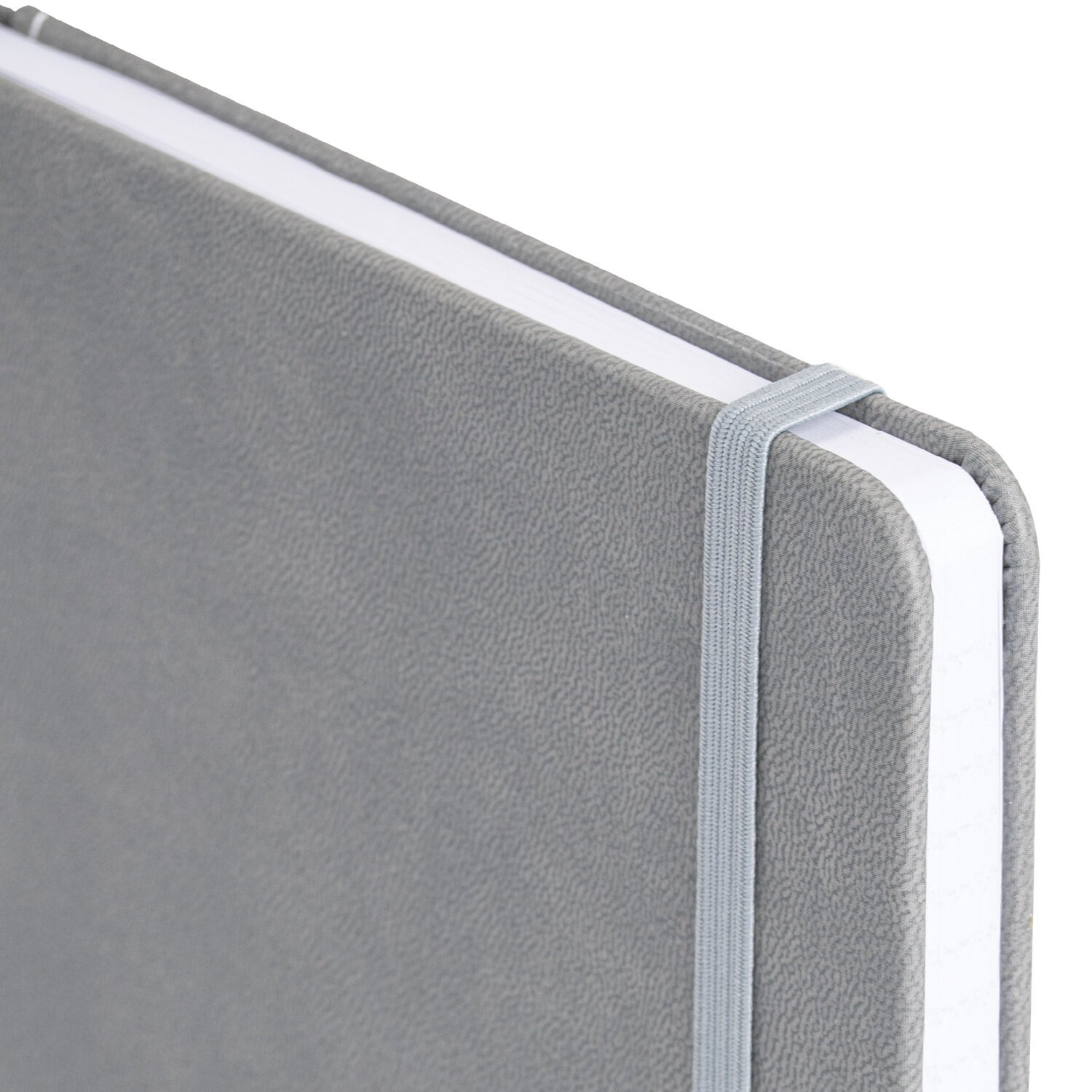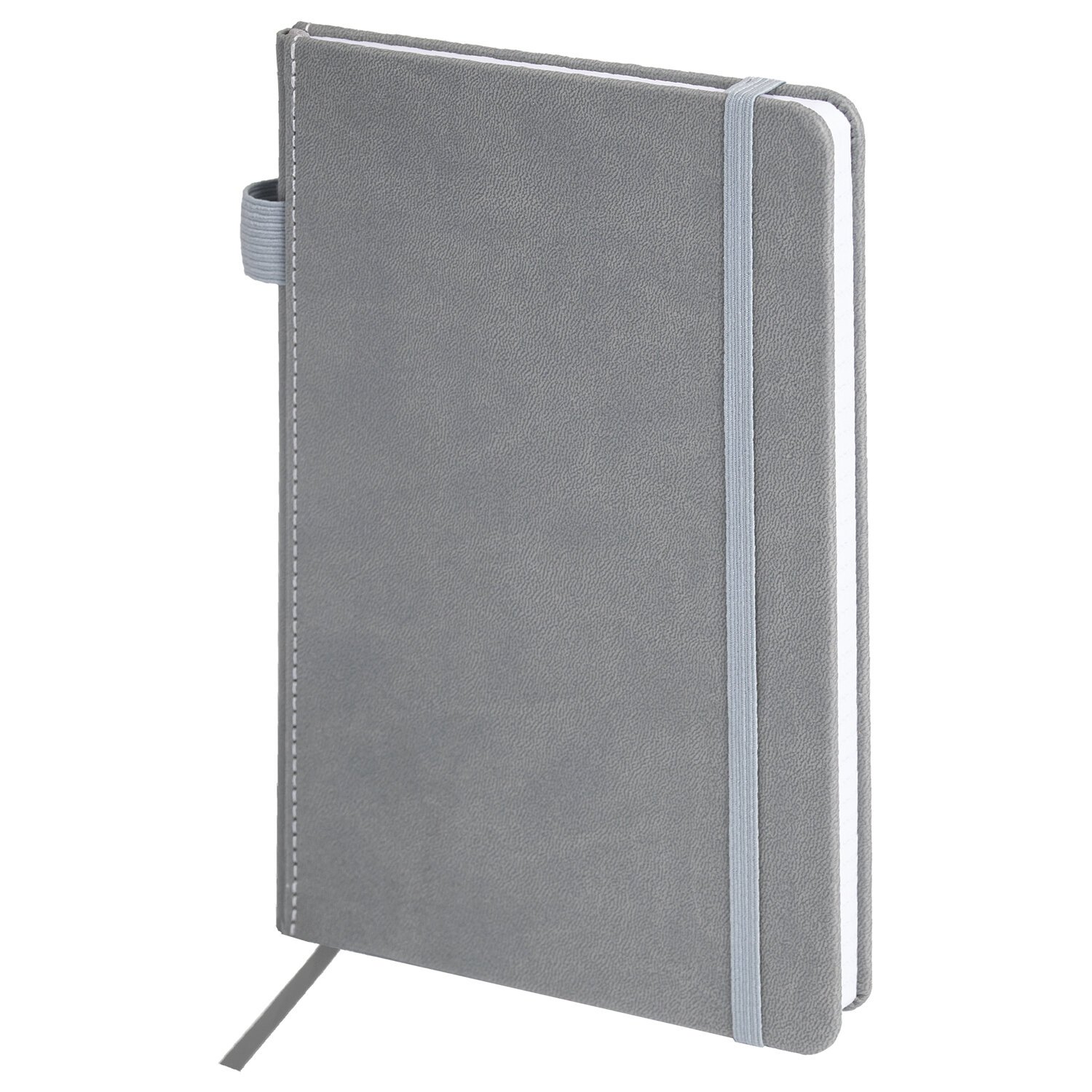 Блокнот А5 135x212мм BRAUBERG "Soft touch" под кожу, резинка, держатель, 80л клетка, серый, 117146