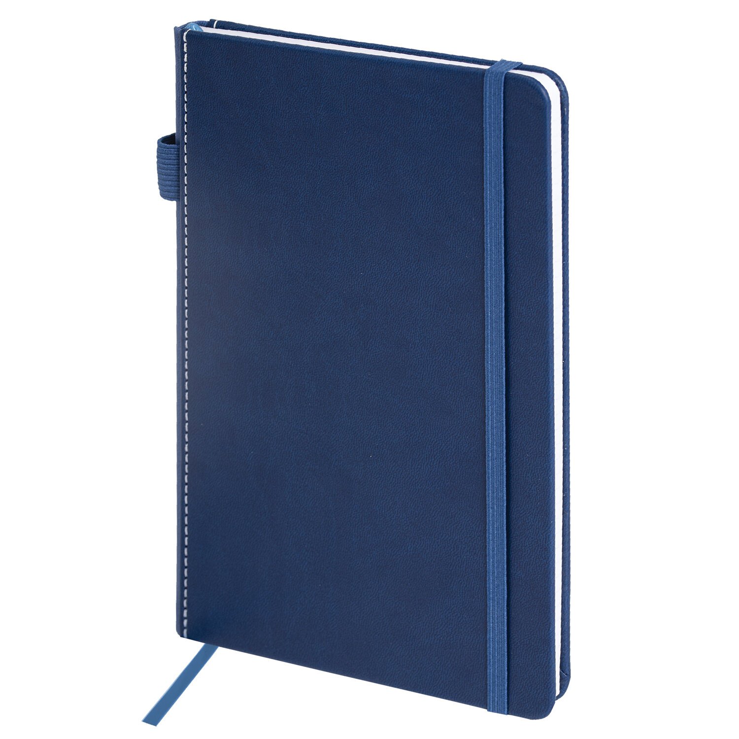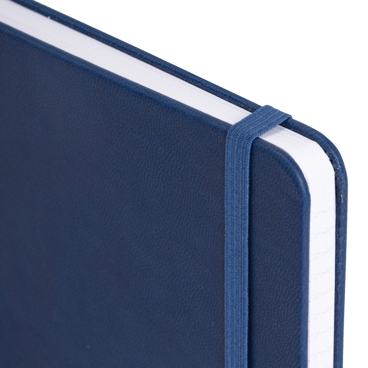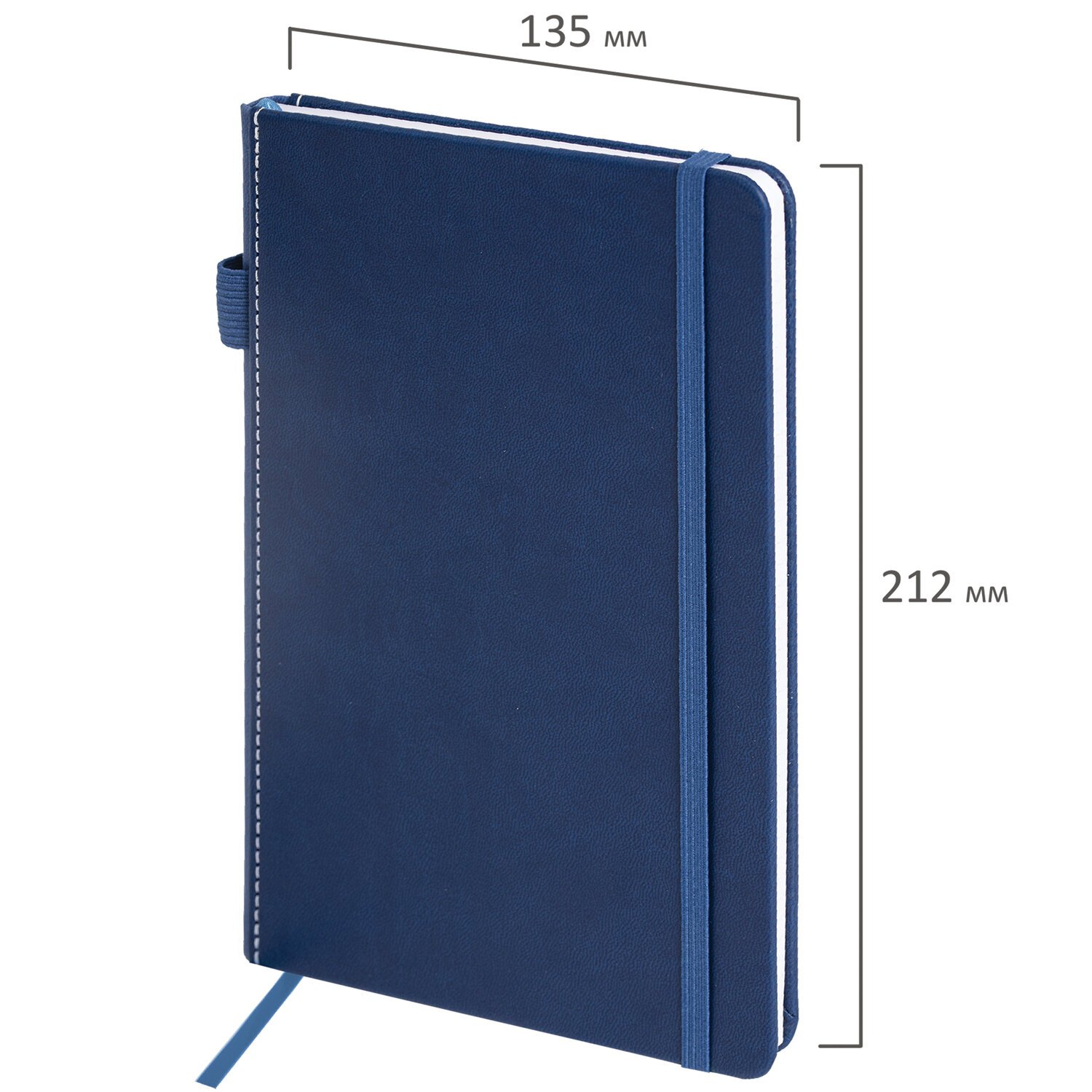 Блокнот А5 135x212мм BRAUBERG "Soft touch" под кожу, резинка, держатель, 80л клетка, синий, 117149