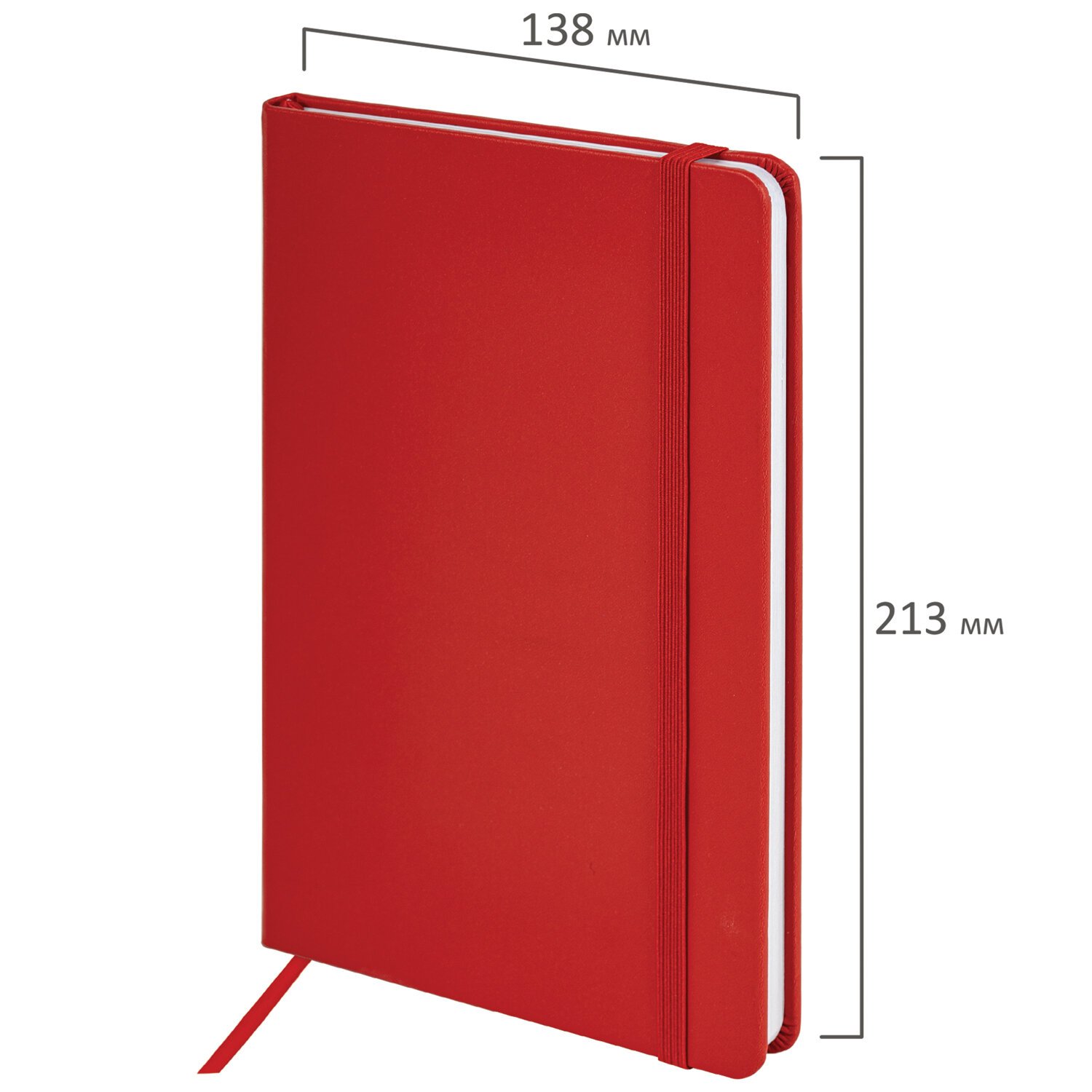 Блокнот А5 135x212мм BRAUBERG "Soft touch" под кожу, резинка, держатель, 80л клетка, красный, 117147