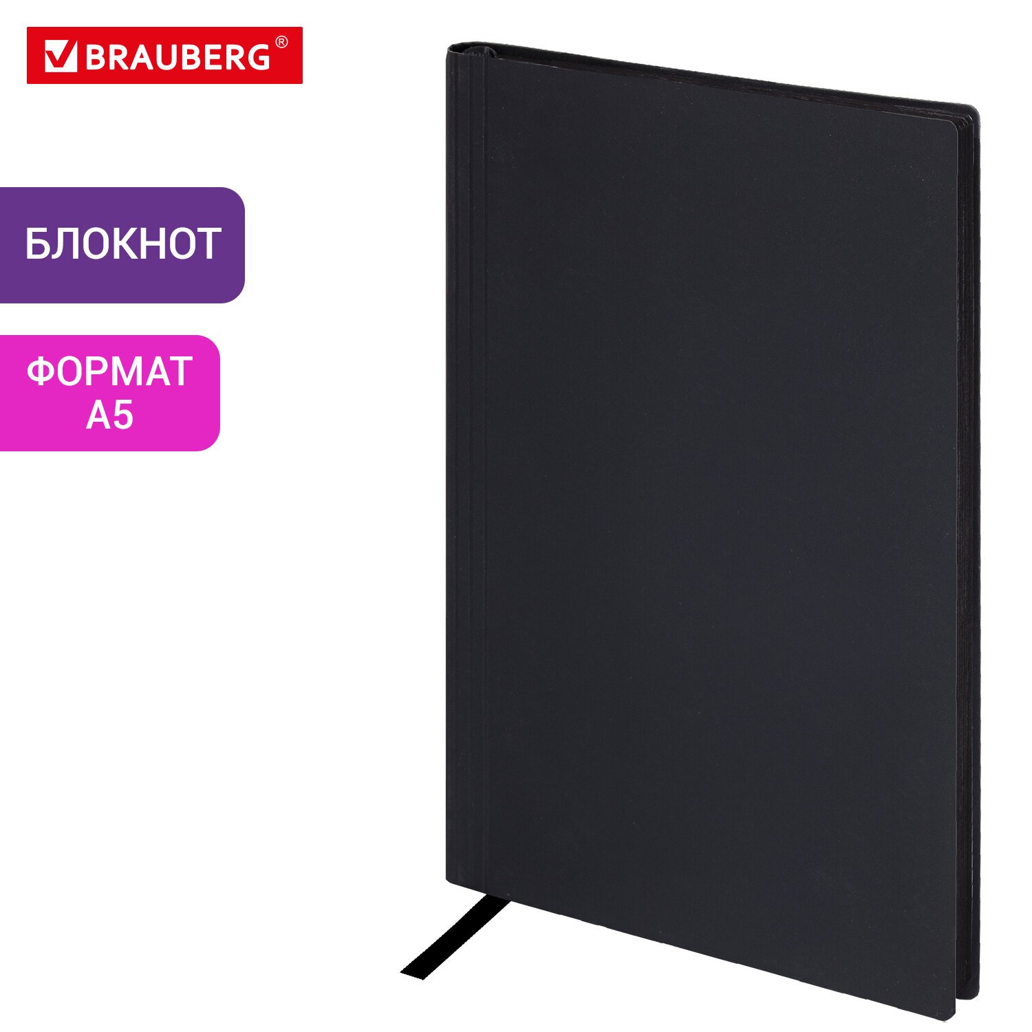 Блокнот А5 138x213мм BRAUBERG Tissage, под кожу, 80л, резинка, клетка, черный, 116601