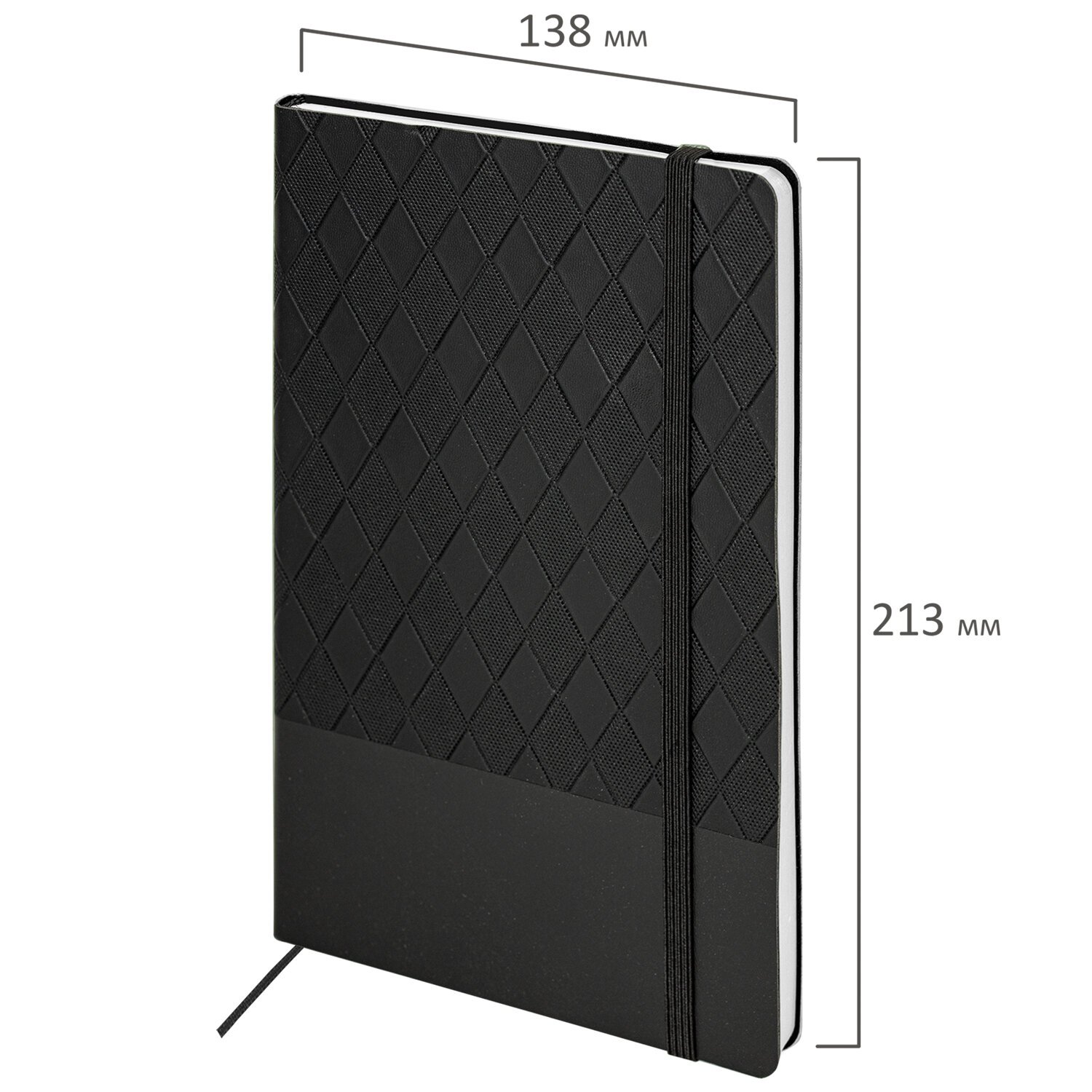 Блокнот А5 138x213мм BRAUBERG Tissage, под кожу, 80л, резинка, клетка, черный, 116601