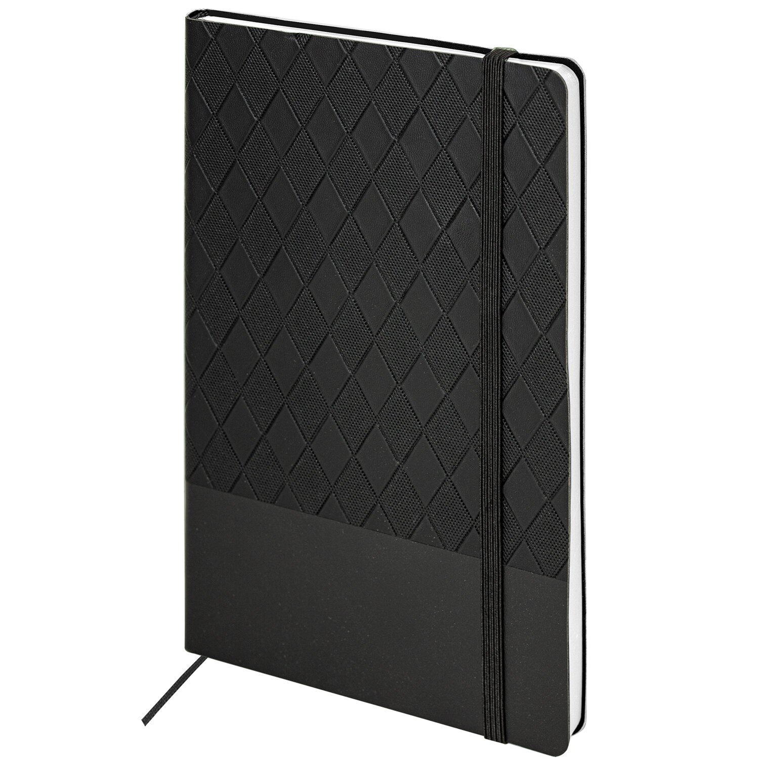 Гибкая обложка стилизована под комбинированную кожу с оригинальным рисунком. Имеет закругленные уголки. Подходит для горячего тиснения. 80 листов позволят зафиксировать большой объем информации. Линовка блока в клетку (5х5 мм) дает возможность аккуратно заполнить цифровые значения, а также нанести чертежные зарисовки. Внутренний блок выполнен из бумаги белого цвета плотностью 70 г/м2 и крепится к обложке с помощью книжного переплета. Снабжен резинкой-фиксатором, благодаря чему блокнот не откроется в сумочке или портфеле, и листы не помнутся. Дополнением является закладка-ляссе, с помощью которой при необходимости можно быстро открыть нужную страницу. Формат блокнота А5 (138х213 мм) позволит владельцу поместить его в кейс или сумку малых габаритов.