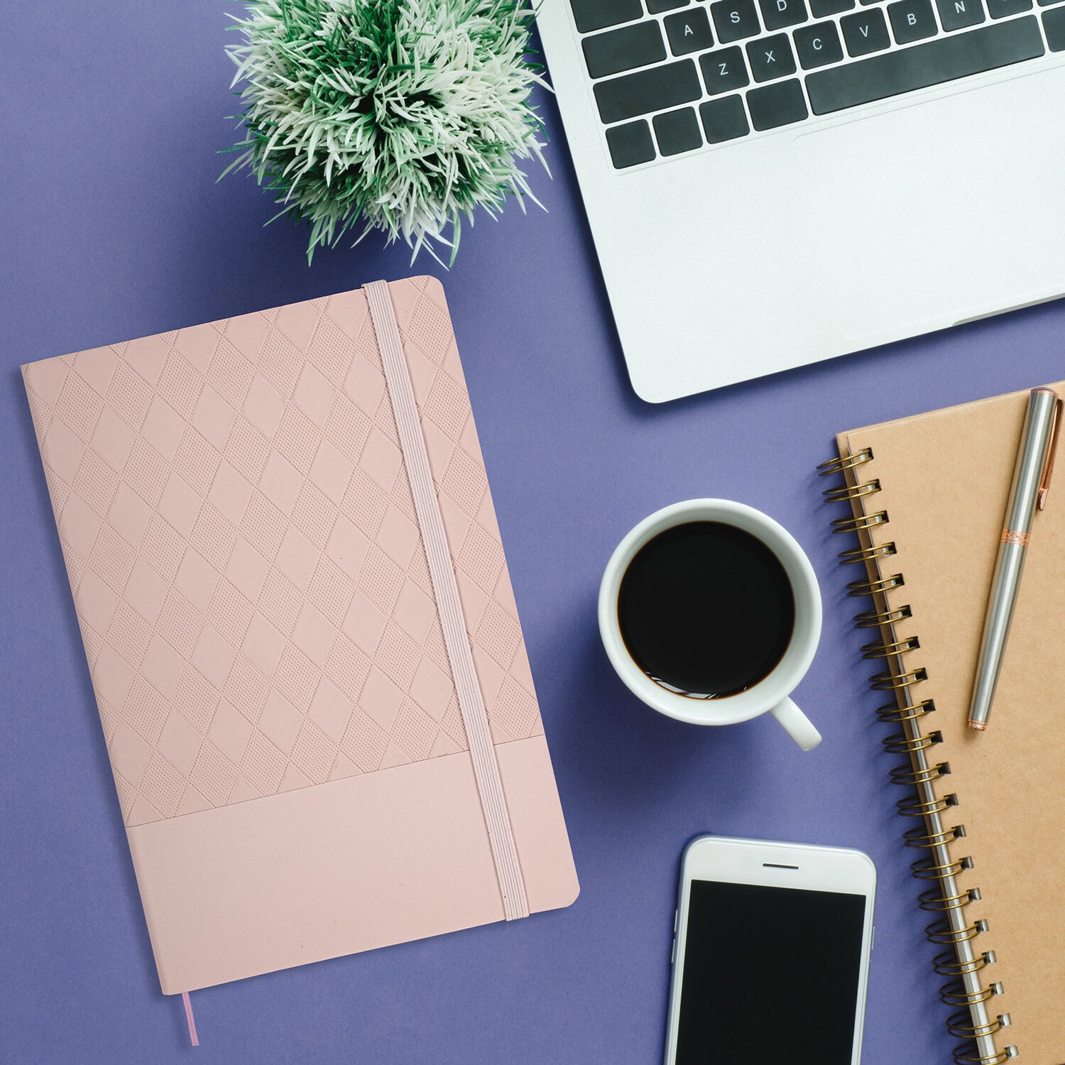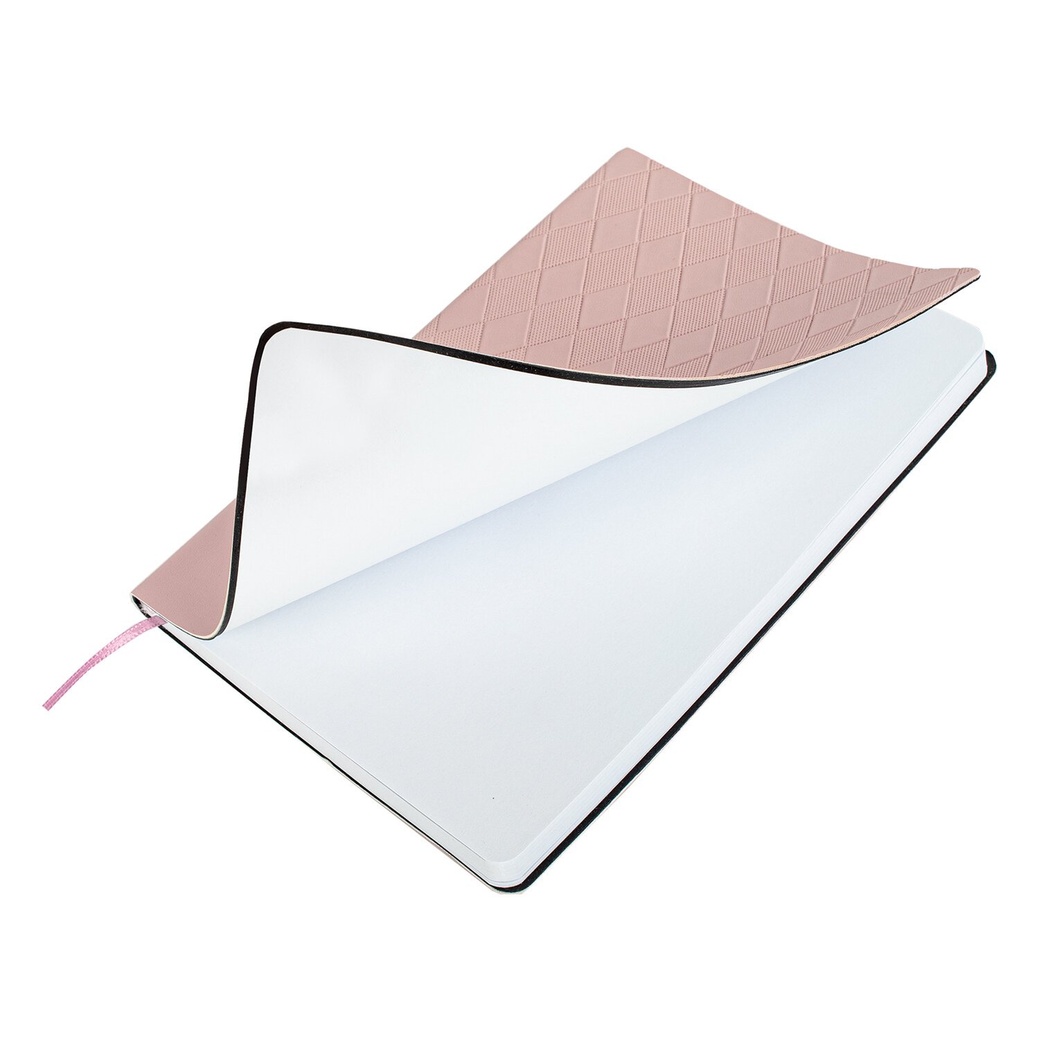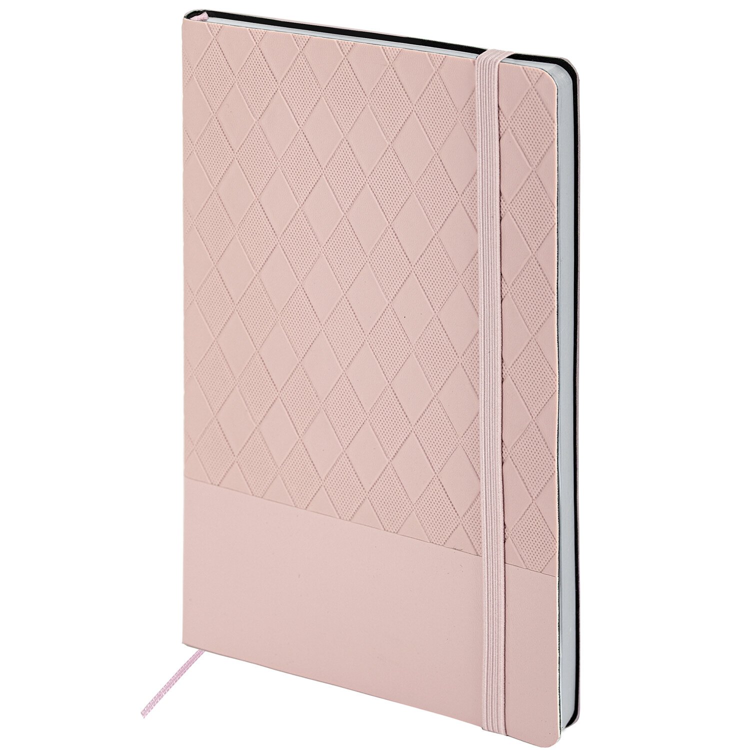 Блокнот А5 138x213мм BRAUBERG Tissage, под кожу, 80л, резинка, клетка, нежно-розовый, 116604