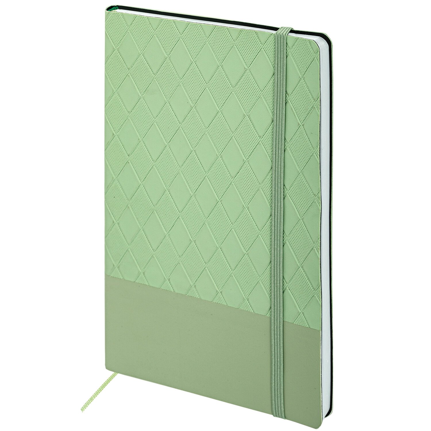 Блокнот А5 138x213мм BRAUBERG Tissage, под кожу, 80л, резинка, клетка, оливковый, 116602