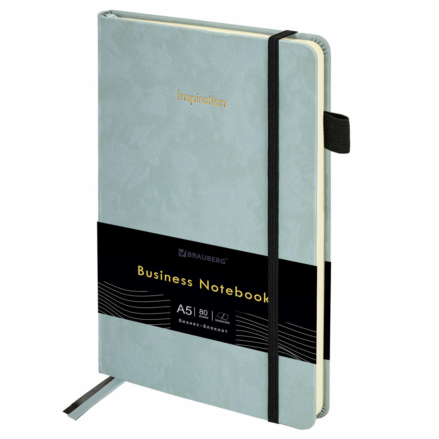 Блокнот А5 138x213мм BRAUBERG Velvet, резинка, держатель, 80л, клетка, серо-голубой, 116241