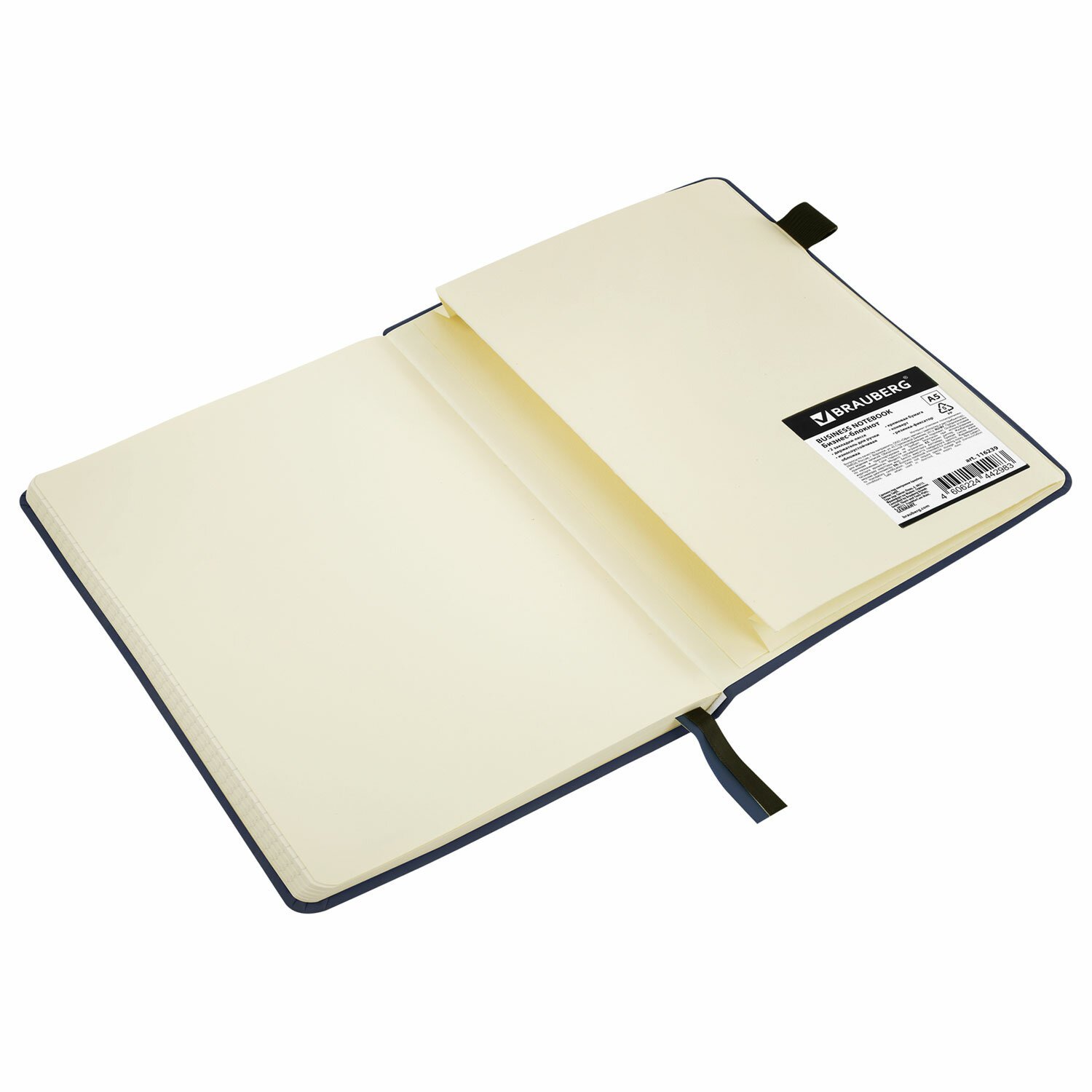 Блокнот А5 138x213мм BRAUBERG Velvet, резинка, держатель, 80л, клетка, синий, 116239