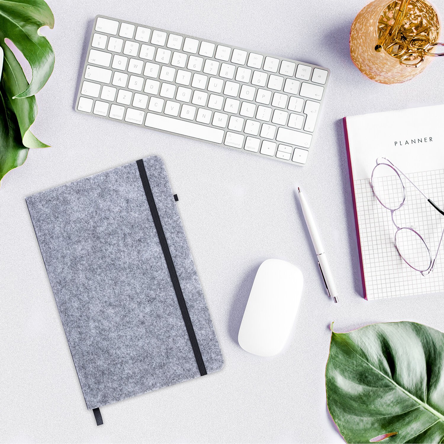 Мягкая обложка изготовлена из войлочного материала, очень тактильного на ощупь. Имеет закругленные уголки. 80 листов позволят зафиксировать большой объем информации. Линовка блока в клетку (5х5 мм) дает возможность аккуратно заполнить цифровые значения, а также нанести чертежные зарисовки. Внутренний блок выполнен из офсета белого цвета плотностью 70 г/м2.