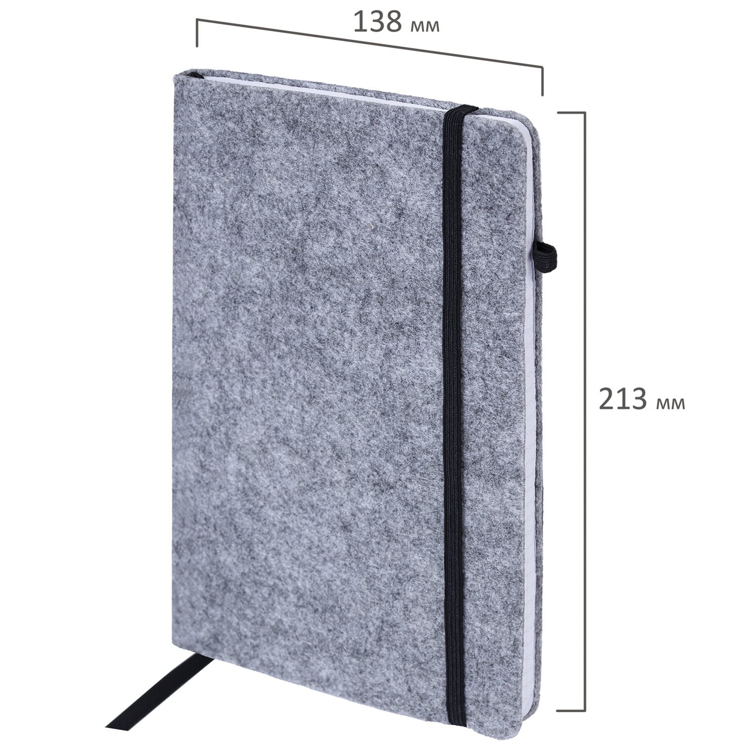 Блокнот А5 138x213мм BRAUBERG "Voylok" войлок, резинка, держатель, 80л клетка, серый, 117135