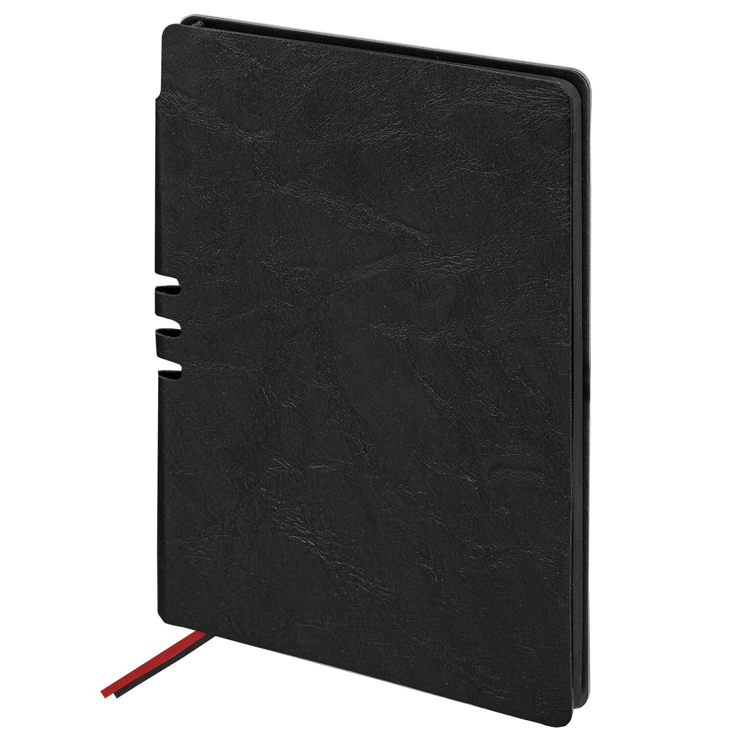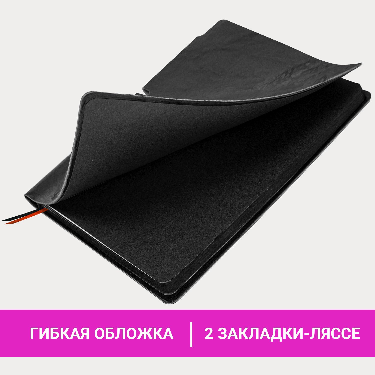 Блокнот А5 (140х200 мм), BRAUBERG "NEBRASKA", под кожу, 80 л., линия, черный, 113411