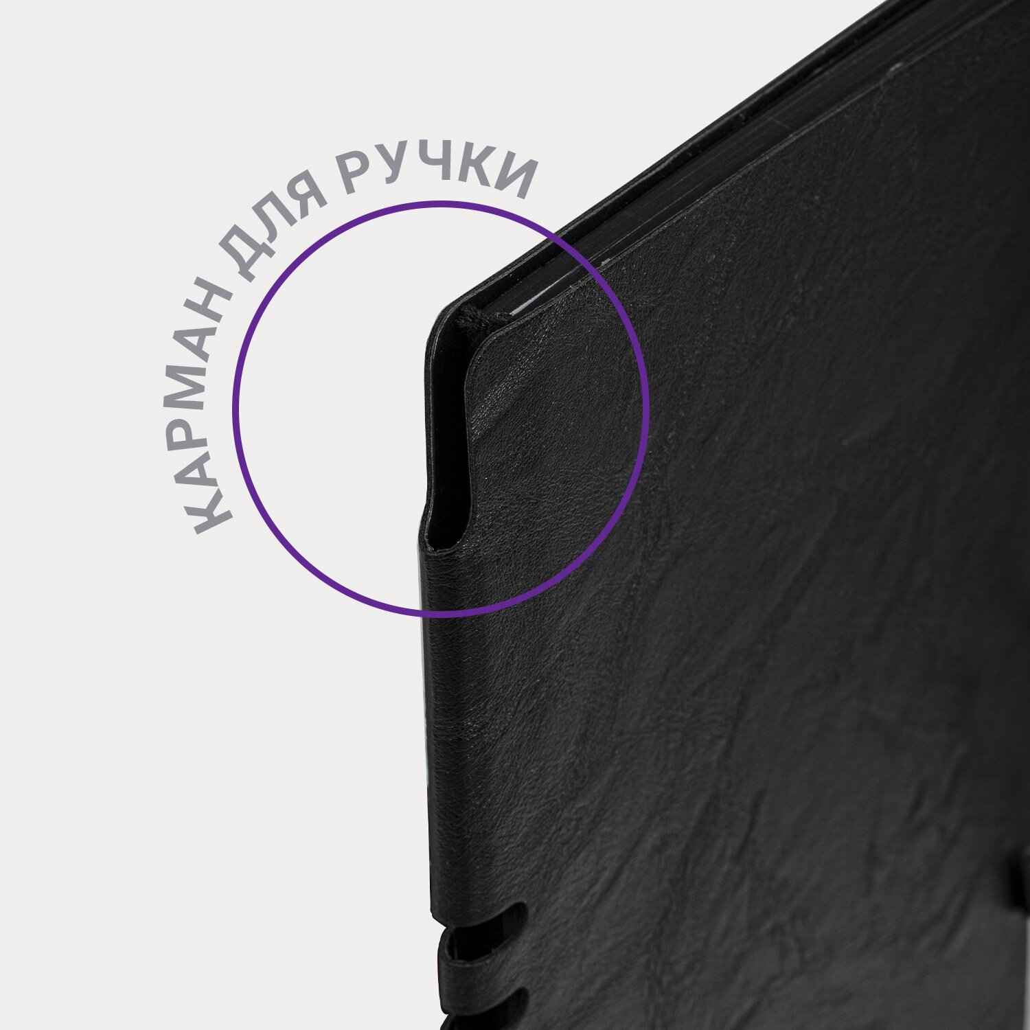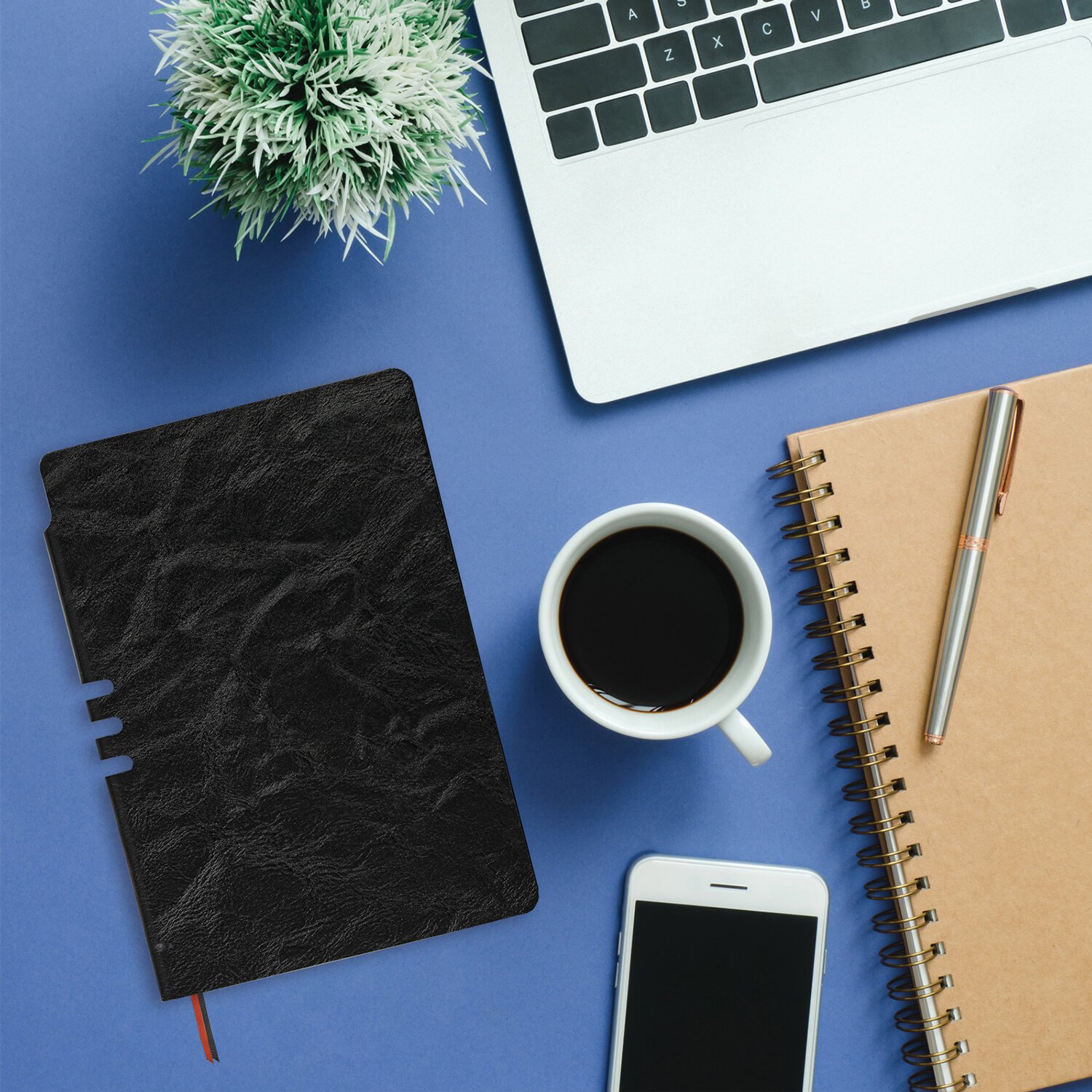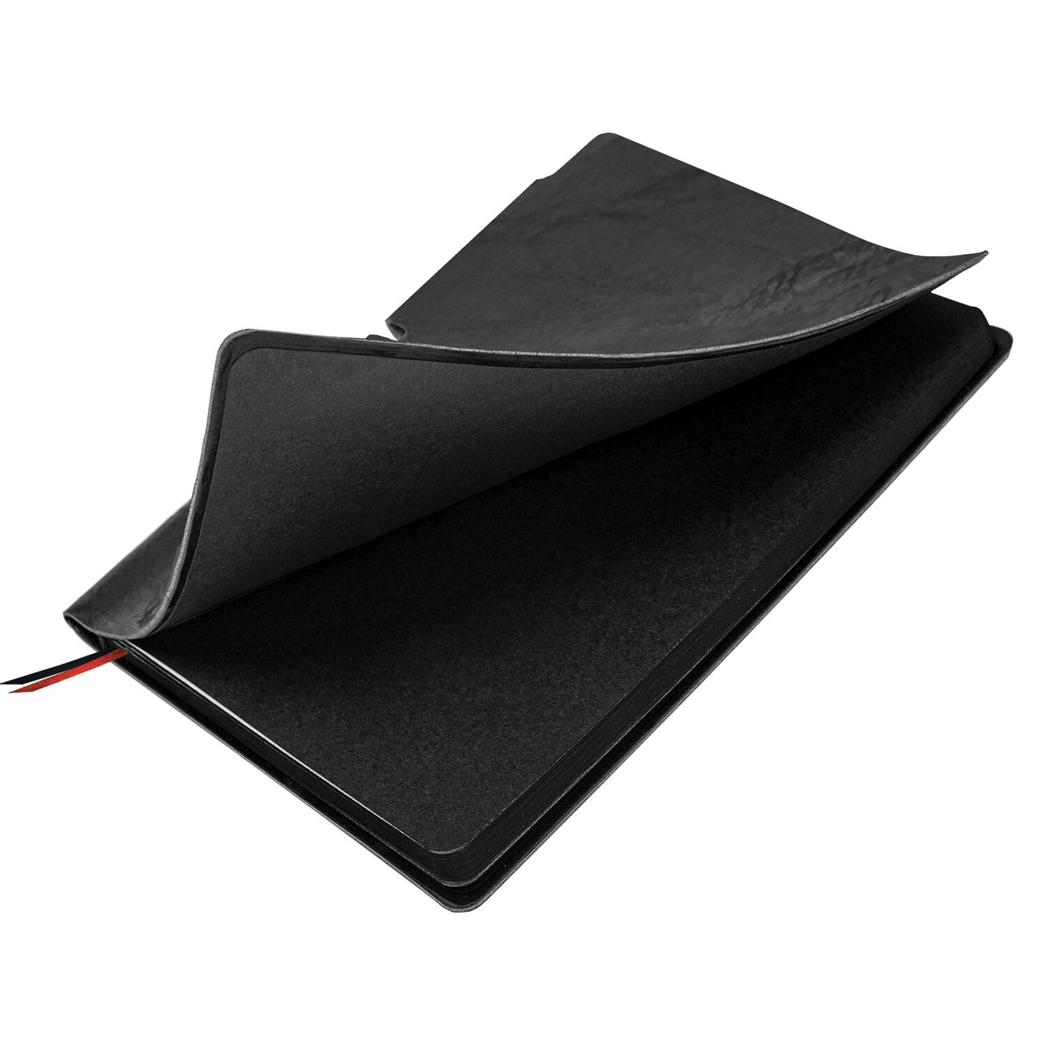 Для удобства пользования блокнот снабжен карманом для фиксации ручки. Дополнением является закладка-ляссе, с помощью которой можно быстро открыть нужную страницу. Формат блокнота А5 (140х200 мм) позволит владельцу поместить его в кейс или сумку малых габаритов.