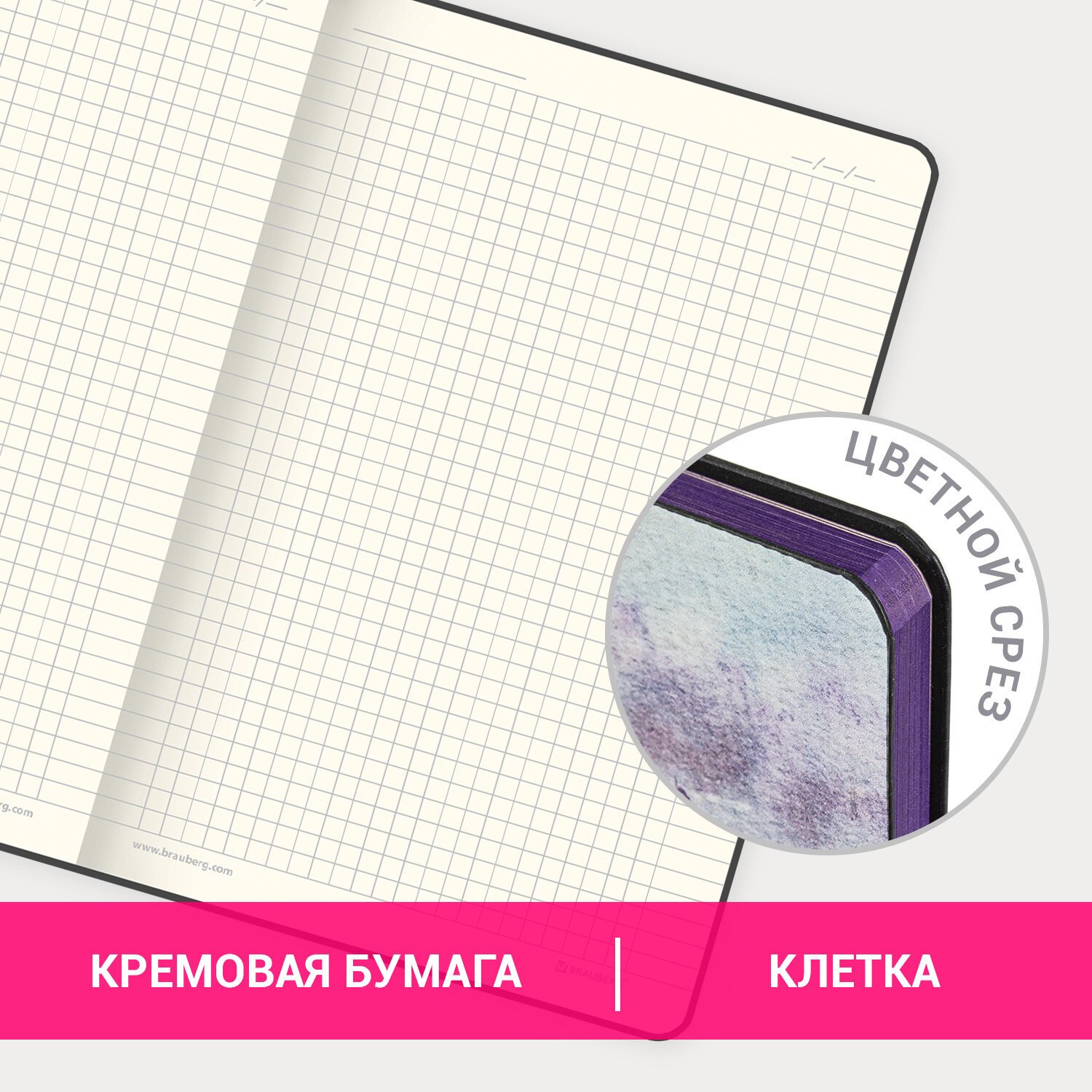 Блокнот BRAUBERG VISTA "Violet" выполнен в оригинальном стиле. Линовка внутреннего блока - клетка (5х5 мм), которая пользуется большим спросом у покупателей.