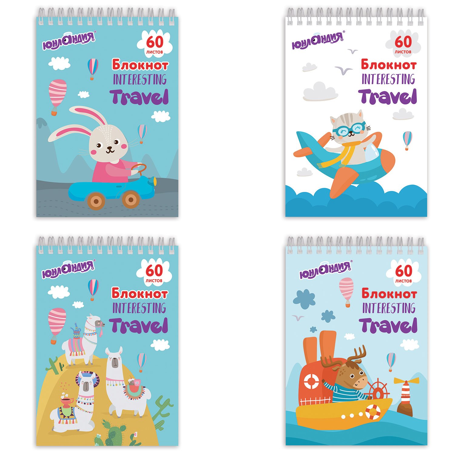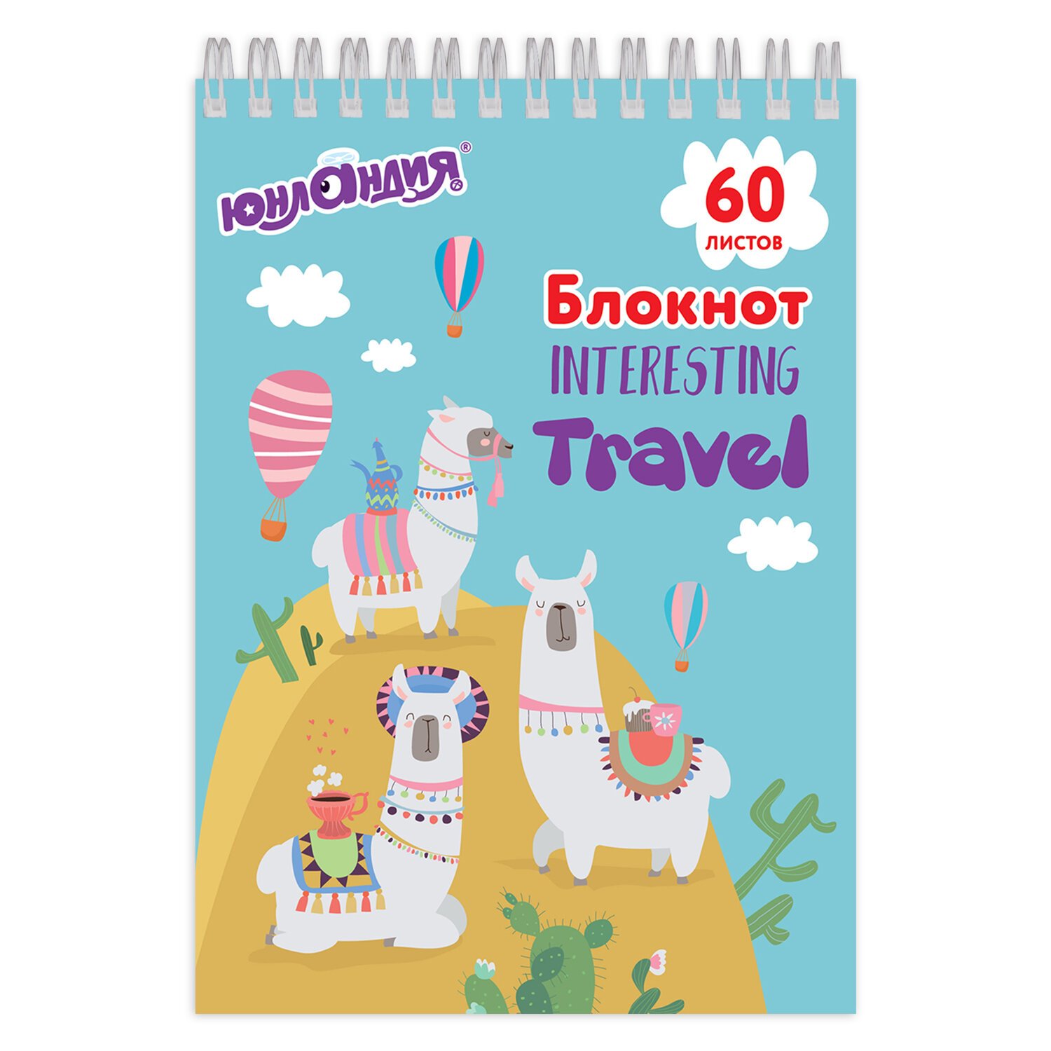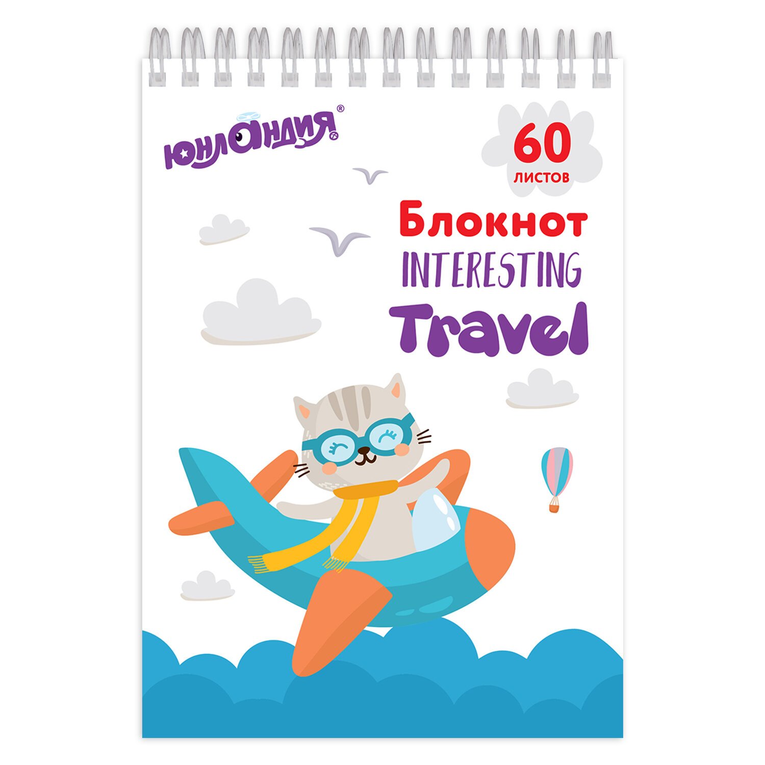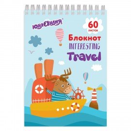 Блокнот А5 146х205 мм, 60 л., гребень, картон, клетка, ЮНЛАНДИЯ, "Веселое путешествие", 129814