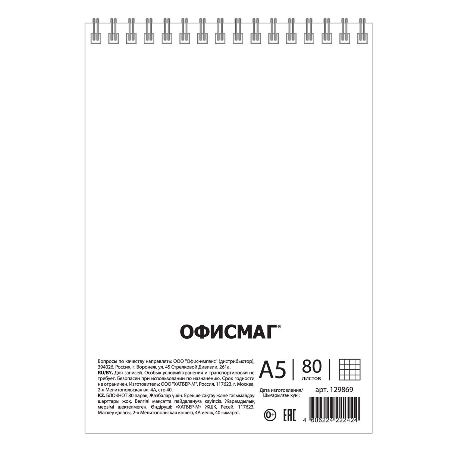 Блокнот формата А5 на евроспирали содержит 80 листов с линовкой в клетку, что позволяет зафиксировать большой объем нужной информации. Имеет жесткую подложку, позволяющую делать записи на весу и верхнее расположение переплета. Обложка выполнена из мелованного картона плотностью 200 г/м2. Внутренний блок состоит из белой офсетной бумаги плотностью 60 г/м2.