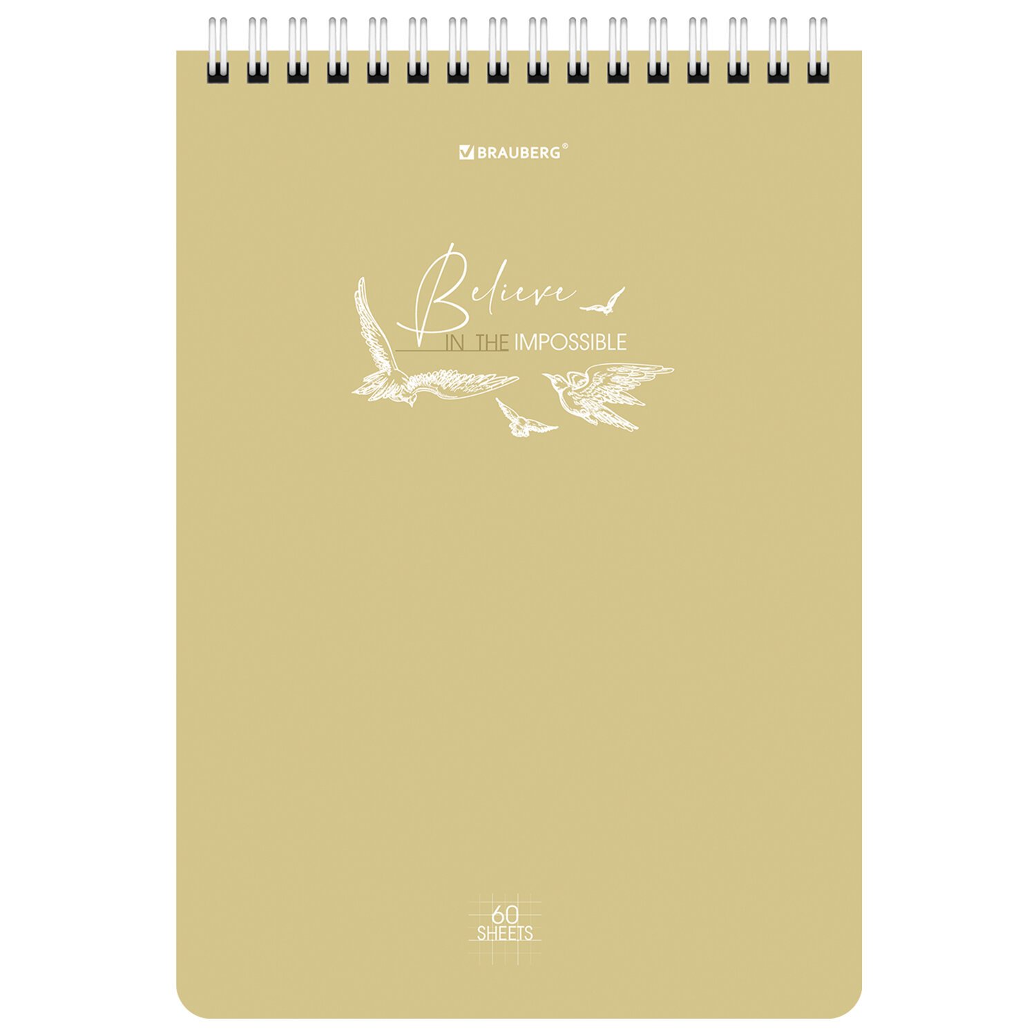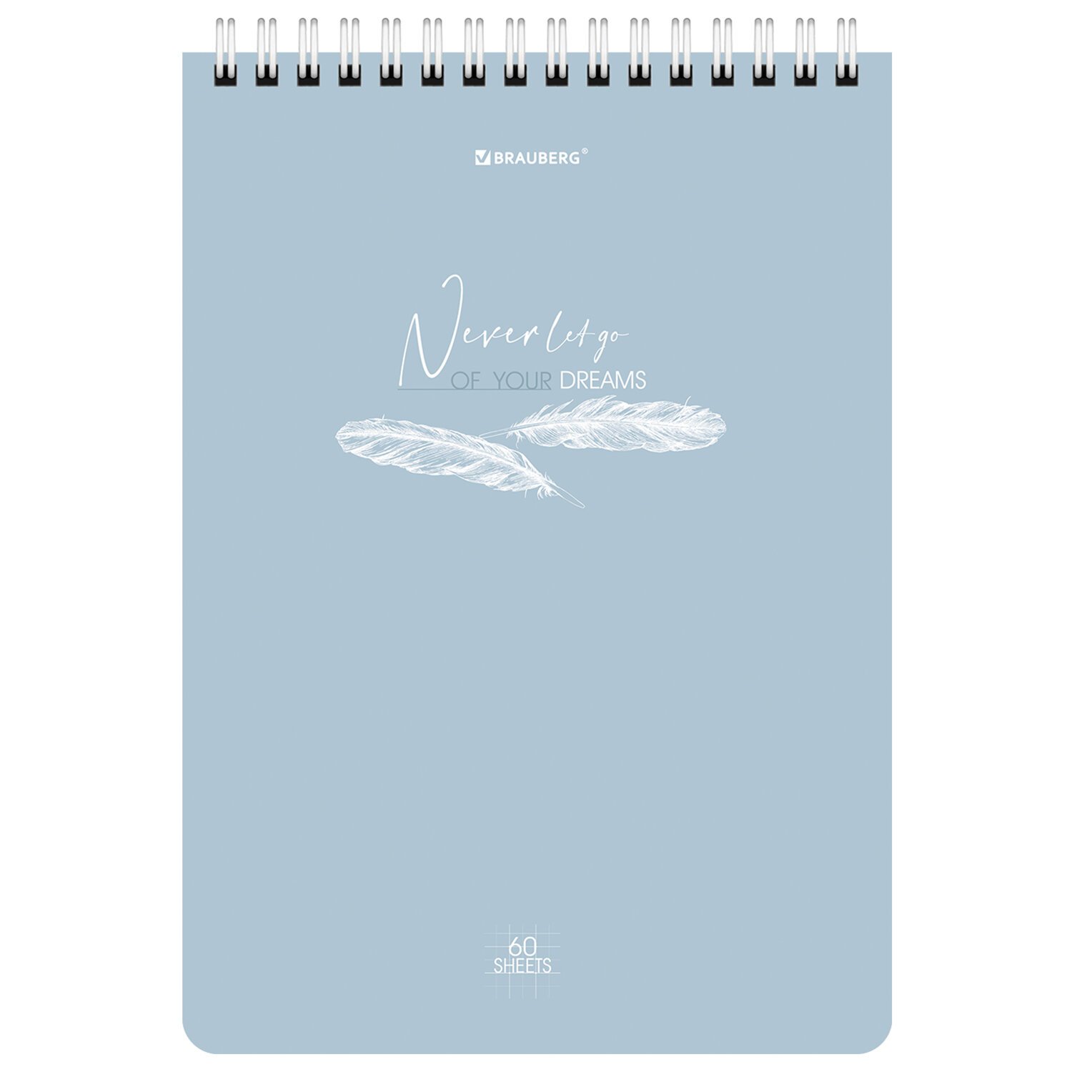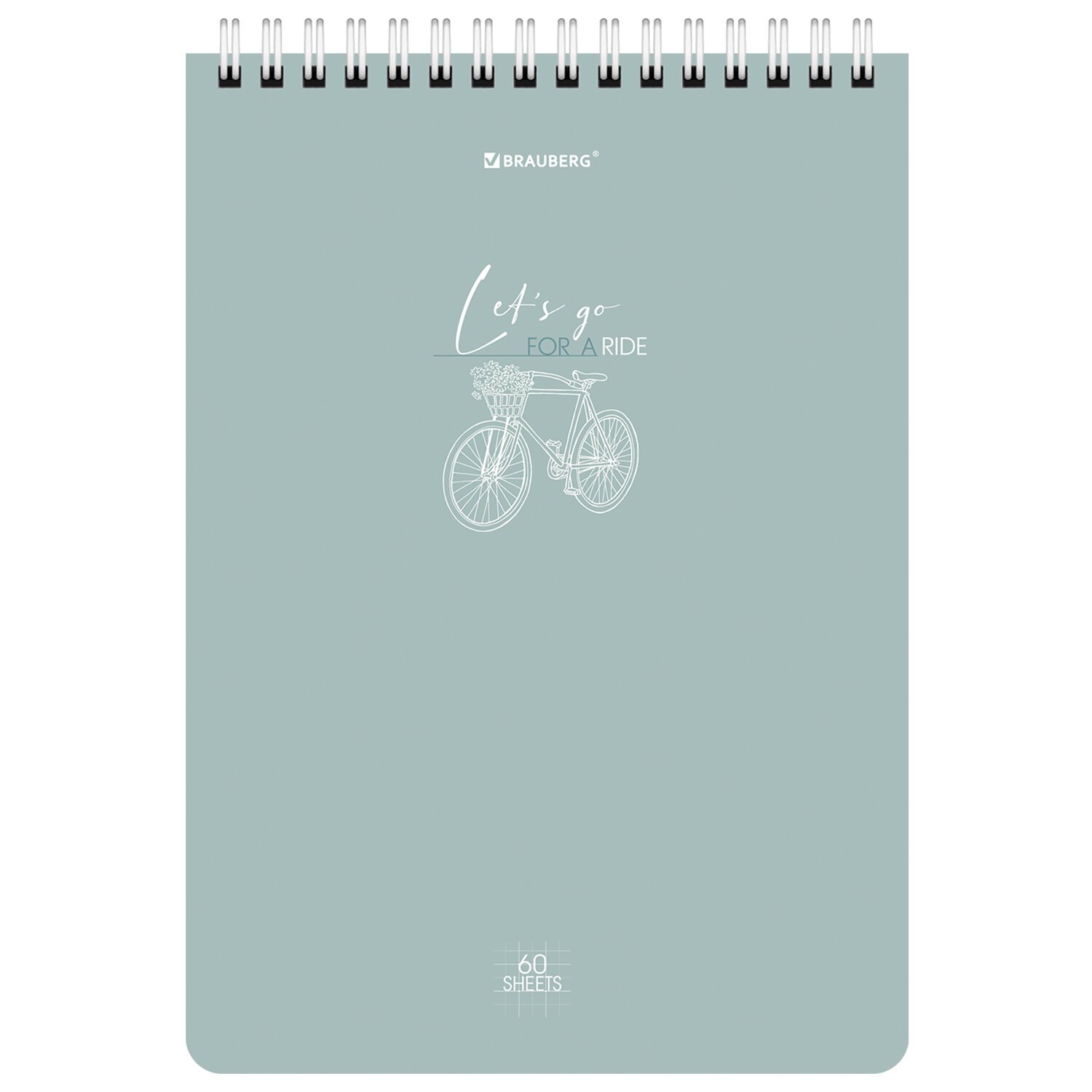 Блокнот А5 146х205 мм, 60 л., гребень, картон, жесткая подложка, клетка, BRAUBERG, "На волне успеха", 129813