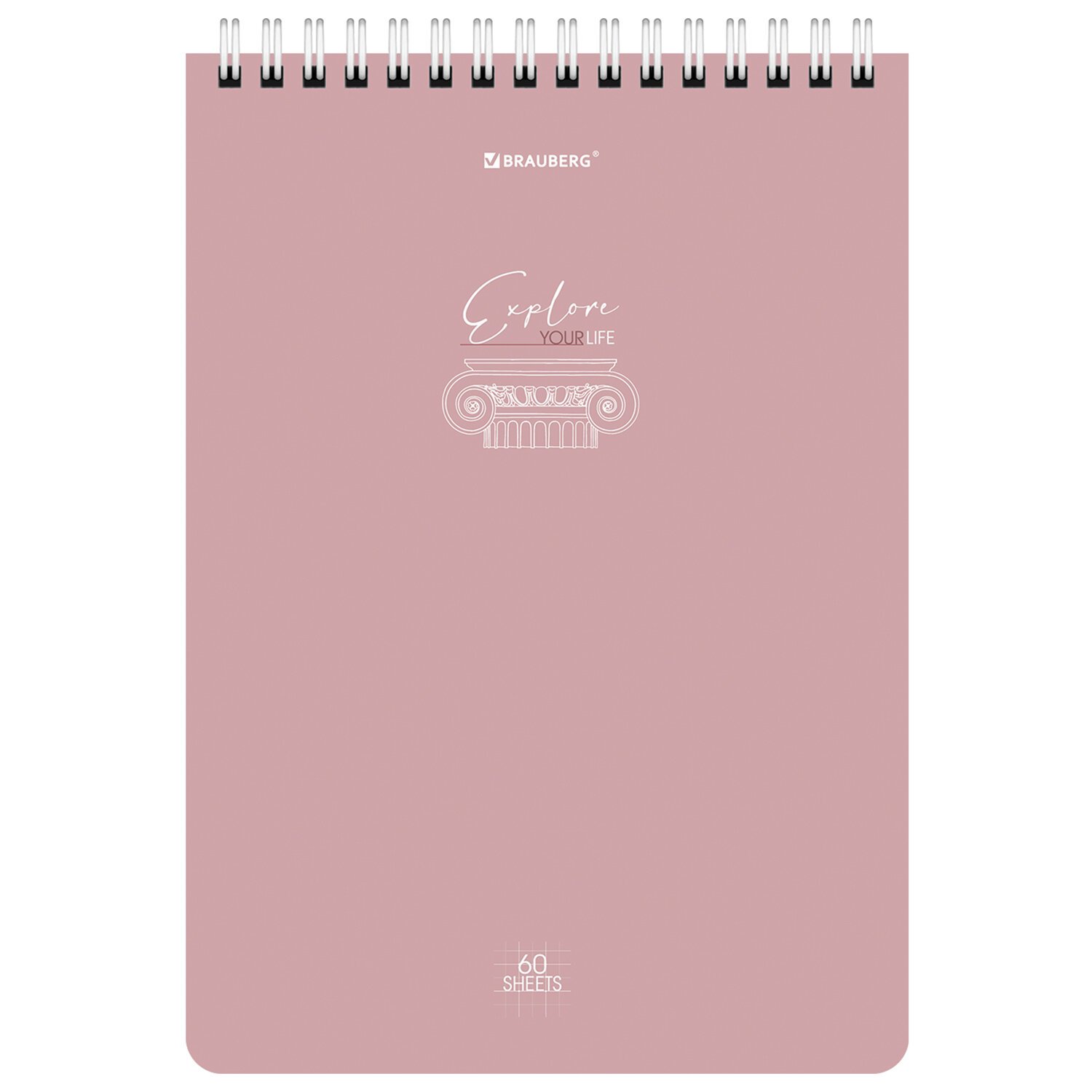 Блокнот А5 (146х206 мм), 60 л., гребень, картон, клетка, BRAUBERG, "Pastel", 114362