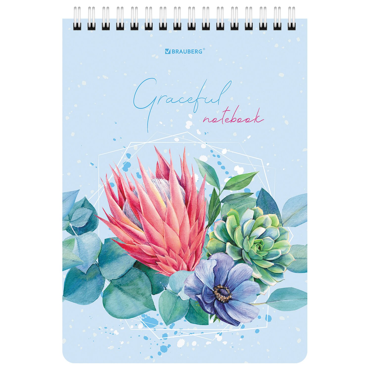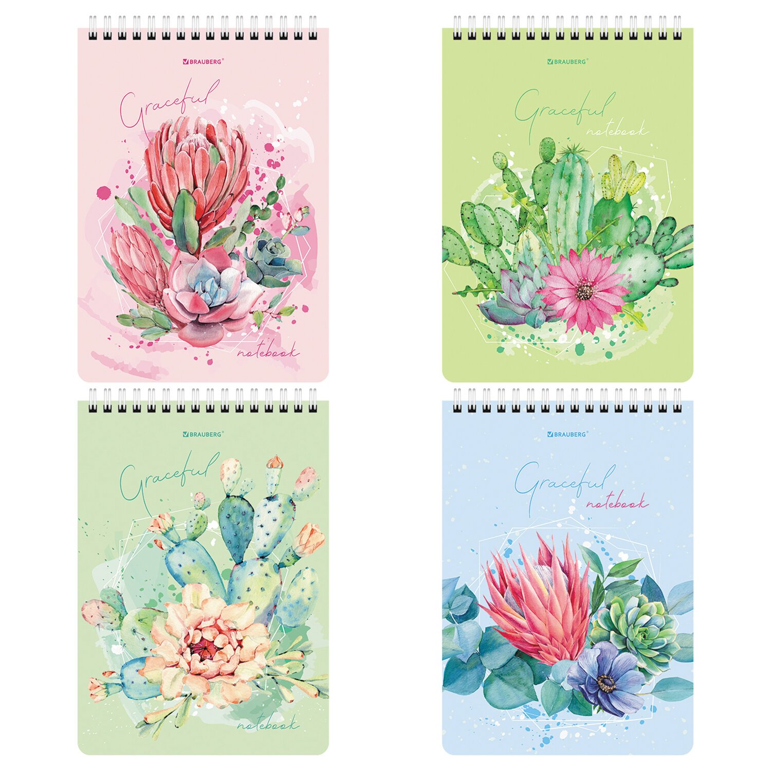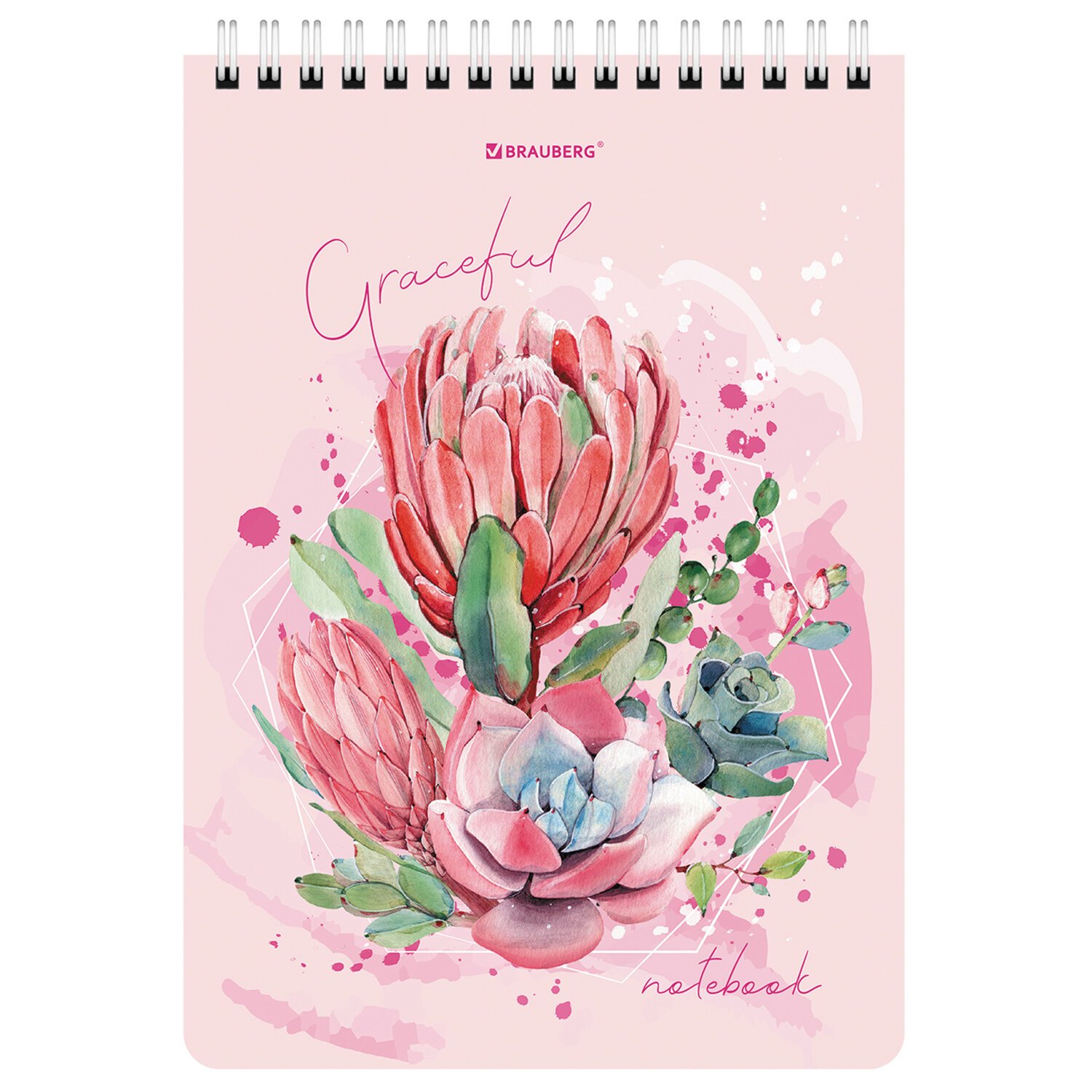 Блокнот А5 (146х206 мм), 60 л., гребень, картон, жесткая подложка, клетка, BRAUBERG, "Суккуленты", 114368