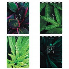 Блокнот формата А5 на евроспирали содержит 80 листов с линовкой в клетку, что позволяет зафиксировать большой объем нужной информации и дает возможность аккуратно заполнить цифровые значения, а также нанести чертежные зарисовки. Гребень расположен сверху. Обложка выполнена из мелованного картона плотностью 190 г/м2. Внутренний блок состоит из белой офсетной бумаги плотностью 60 г/м2.