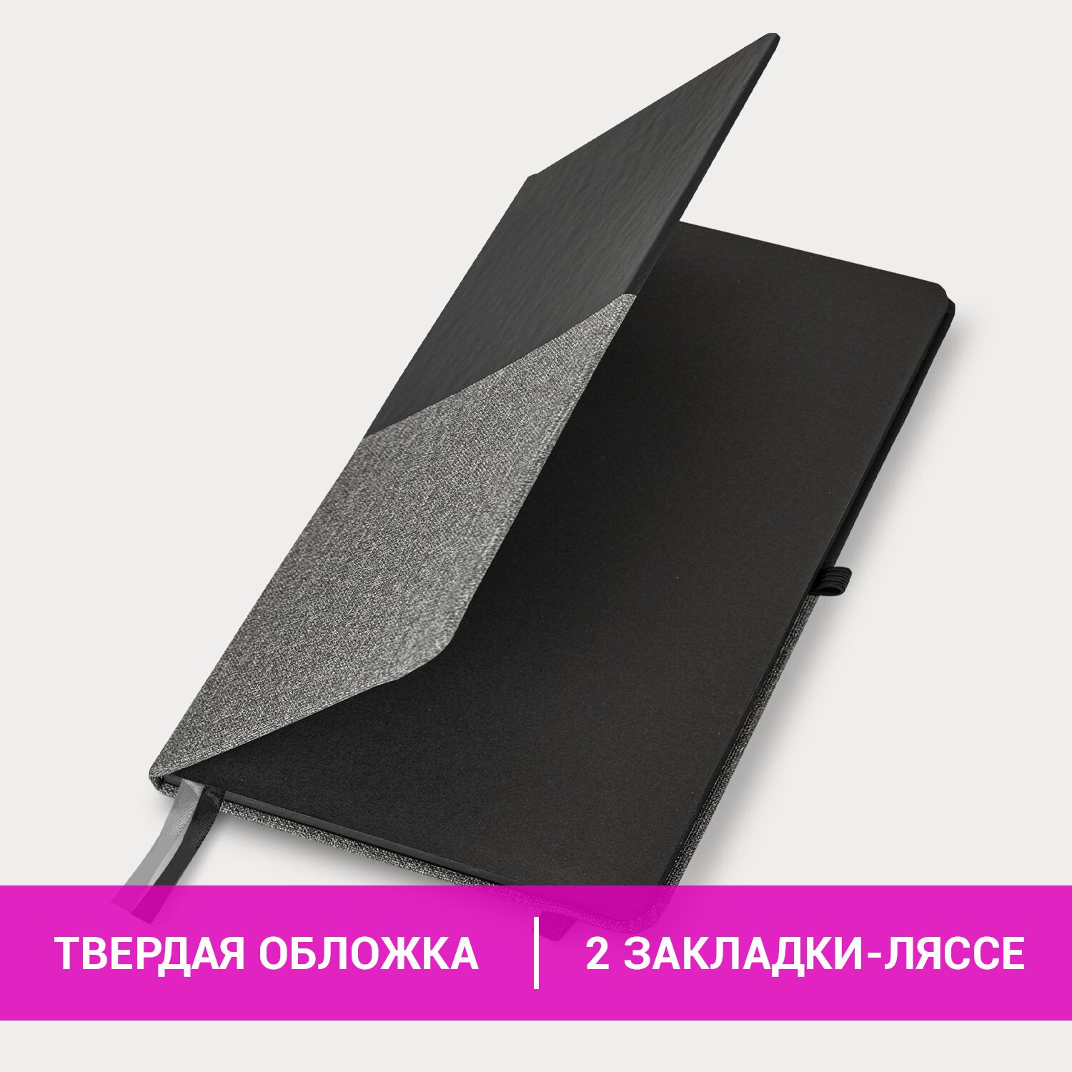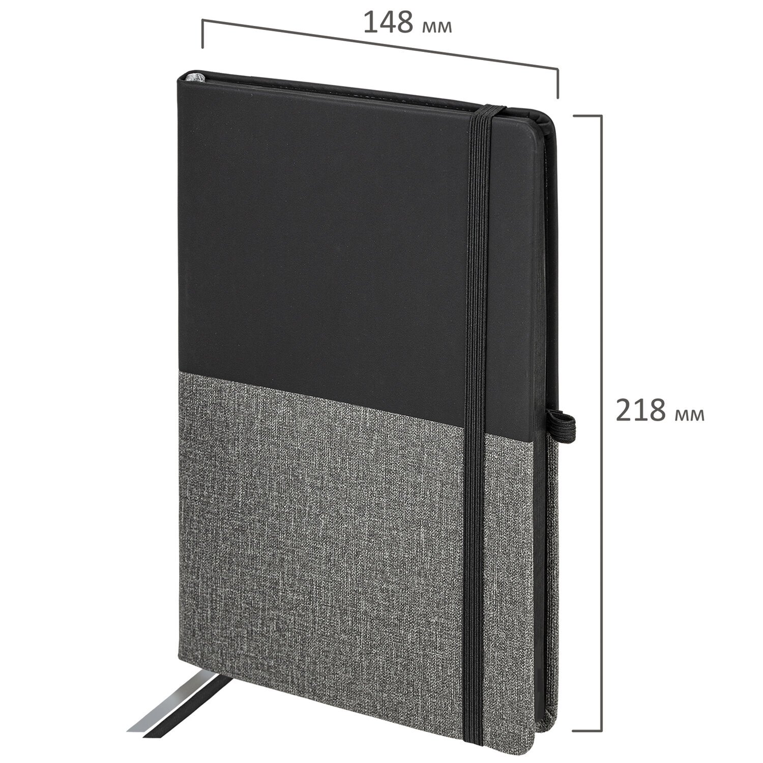 Блокнот А5 (148х218 мм), BRAUBERG "DUO", под кожу с резинкой, 80 л., клетка, черный/серый, 113433