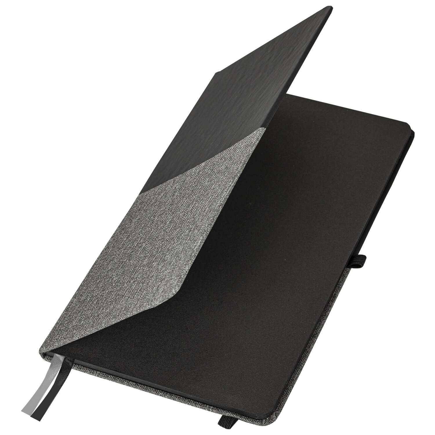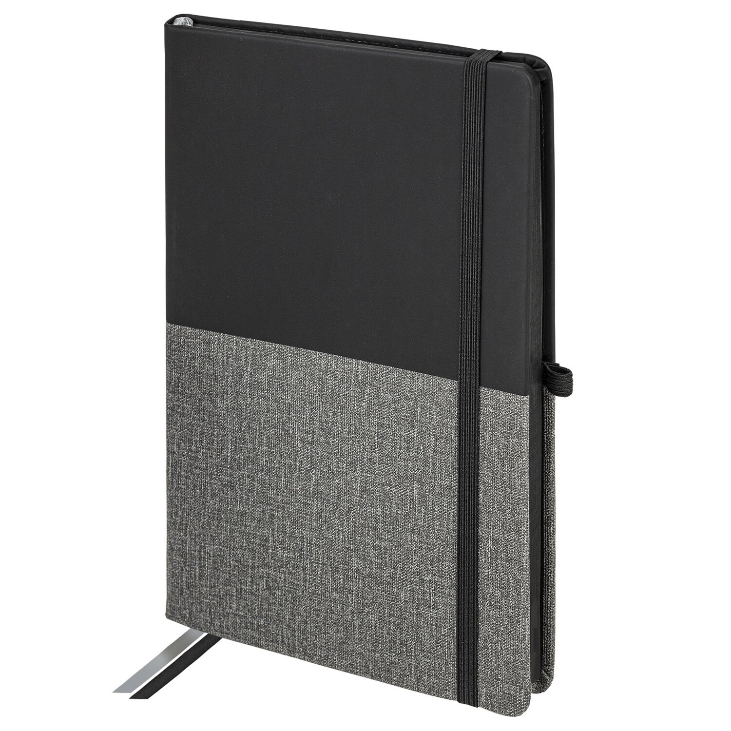Твердая обложка с использованием комбинации материалов: с фактурой "Soft Touch" и под ткань. Имеет закругленные уголки, подходит для горячего тиснения и имеет резинку-фиксатор, благодаря чему не раскроется в сумке или портфеле и листы не помнутся. На внутренней стороне задней обложки есть декоративный конверт для разных мелочей в виде визиток, напоминалок и прочего. 80 листов позволят зафиксировать большой объем информации. Линовка блока в клетку (5х5 мм) дает возможность аккуратно заполнить цифровые значения, а также нанести чертежные зарисовки. Внутренний блок выполнен из офсета цвета слоновой кости плотностью 70 г/м2 и крепится к обложке с помощью книжного переплета. Дополнением является закладка-ляссе, с помощью которой при необходимости можно быстро открыть нужную страницу. Формат блокнота А5 (148х218 мм) позволит владельцу поместить его в кейс или сумку малых габаритов.