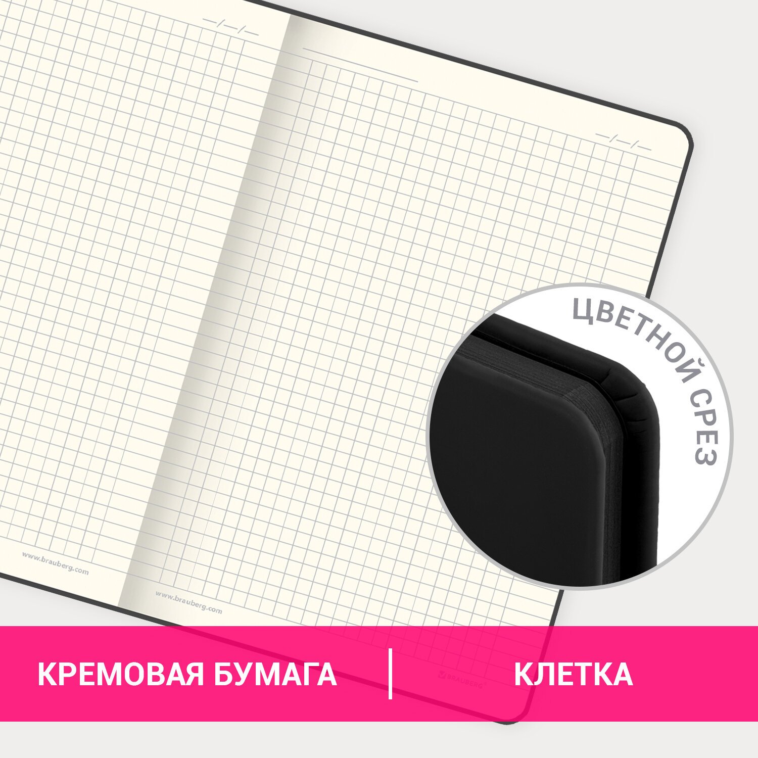 Блокнот А5 (162х218 мм), BRAUBERG "NOTE", под кожу софт-тач, с резинкой, 80 л., клетка, светло-серый, 113441