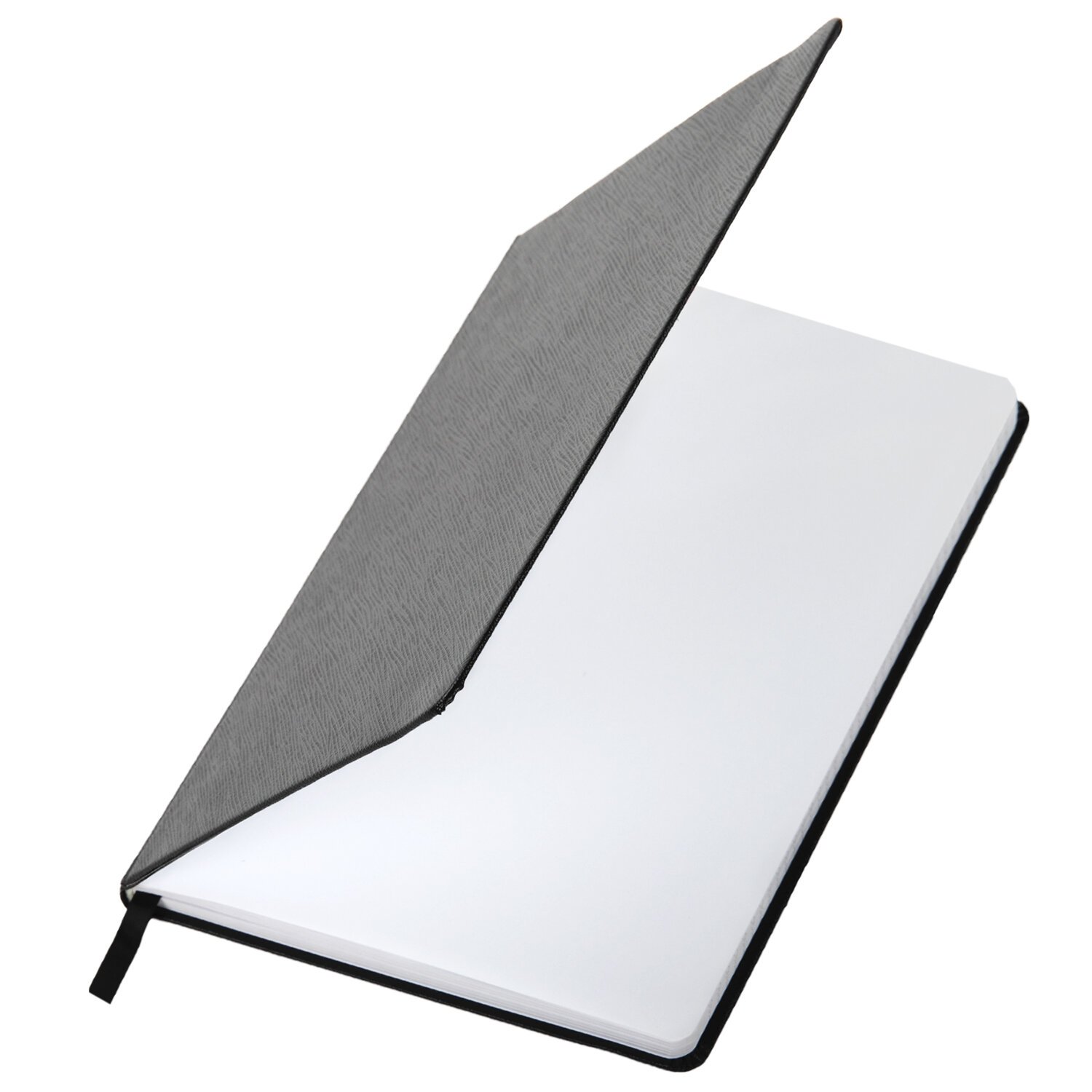 Твердая обложка стилизована под кожу. Имеет закругленные уголки. Подходит для тиснения только фольгой. 96 листов позволят зафиксировать большой объем информации. Линовка блока в клетку дает возможность аккуратно заполнить цифровые значения, а также нанести чертежные зарисовки. Внутренний блок выполнен из офсета белого цвета плотностью 70 г/м2 и крепится к обложке с помощью книжного переплета. Дополнением является закладка-ляссе, с помощью которой при необходимости можно быстро открыть нужную страницу. Формат блокнота А5 (148х218 мм) позволит владельцу поместить его в кейс или сумку малых габаритов.