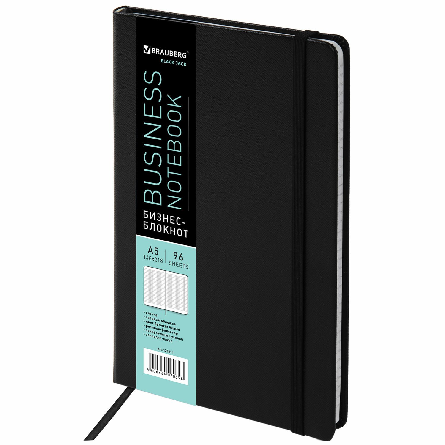 Блокнот А5 (148х218 мм), BRAUBERG "Select", 96 л., балакрон, резинка, клетка, черный, 125211