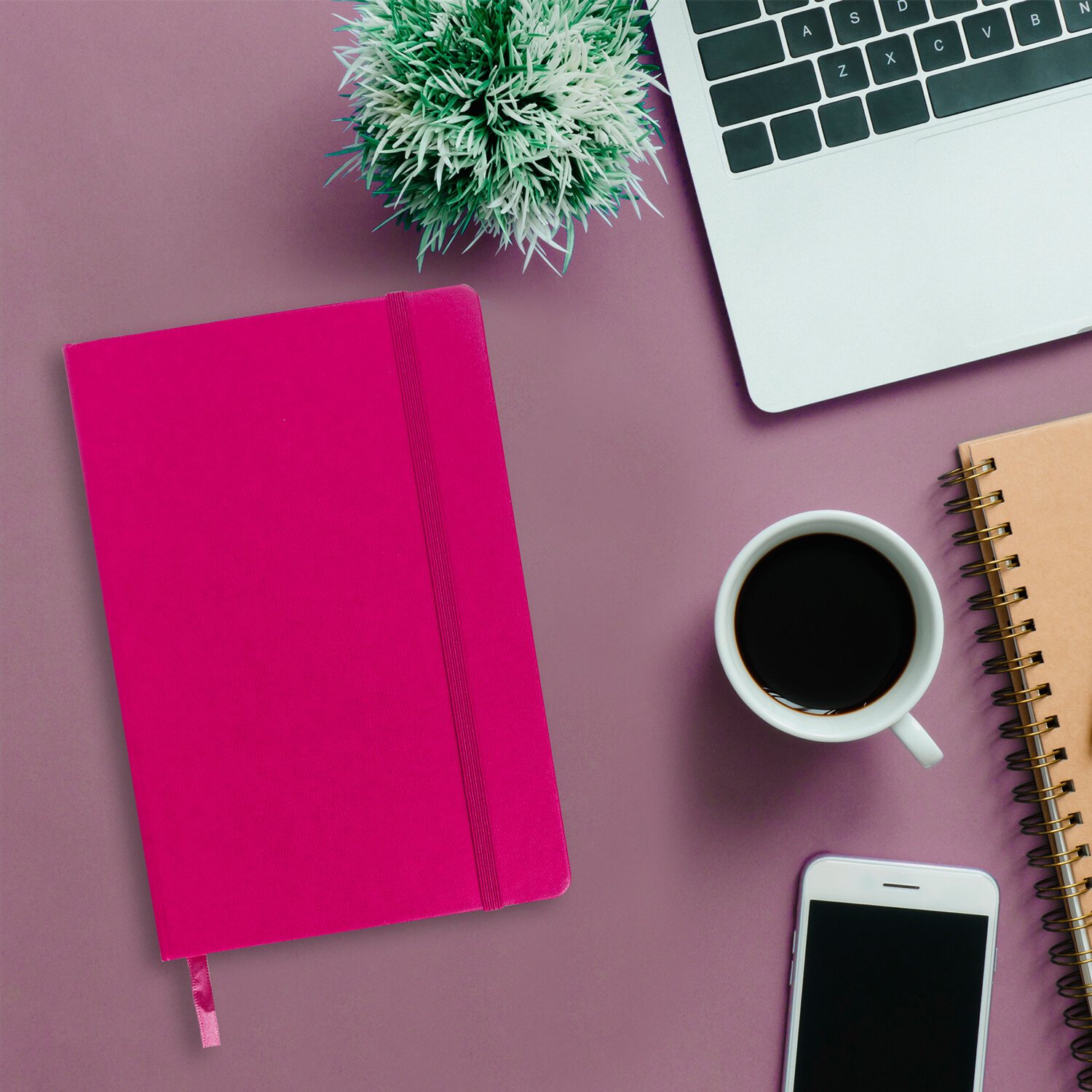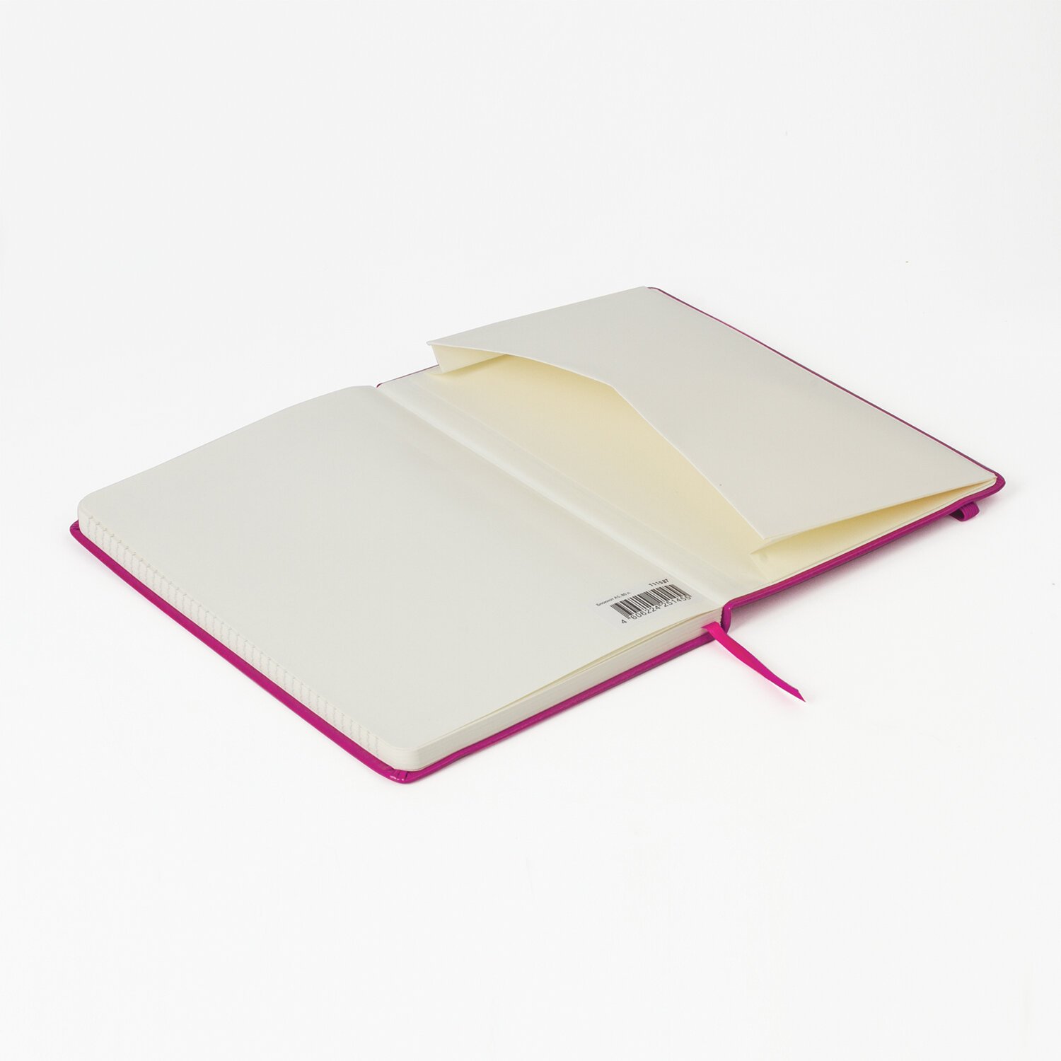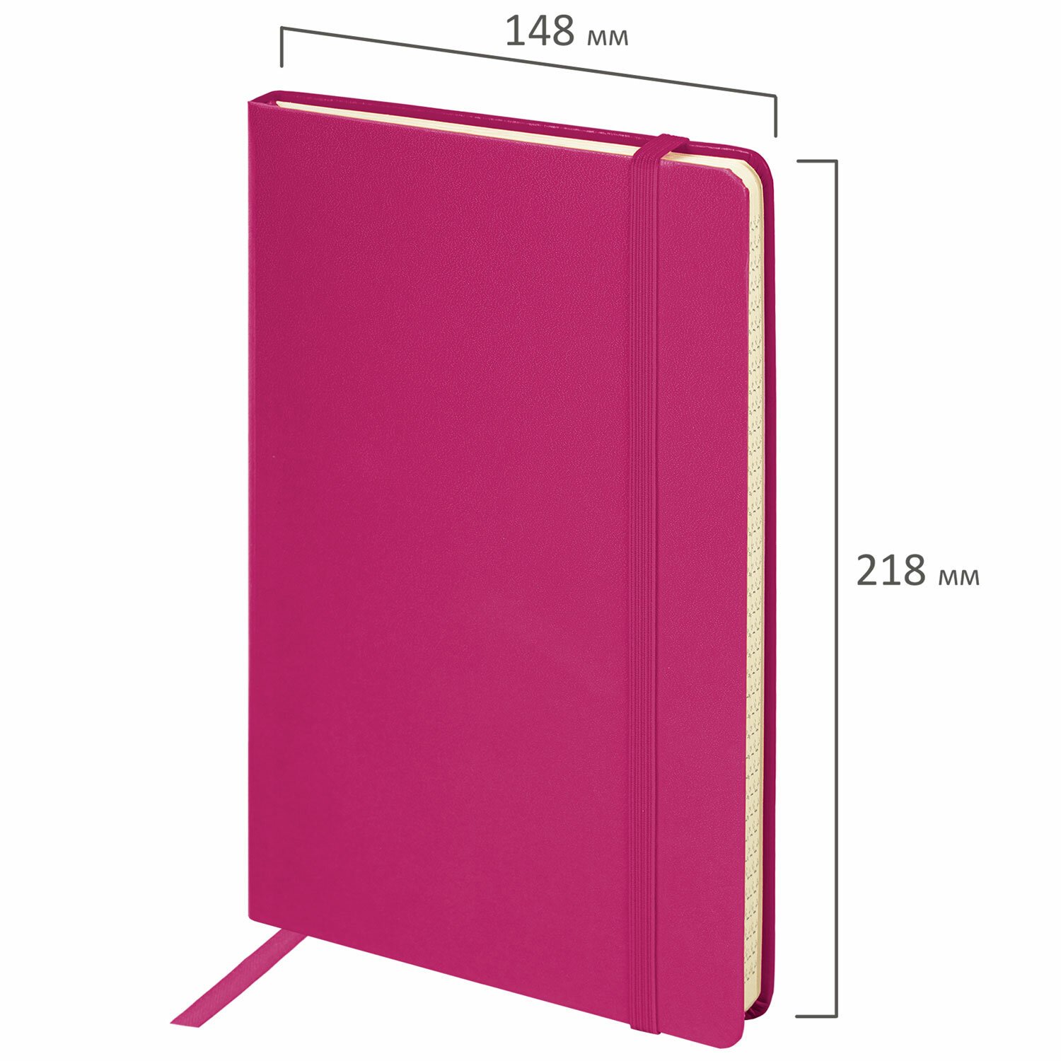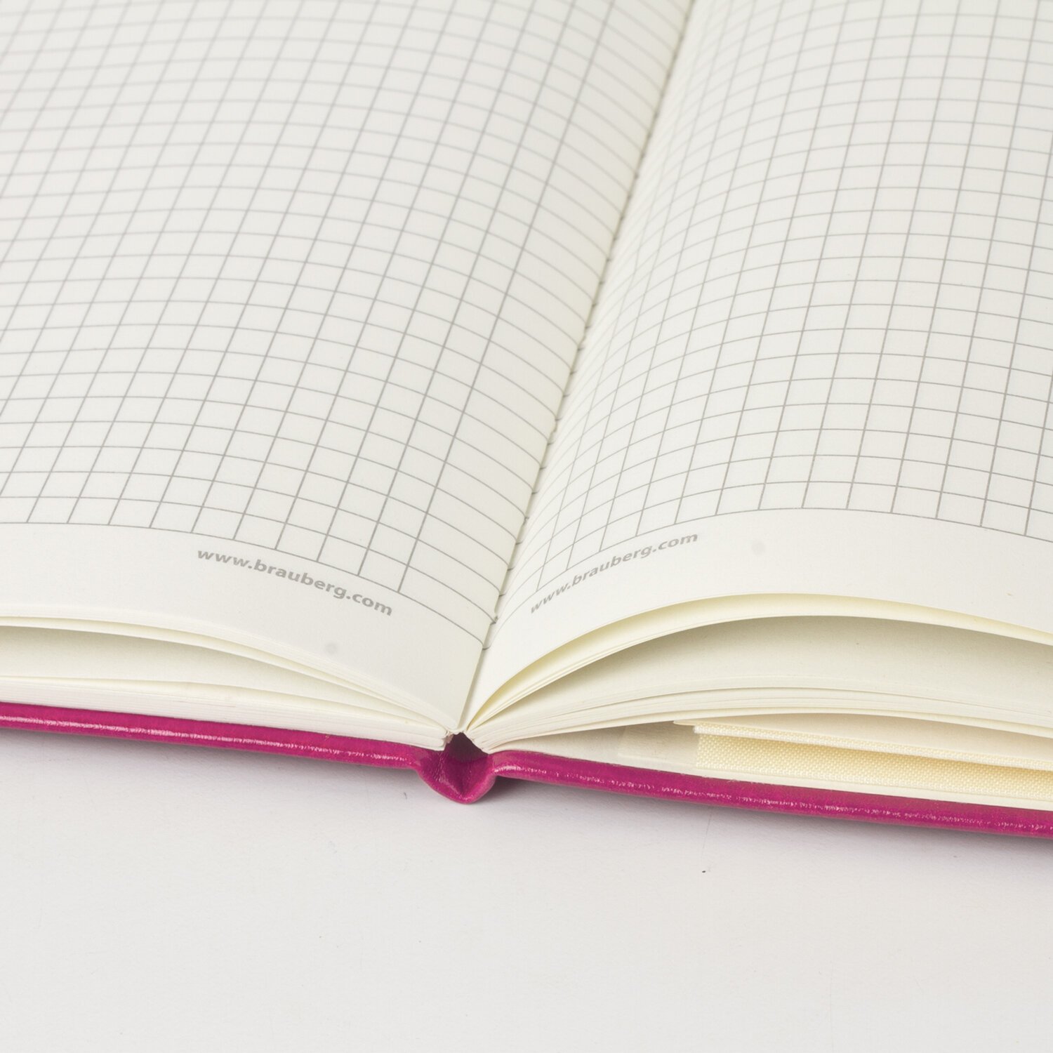 Блокнот А5 (148x218 мм), BRAUBERG "Metropolis", балакрон, 80 л., резинка, клетка, фуксия, 111587
