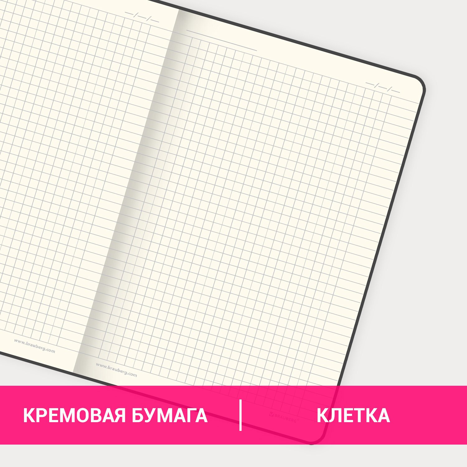 Блокнот А5 (148x218 мм), BRAUBERG "Metropolis", балакрон, 80 л., резинка, клетка, черный, 111585