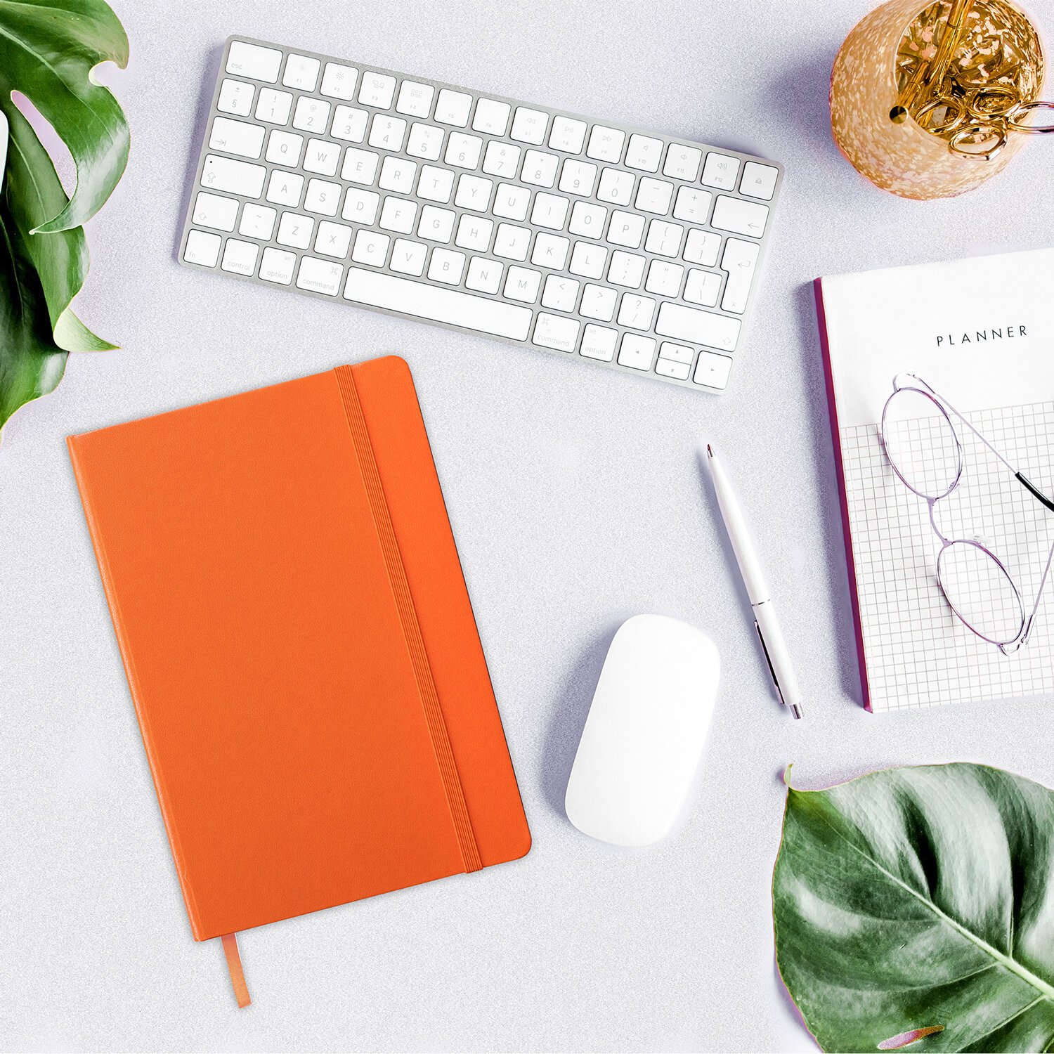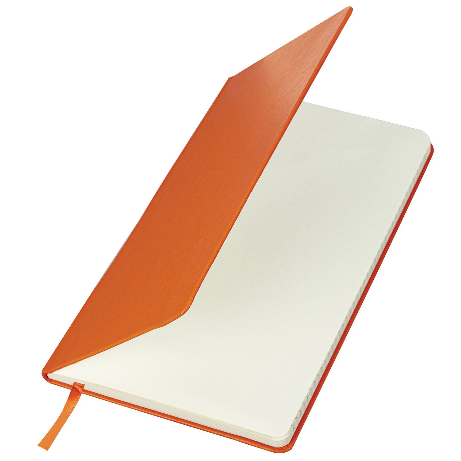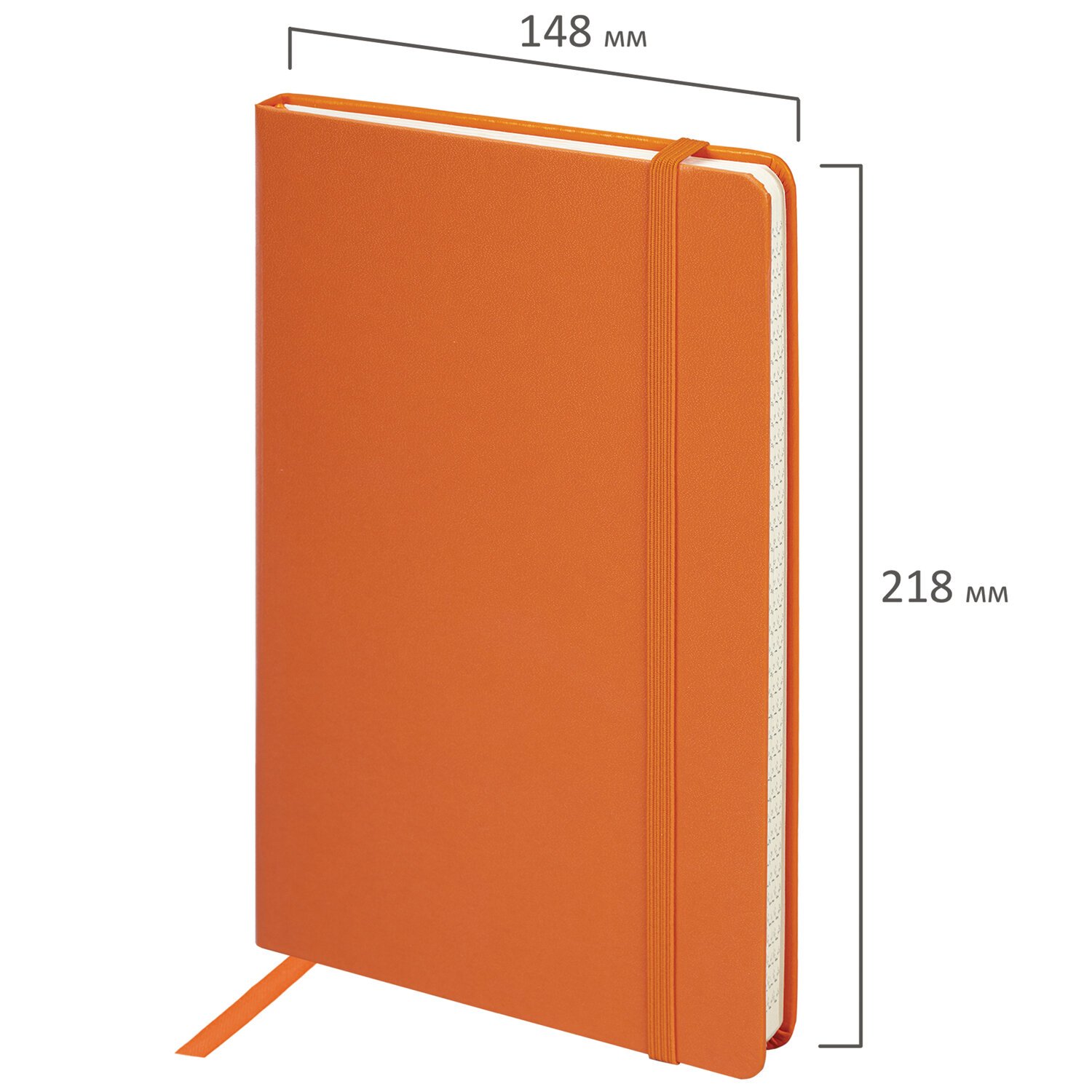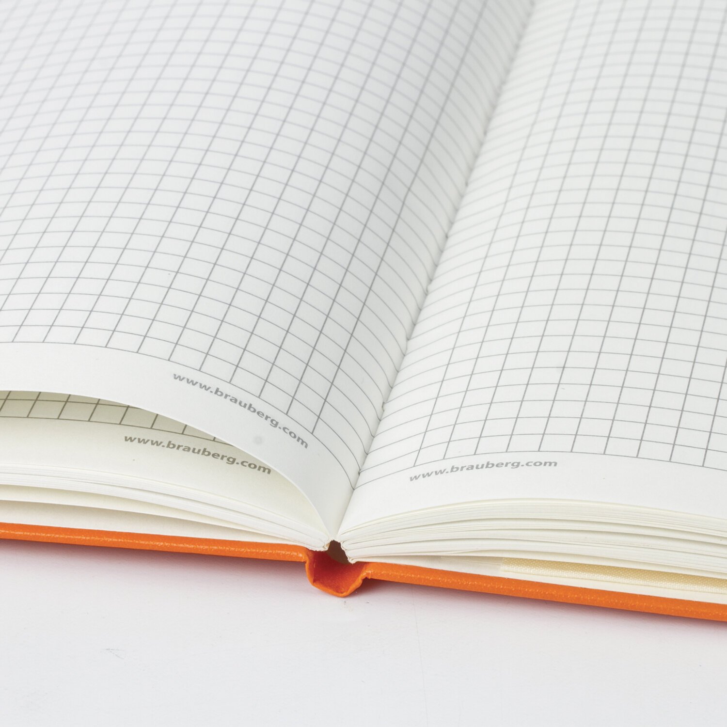 Блокнот А5 (148x218 мм), BRAUBERG "Metropolis", балакрон, 80 л., резинка, клетка, оранжевый, 111584
