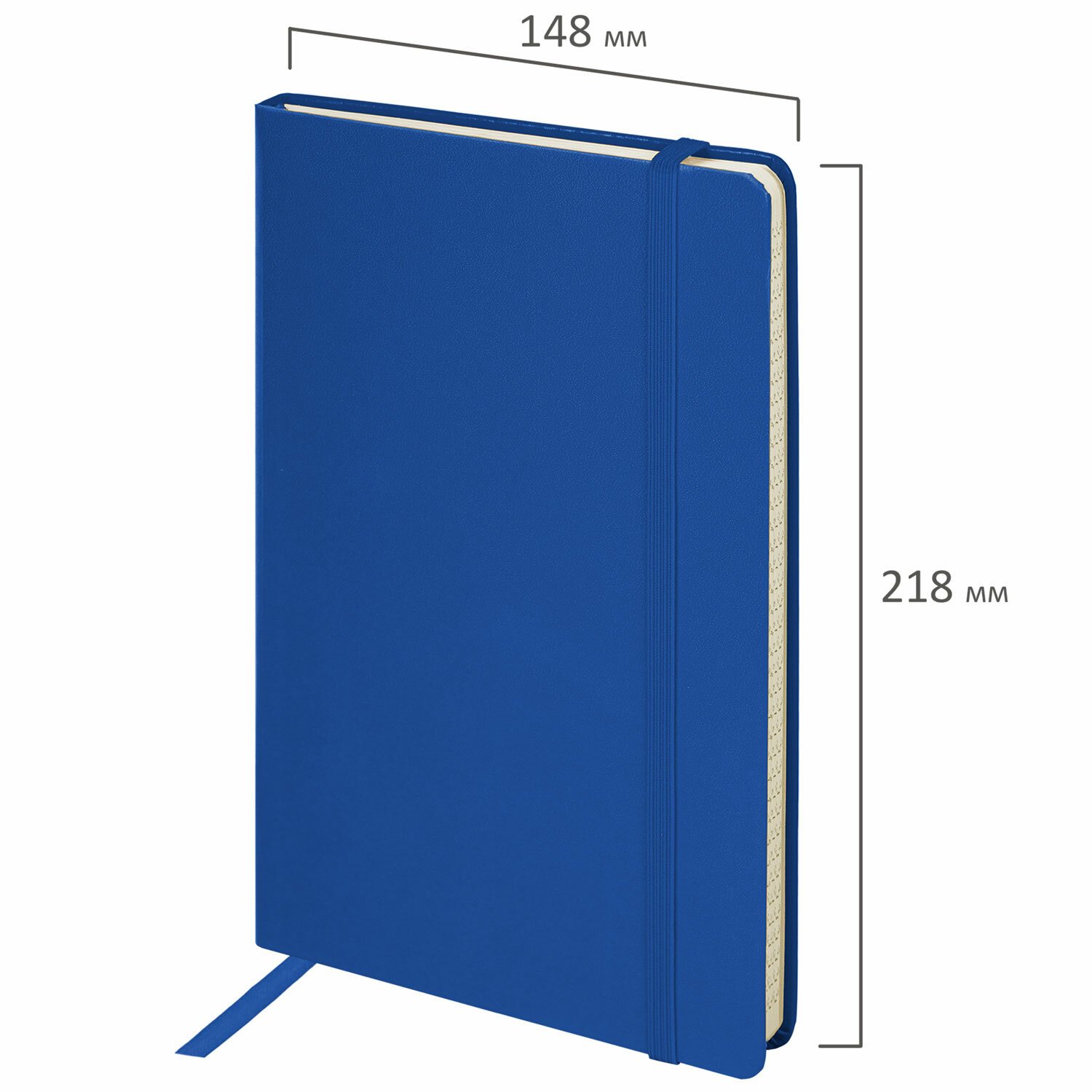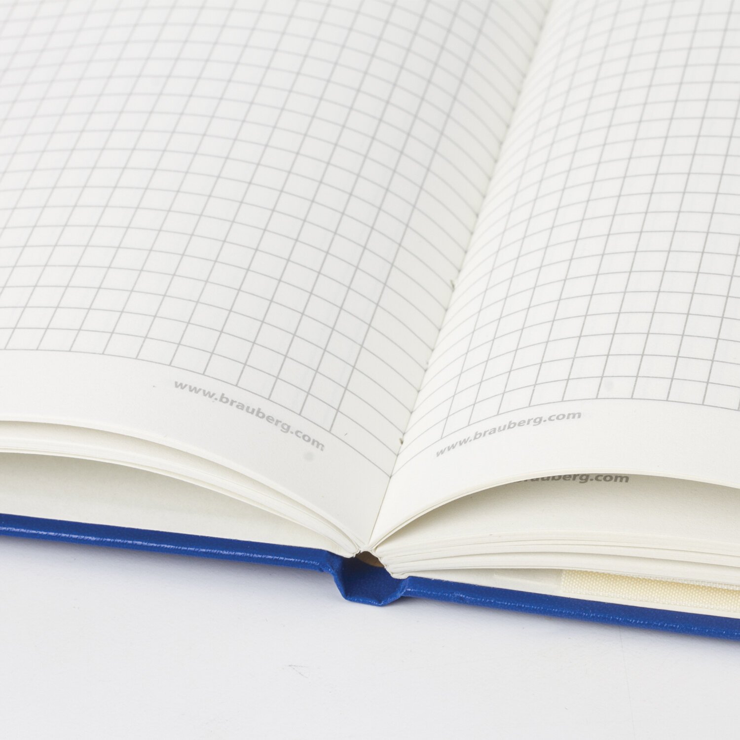 Блокнот А5 (148x218 мм), BRAUBERG "Metropolis", балакрон, 80 л., резинка, клетка, синий, 111582