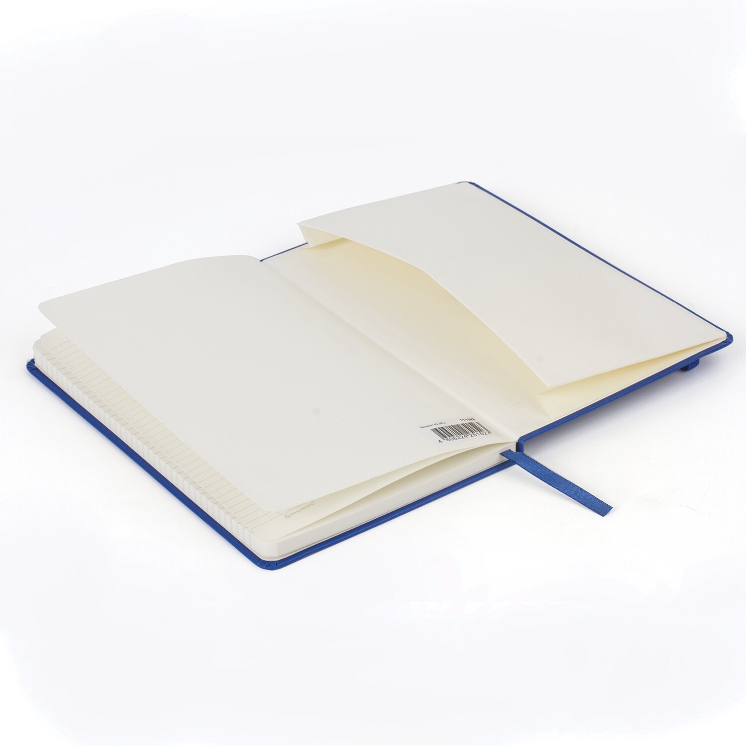 Твердая обложка стилизована под "классическую кожу". Имеет закругленные уголки, подходит для горячего тиснения и имеет резинку-фиксатор, благодаря чему не раскроется в сумке или портфеле и листы не помнутся. На внутренней стороне задней обложке есть декоративный конверт для разных мелочей в виде визиток, напоминалок или других милых и полезных мелочей. 80 листов позволят зафиксировать большой объем информации. Линовка блока в клетку (5х5 мм) дает возможность аккуратно заполнить цифровые значения, а также нанести чертежные зарисовки. Внутренний блок выполнен из офсета цвета слоновой кости плотностью 70 г/м2 и крепится к обложке с помощью книжного переплета. Дополнением является закладка-ляссе, с помощью которой при необходимости можно быстро открыть нужную страницу. Формат блокнота А5 (148х218 мм) позволит владельцу поместить его в кейс или сумку малых габаритов.