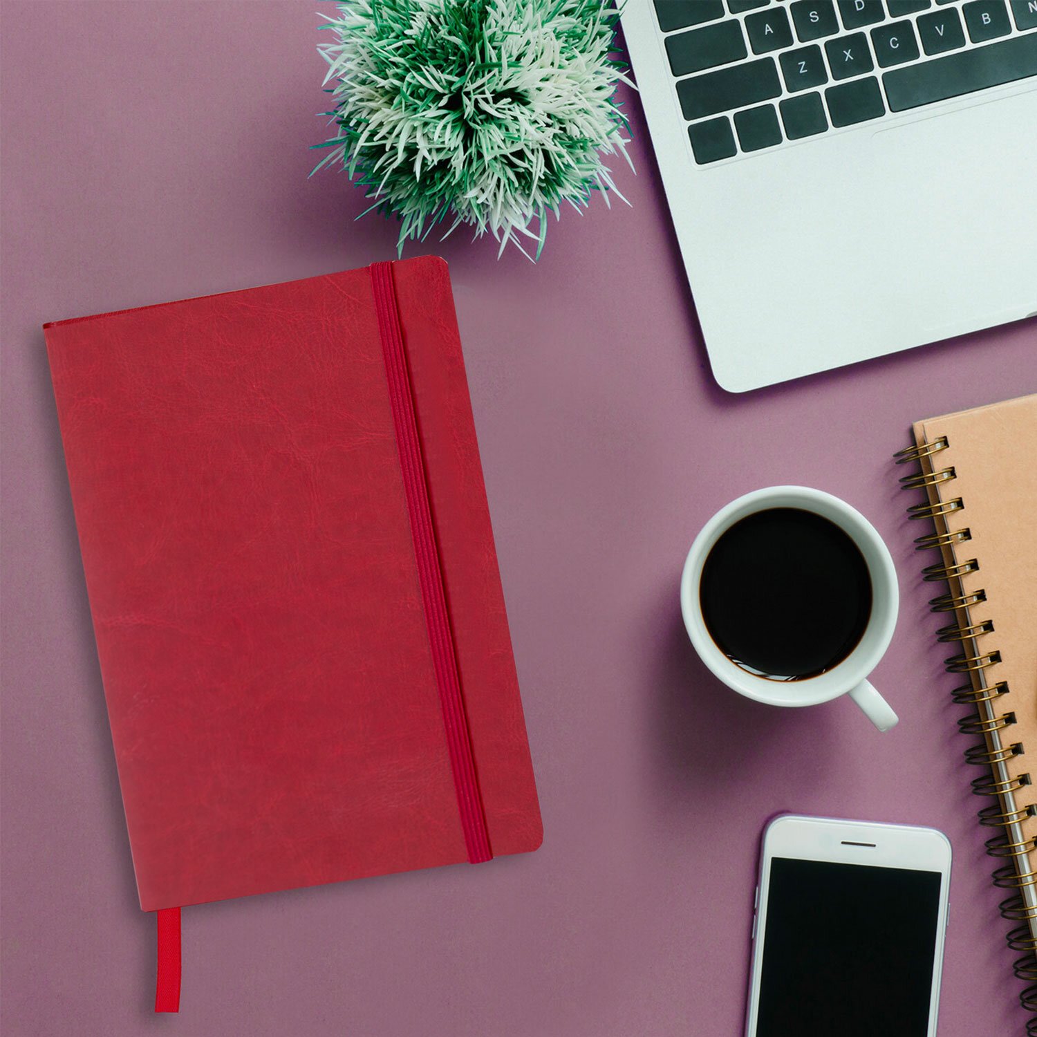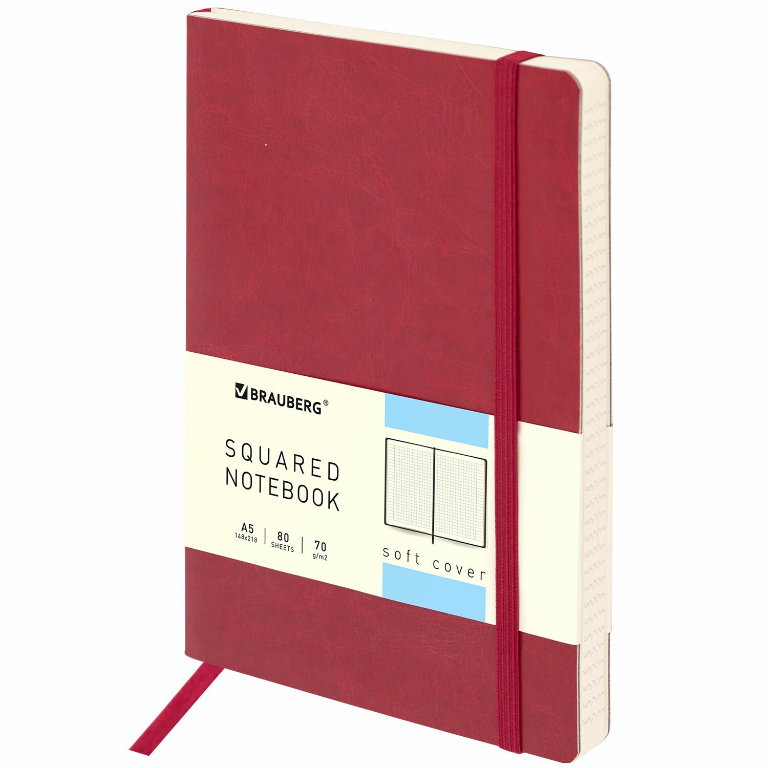 Блокнот А5 (148x218 мм), BRAUBERG "Metropolis Ultra", под кожу, 80 л., резинка, клетка, красный, 111018