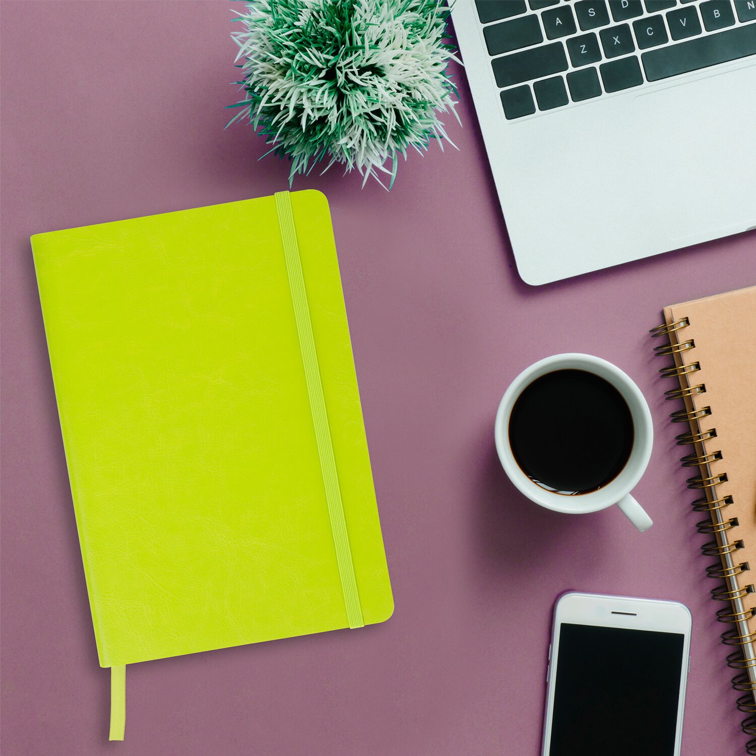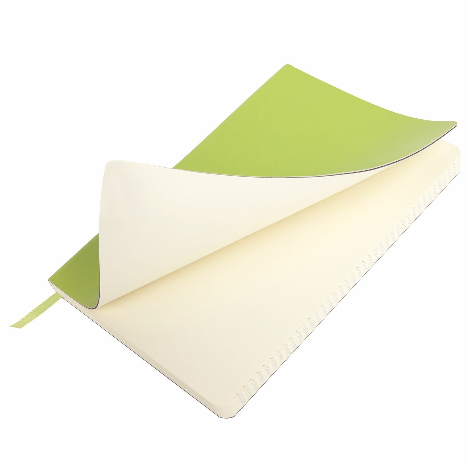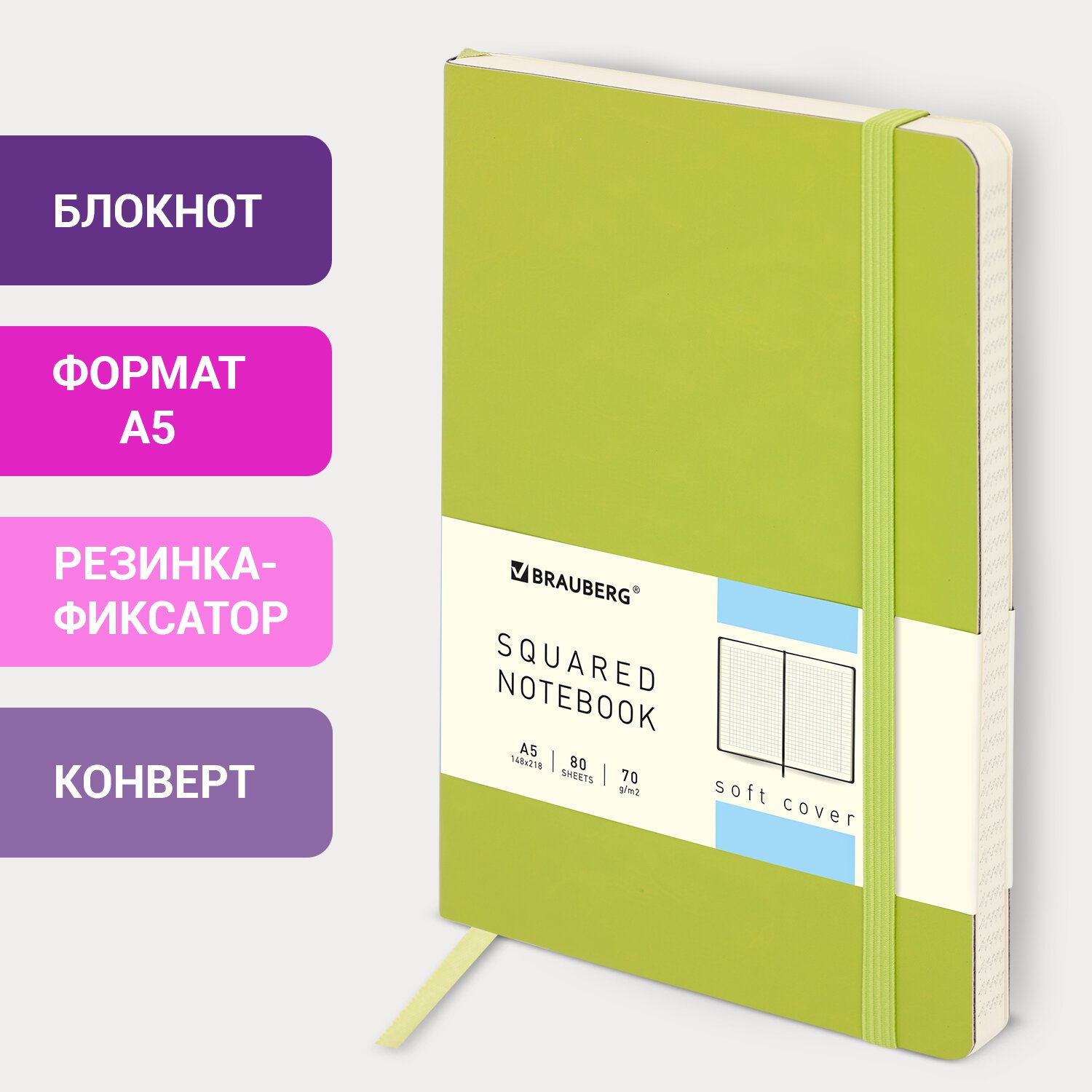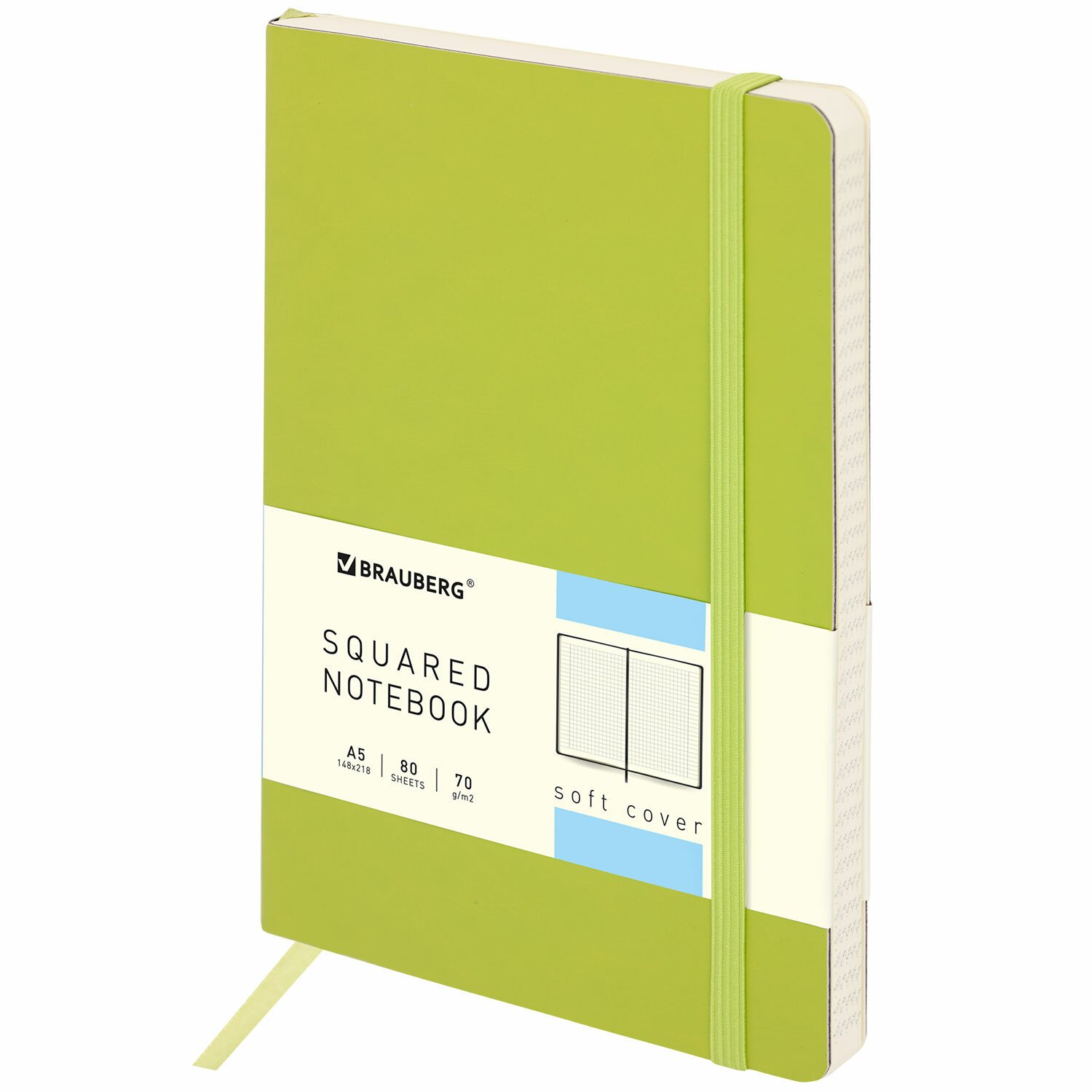 Блокнот А5 (148x218 мм), BRAUBERG "Metropolis Ultra", под кожу, 80 л., резинка, клетка, салатовый, 111020