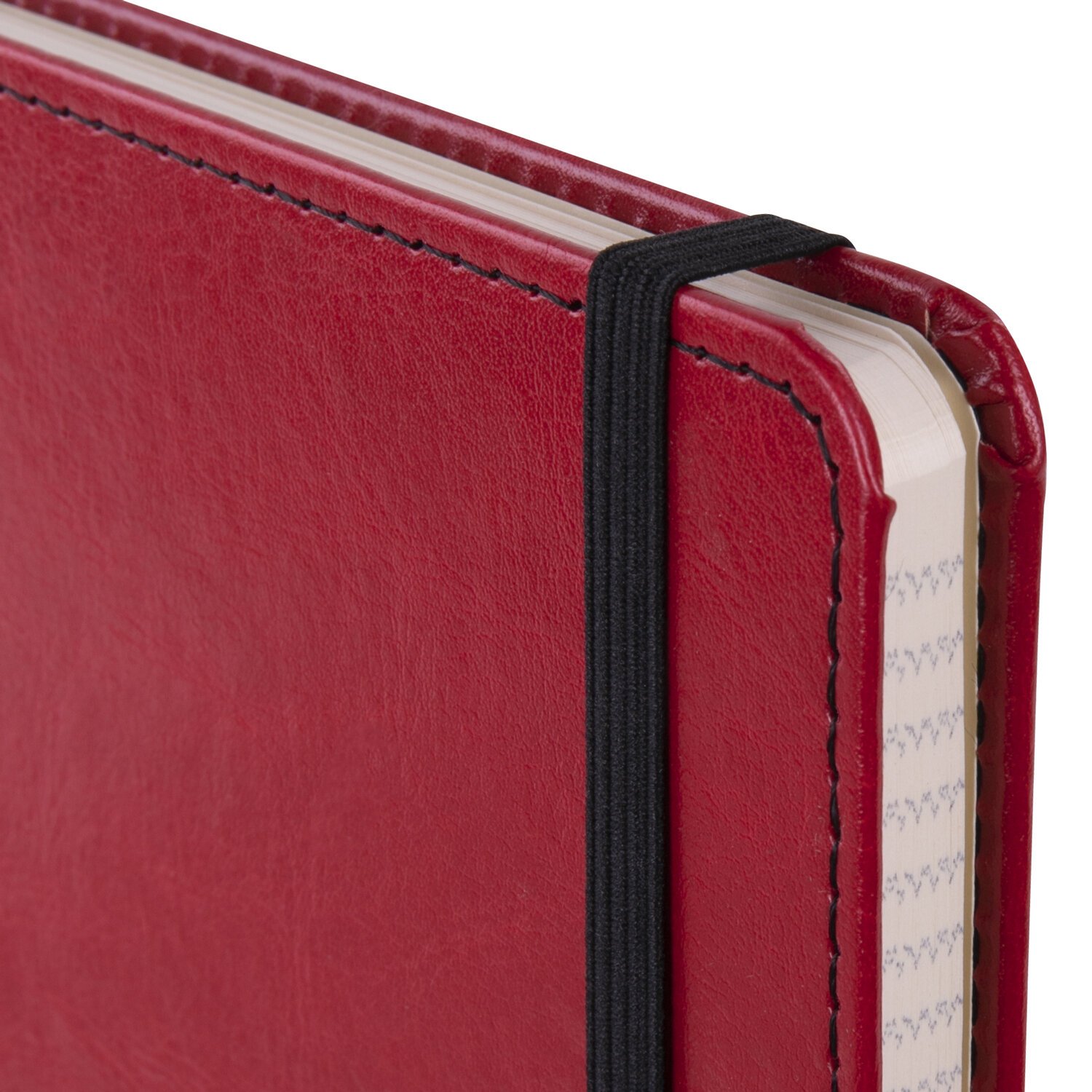 Твердая обложка стилизована под кожу красного цвета. Имеет закругленные уголки. Подходит для горячего тиснения. 80 листов позволят зафиксировать большой объем информации. Линовка блока в клетку (5х5 мм) дает возможность аккуратно заполнить цифровые значения, а также нанести чертежные зарисовки. Внутренний блок выполнен из офсета тонированного цвета плотностью 70 г/м2 и крепится к обложке с помощью книжного переплета. На внутренней стороне задней обложки есть декоративный конверт для разных мелочей в виде визиток, напоминалок и т. д. Снабжен резинкой-фиксатором, благодаря чему блокнот не откроется в сумочке или портфеле и листы не помнутся. Резинка-фиксатор и прострочка по периметру блокнота окрашены на контрасте цвета обложки, что придает блокноту изысканность и шарм. Дополнением является закладка-ляссе, с помощью которой при необходимости можно быстро открыть нужную страницу. Формат блокнота А5 (148х218 мм) позволит владельцу поместить его в кейс или сумку малых габаритов.