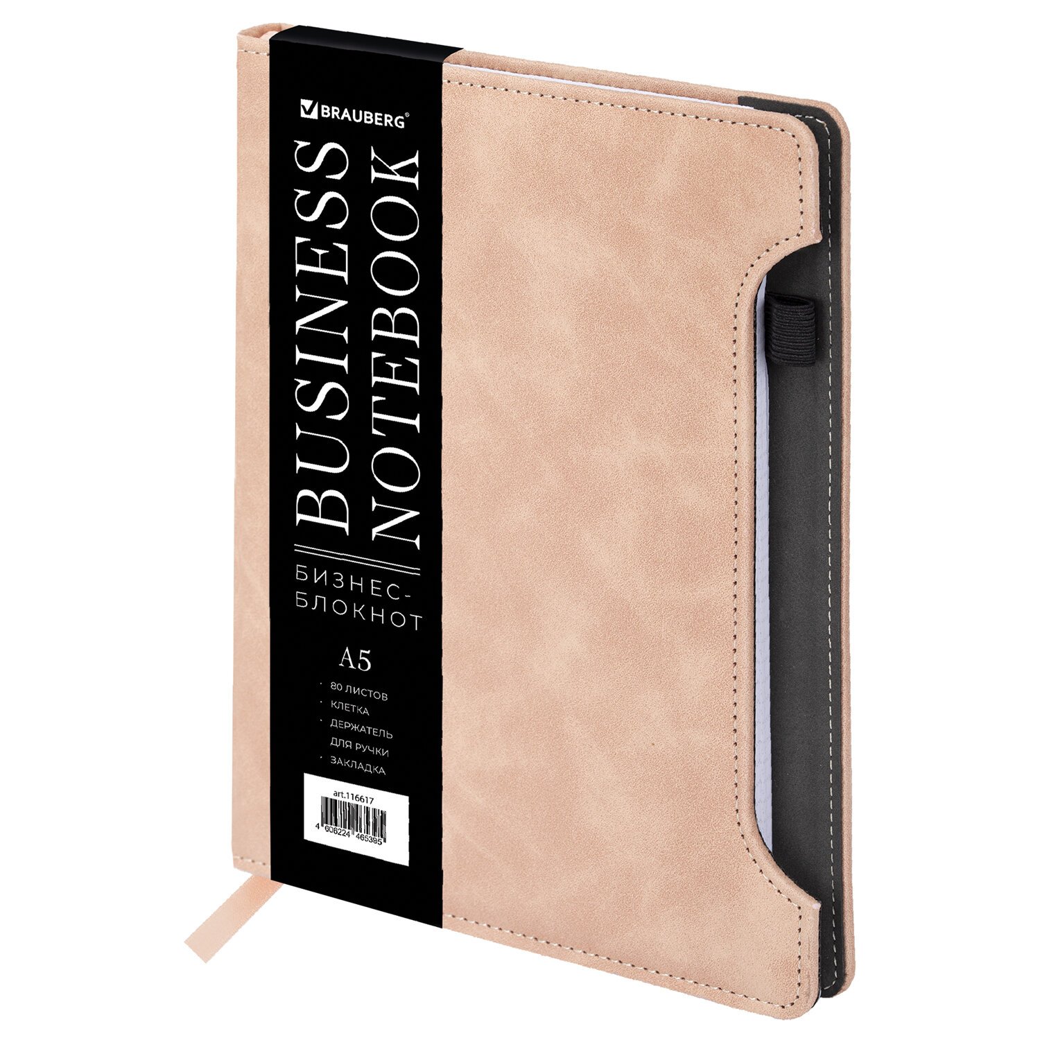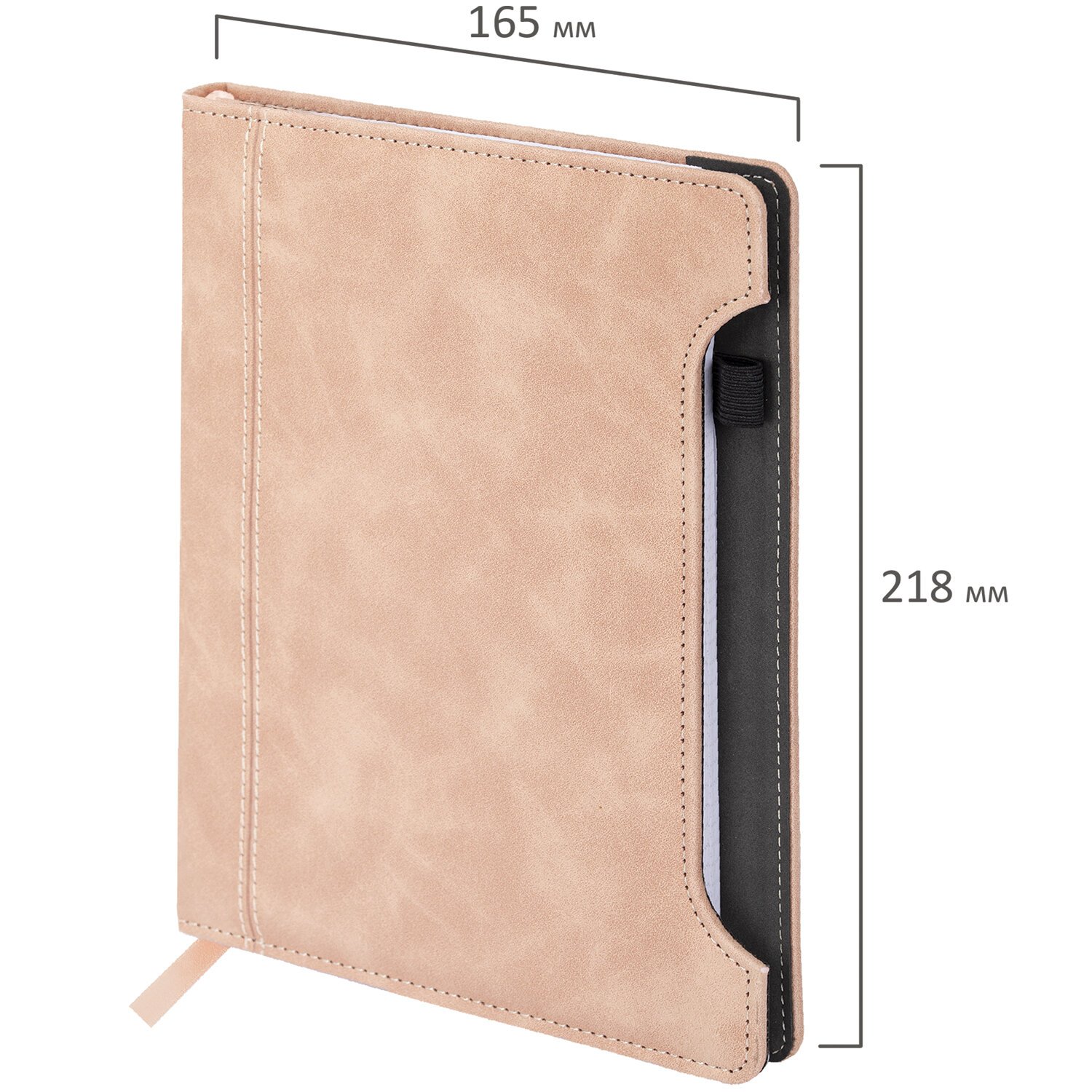 Блокнот А5 138x213 мм BRAUBERG Velvet, резинка, держатель, 80 л., клетка, бежевый, 116240