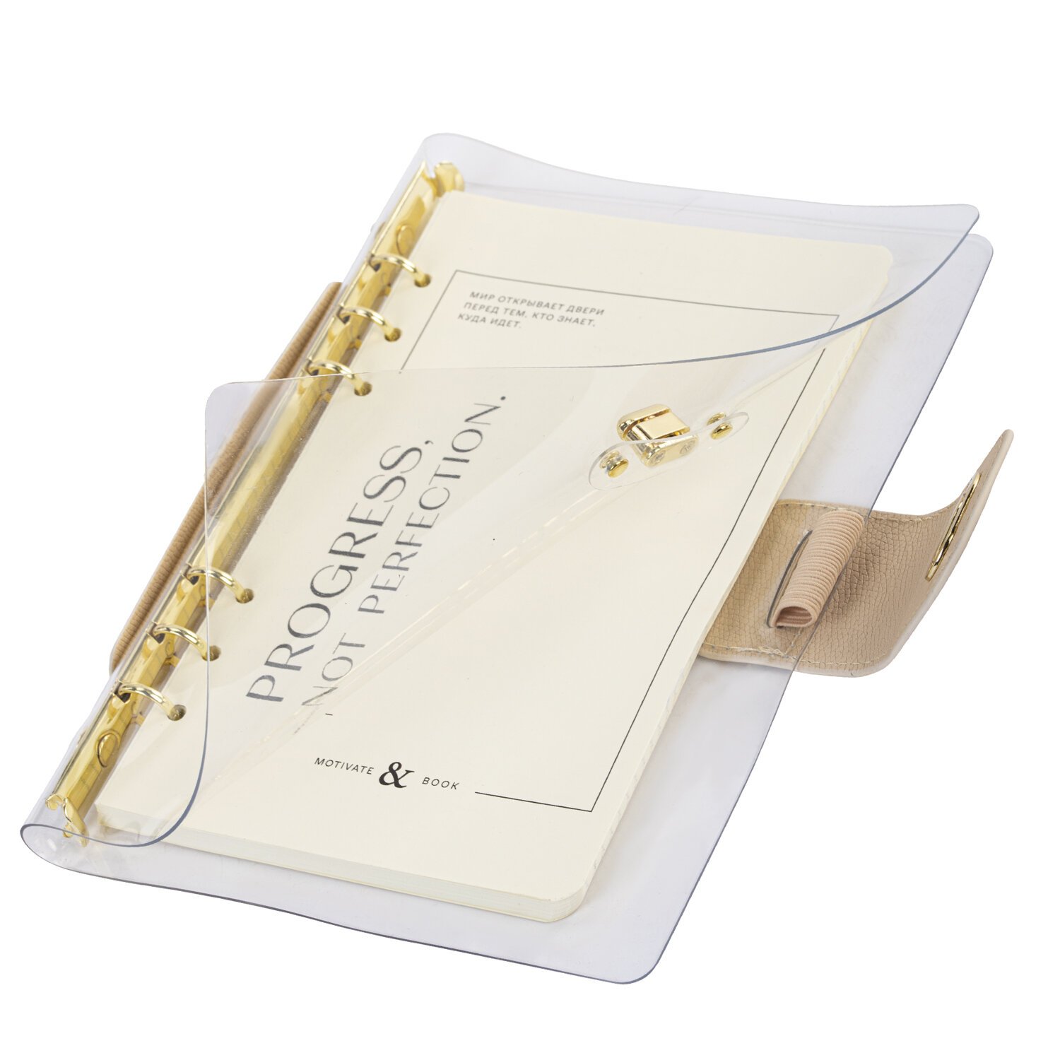 Блокнот А5 180x235мм BRAUBERG "Fabulous", гибкий, на кольцах, застежка, 80л, бежевый, 116194