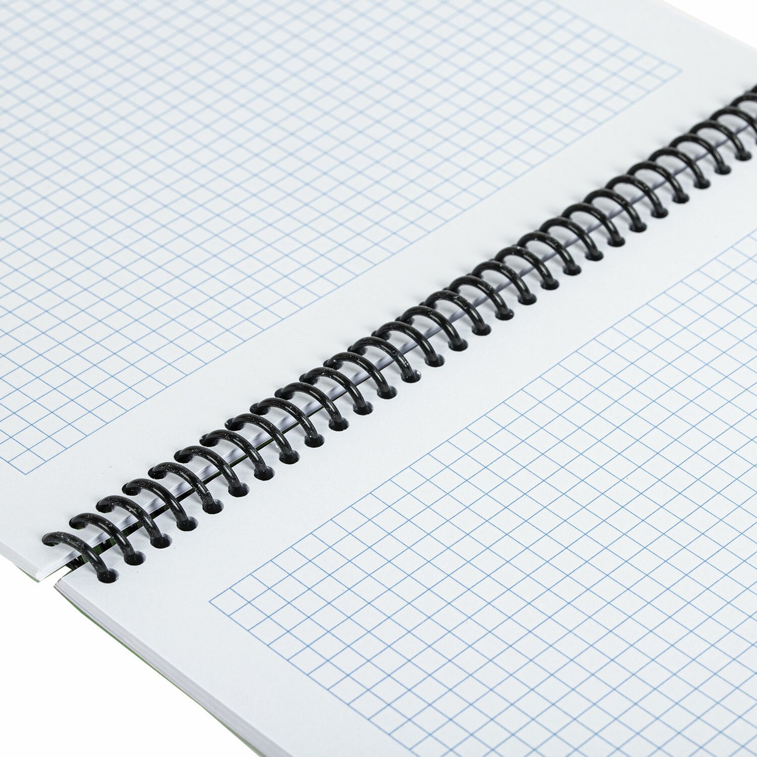 Блокнот формата А4 на спирали содержит 80 листов с линовкой в клетку, что позволяет зафиксировать большой объем нужной информации. Имеет верхнее расположение переплета. Обложка выполнена из пластика, что делает блокнот более износоустойчивым. Внутренний блок состоит из белой офсетной бумаги плотностью 70 г/м2.