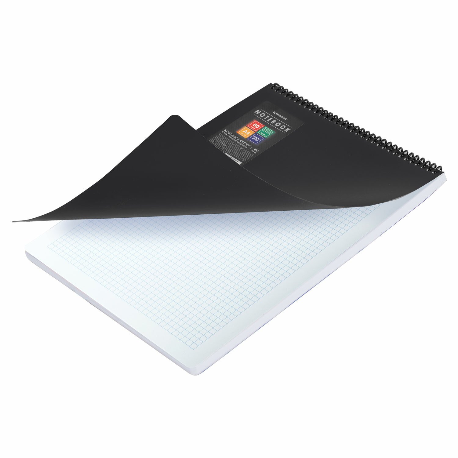 Блокнот БОЛЬШОГО ФОРМАТА А4, 80 л., обложка пластик, клетка, BRAUBERG "Metropolis", ЧЕРНЫЙ, 115577