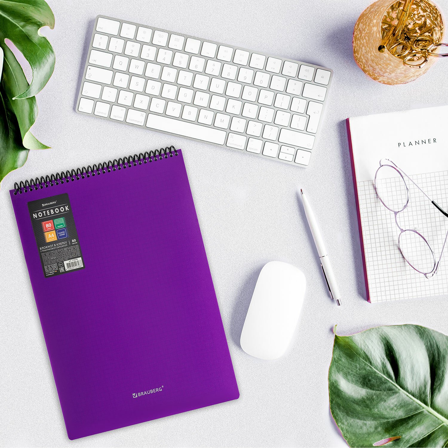 Блокнот БОЛЬШОГО ФОРМАТА А4, 80 л., обложка пластик, клетка, BRAUBERG "Metropolis", ФИОЛЕТОВЫЙ, 115576