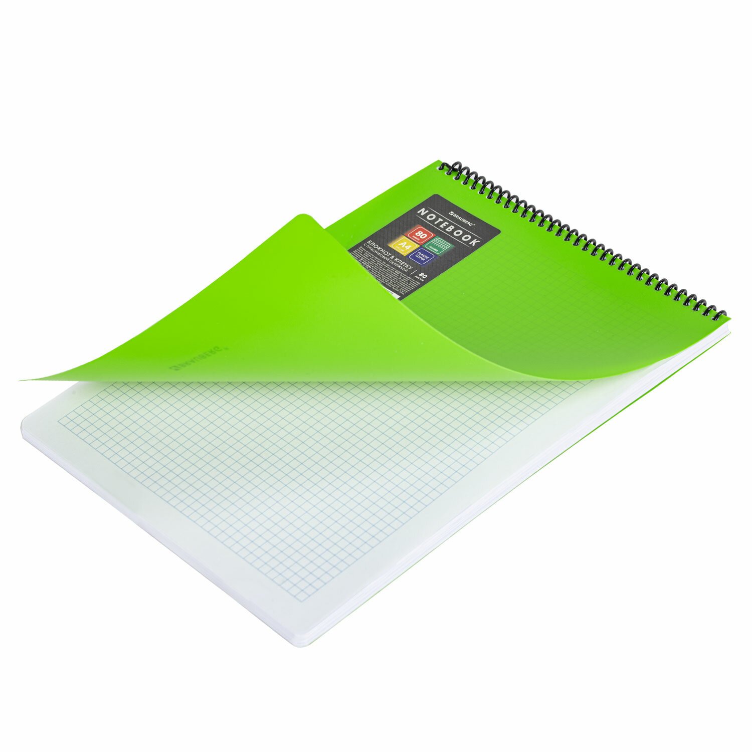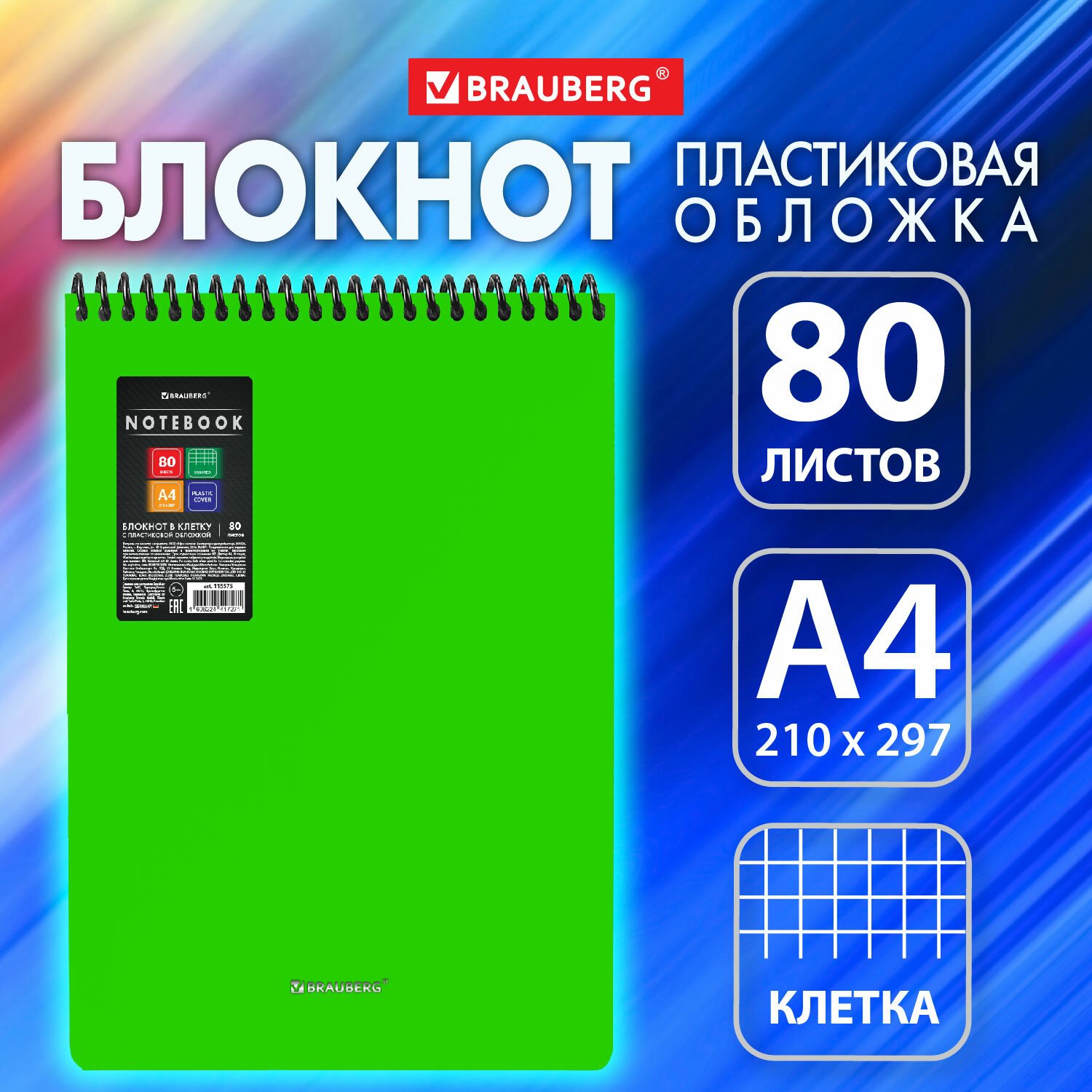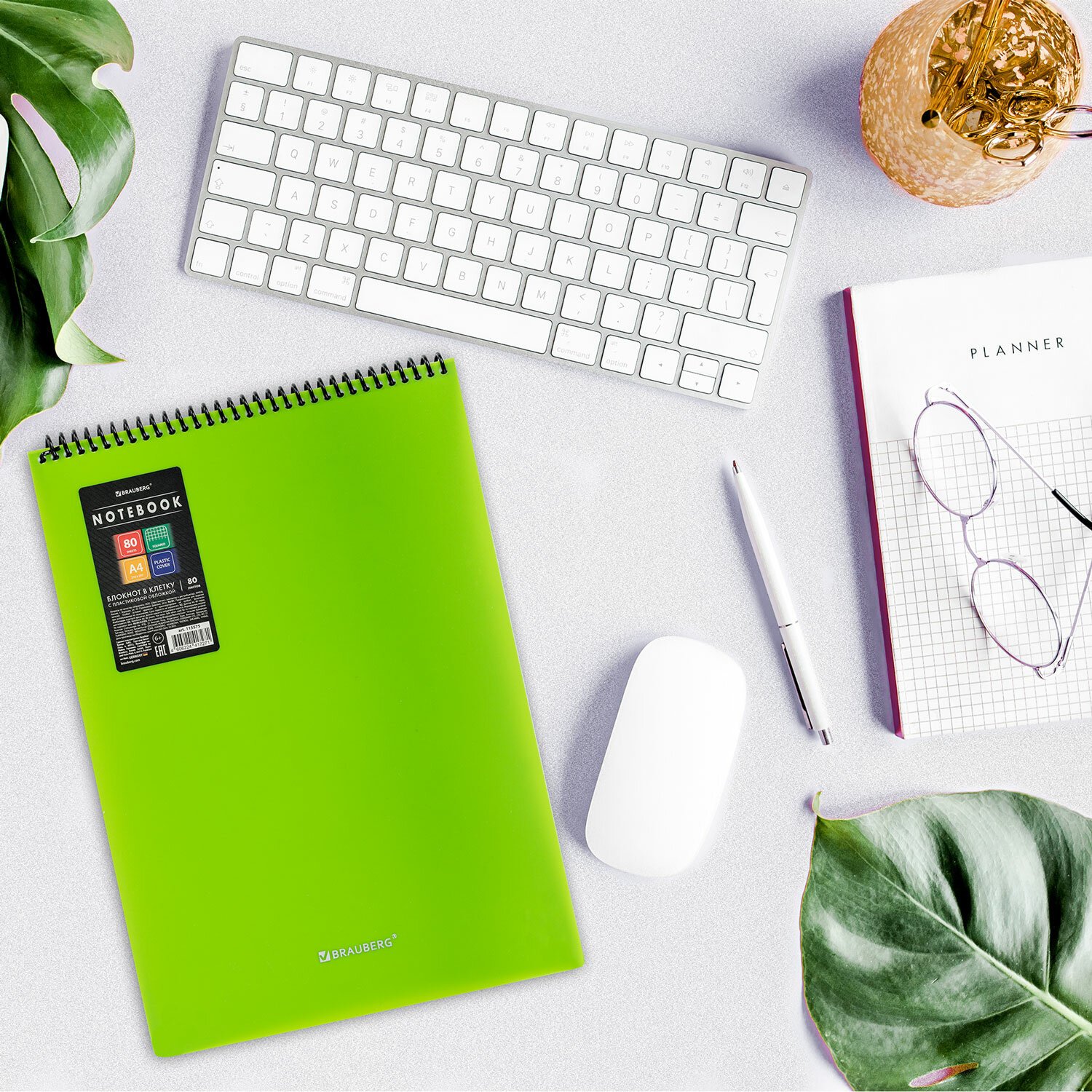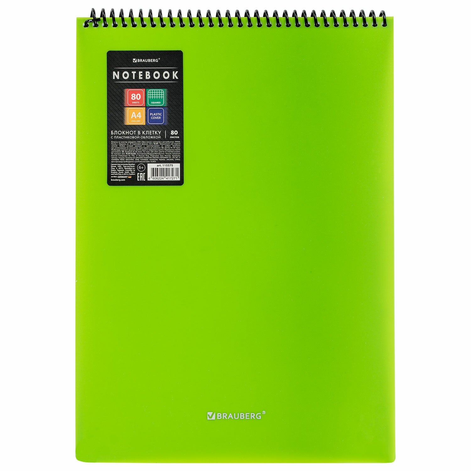 Блокнот БОЛЬШОГО ФОРМАТА А4, 80 л., обложка пластик, клетка, BRAUBERG "Metropolis", ЗЕЛЕНЫЙ, 115575