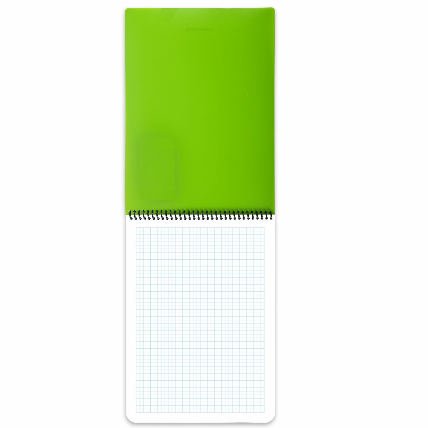 Блокнот формата А4 на спирали содержит 80 листов с линовкой в клетку, что позволяет зафиксировать большой объем нужной информации. Имеет верхнее расположение переплета. Обложка выполнена из пластика, что делает блокнот более износоустойчивым. Внутренний блок состоит из белой офсетной бумаги плотностью 70 г/м2.