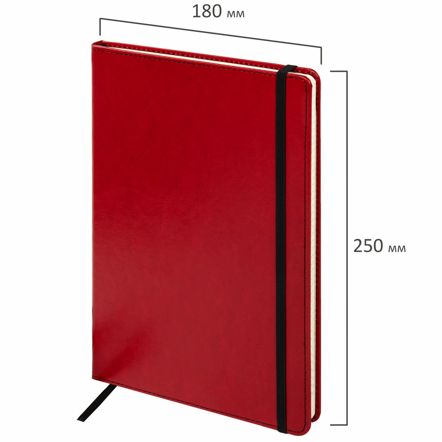 Твердая обложка стилизована под кожу красного цвета. Имеет закругленные уголки. Подходит для горячего тиснения. 80 листов позволят зафиксировать большой объем информации. Линовка блока в клетку (5х5 мм) дает возможность аккуратно заполнить цифровые значения, а также нанести чертежные зарисовки. Внутренний блок выполнен из офсета тонированного цвета плотностью 70 г/м2 и крепится к обложке с помощью книжного переплета. На внутренней стороне задней обложки есть декоративный конверт для разных мелочей в виде визиток, напоминалок и т. д. Снабжен резинкой-фиксатором, благодаря чему блокнот не откроется в сумочке или портфеле и листы не помнутся. Резинка-фиксатор и прострочка по периметру блокнота окрашены на контрасте цвета обложки, что придает блокноту изысканность и шарм. Дополнением является закладка-ляссе, с помощью которой при необходимости можно быстро открыть нужную страницу. Формат блокнота В5 (180х250 мм).