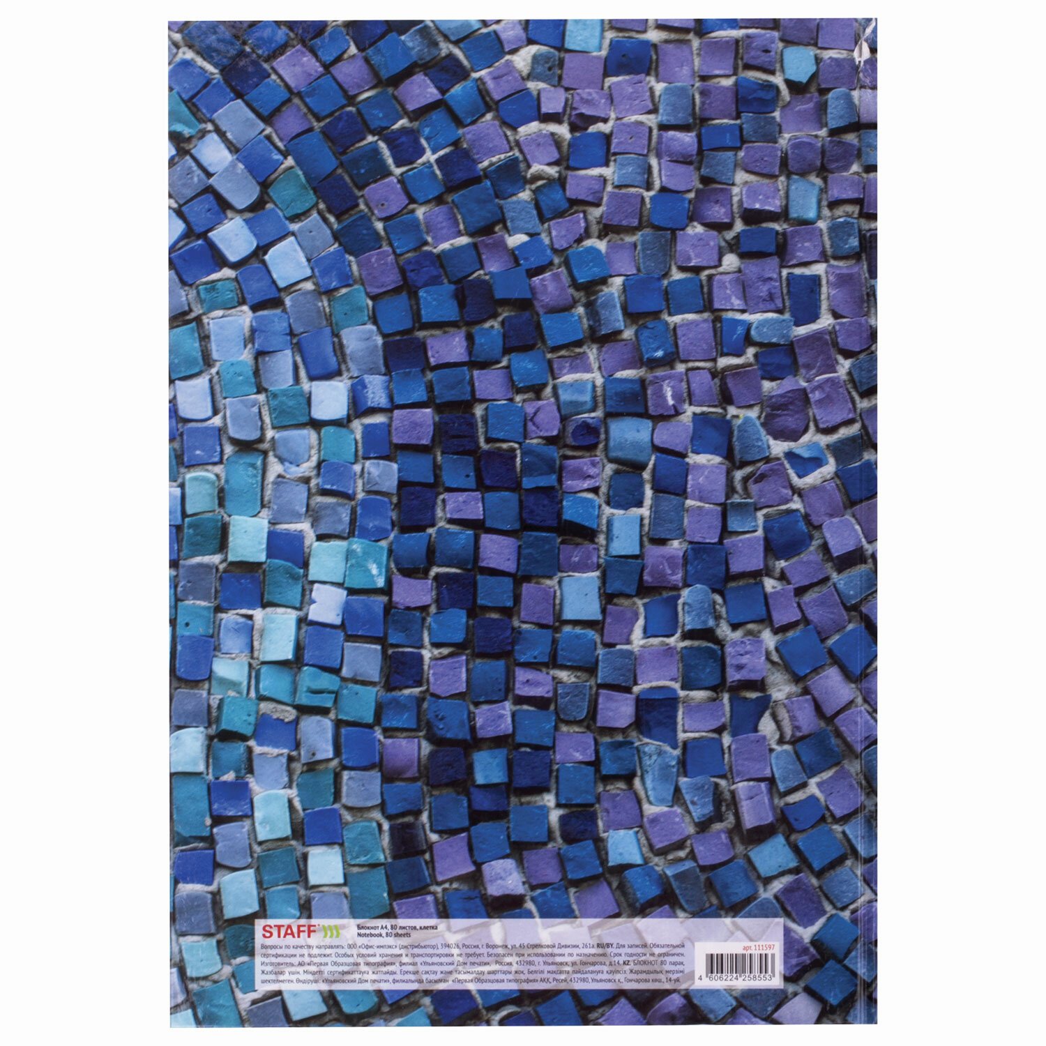 Блокнот БОЛЬШОЙ ФОРМАТ 205х290 мм А4, 80 л., твердый, клетка, STAFF, "Венеция", 111597