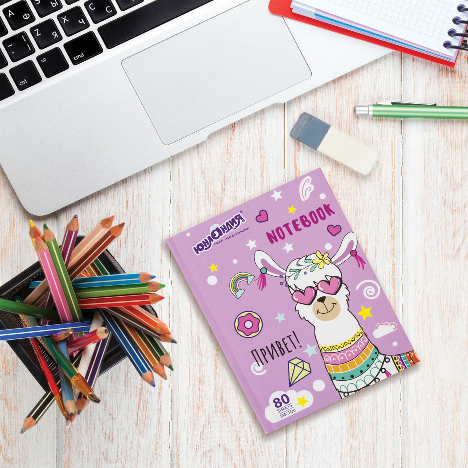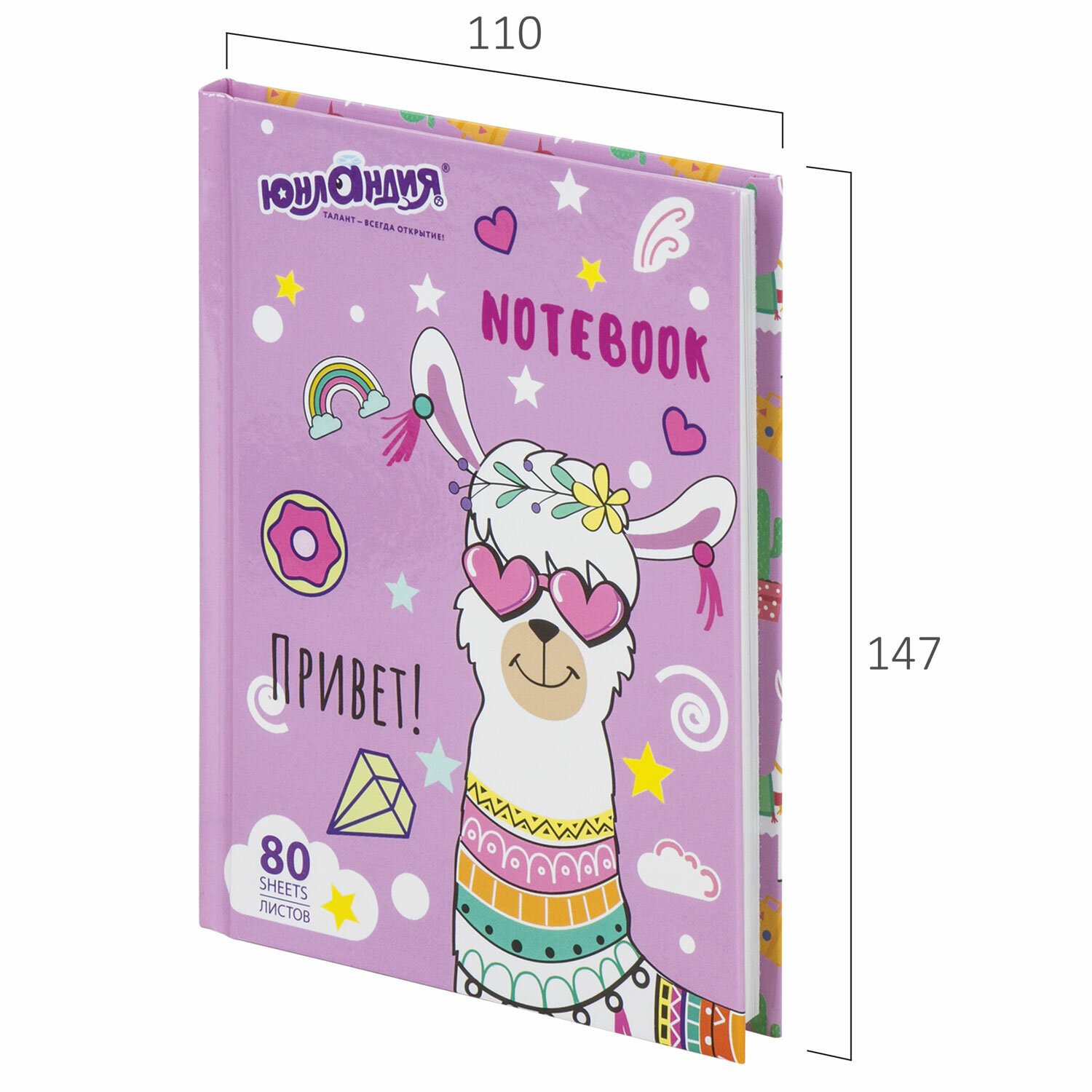 Блокнот МАЛЫЙ ФОРМАТ 110х147 мм, А6, 80 л., твердый, клетка, ЮНЛАНДИЯ, "Лама", 111619