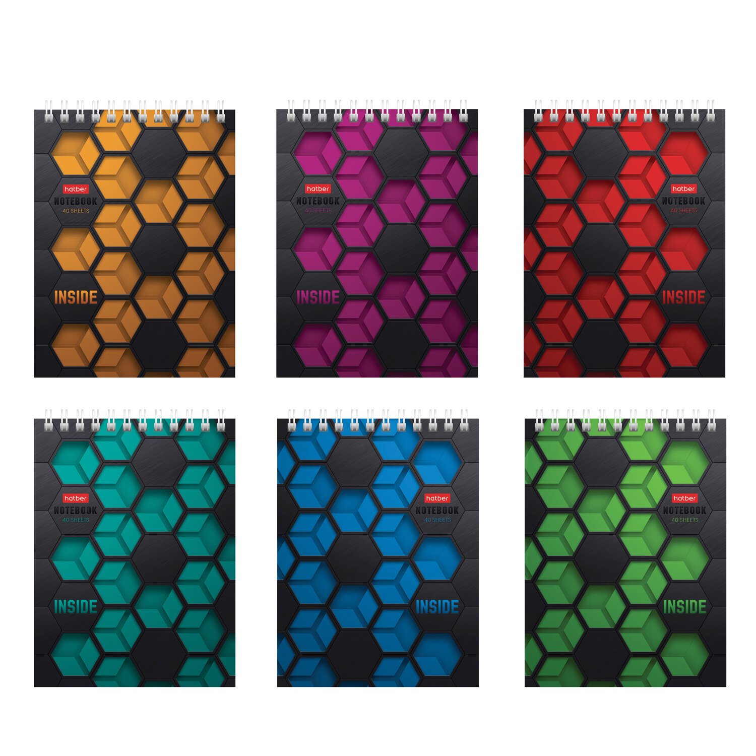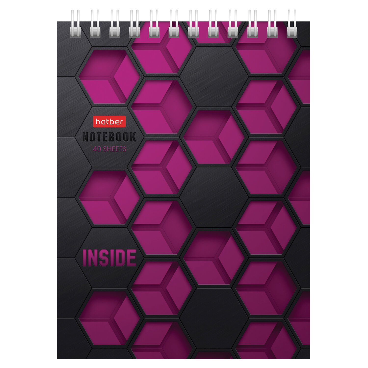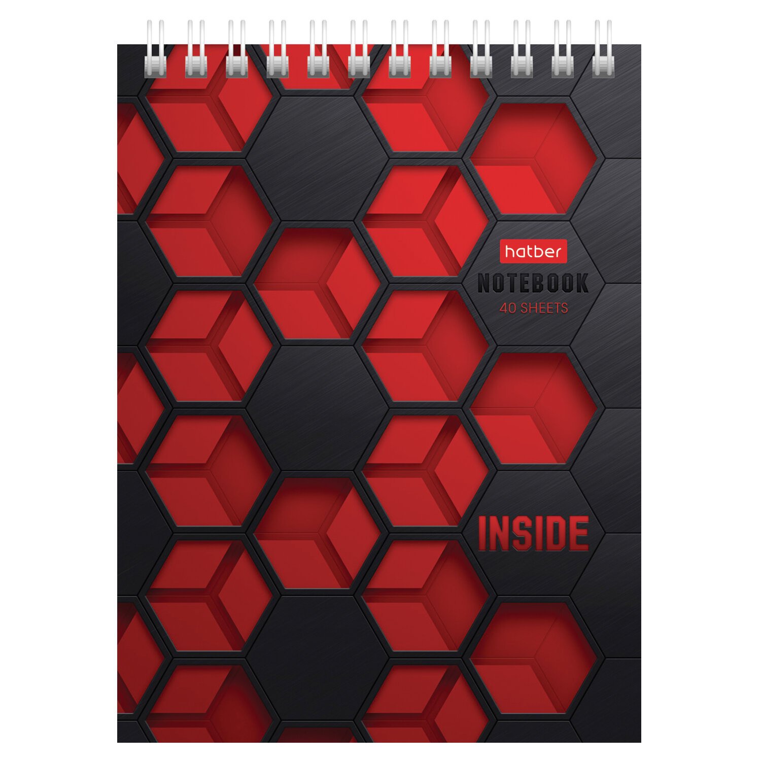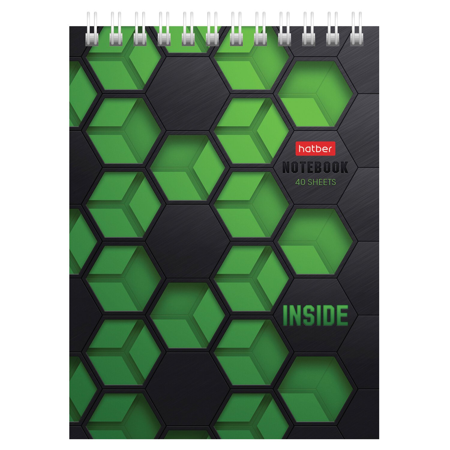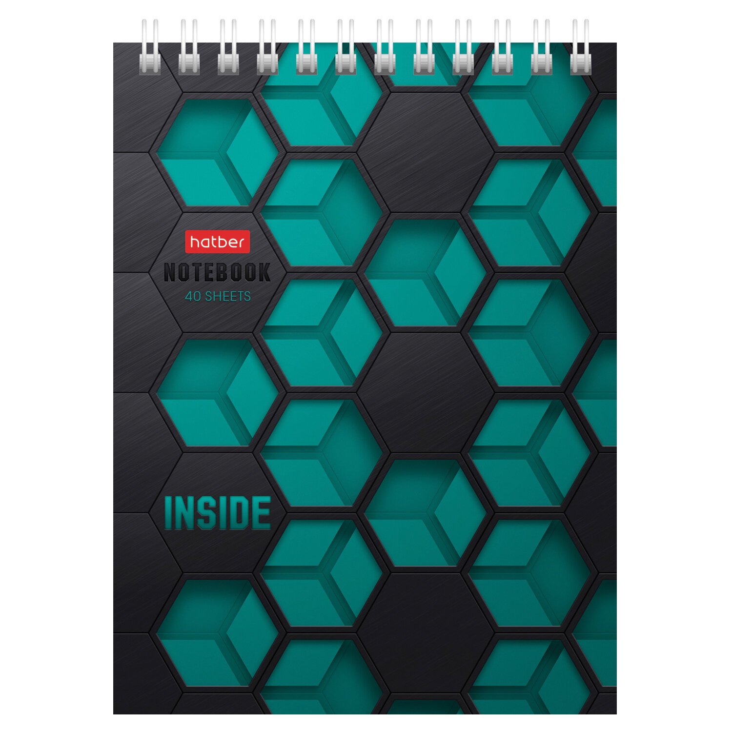 Блокнот МАЛЫЙ ФОРМАТ А6 40л, гребень, картон, клетка, HATBER, INSIDE, 080475, 40Б6В1гр