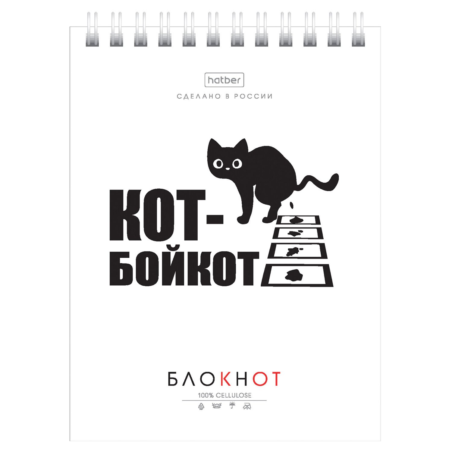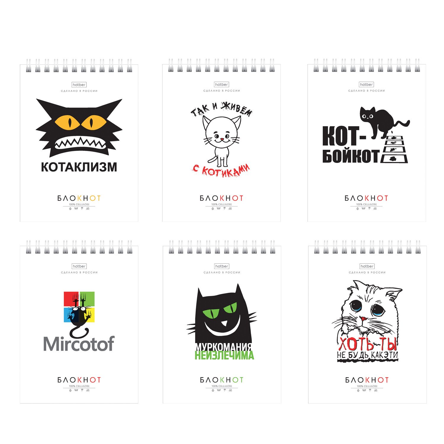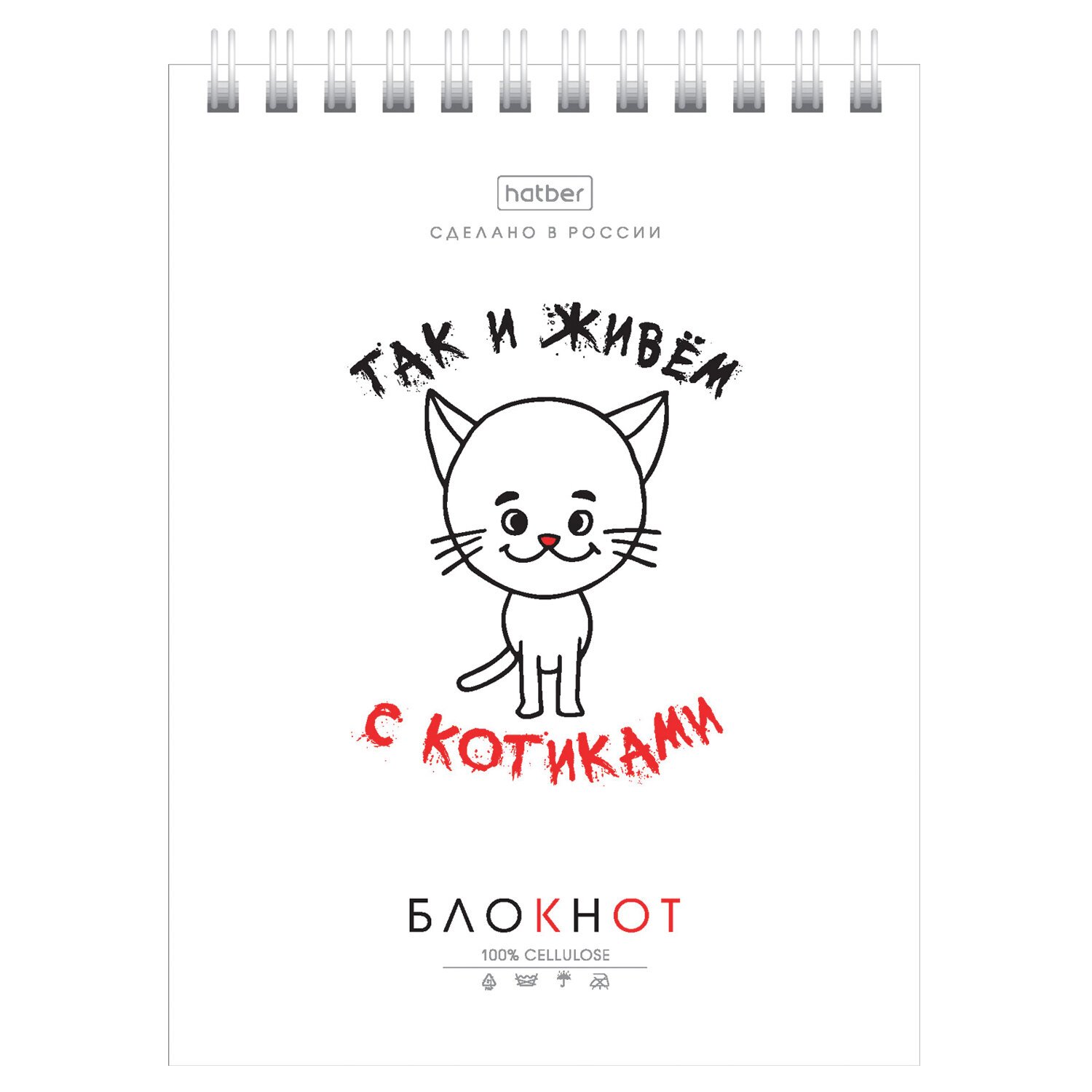 Блокнот МАЛЫЙ ФОРМАТ А6 40л, гребень, картон, клетка, HATBER, Муркомания, 090640, 40Б6В1гр