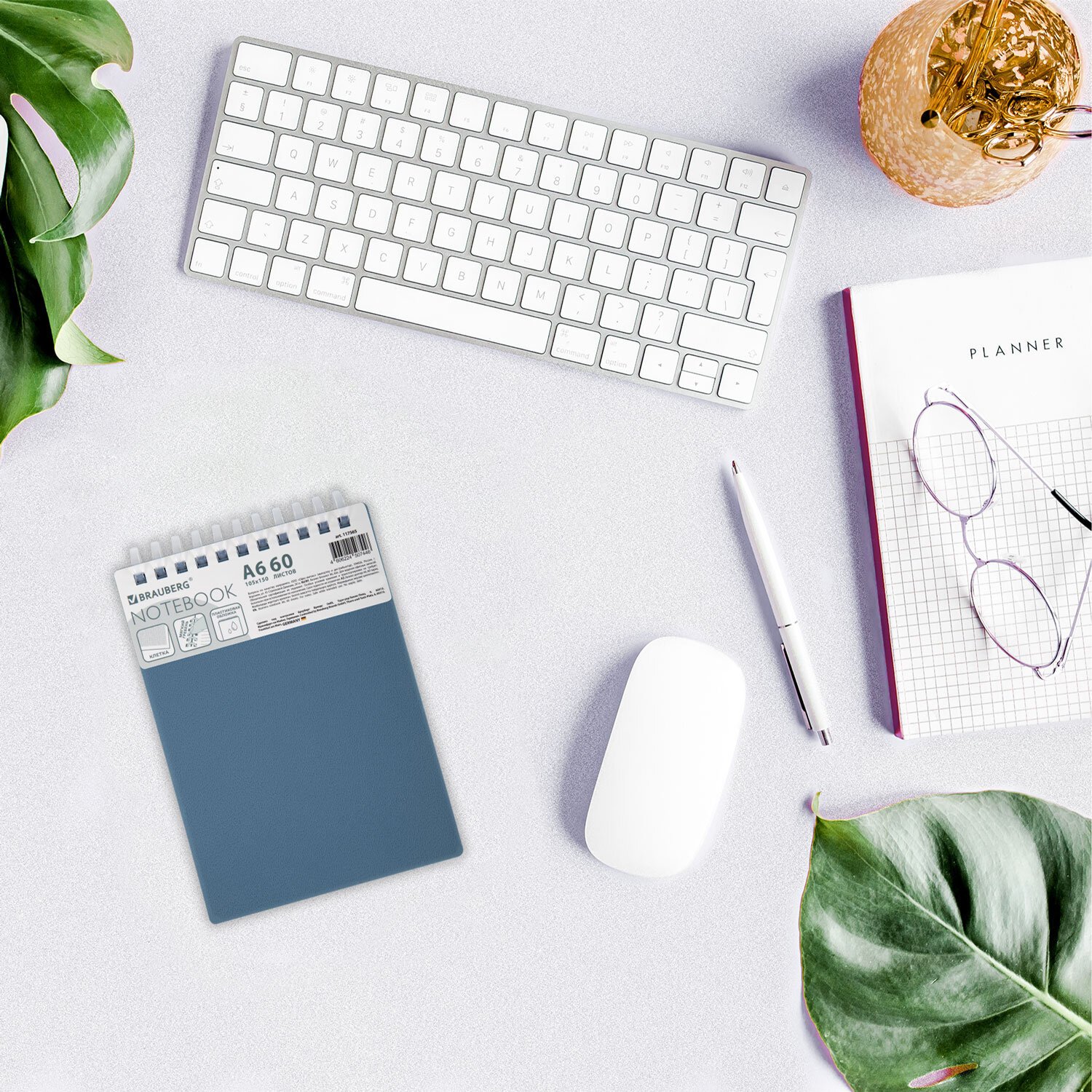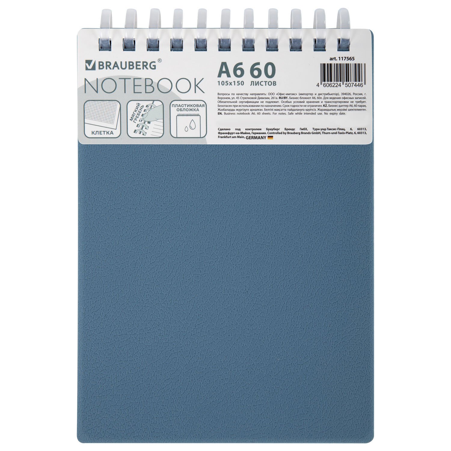 Блокнот МАЛЫЙ ФОРМАТ А6 105х145 мм, 60 л., гребень, пластик+картон, клетка, BRAUBERG, "Офис", 125398