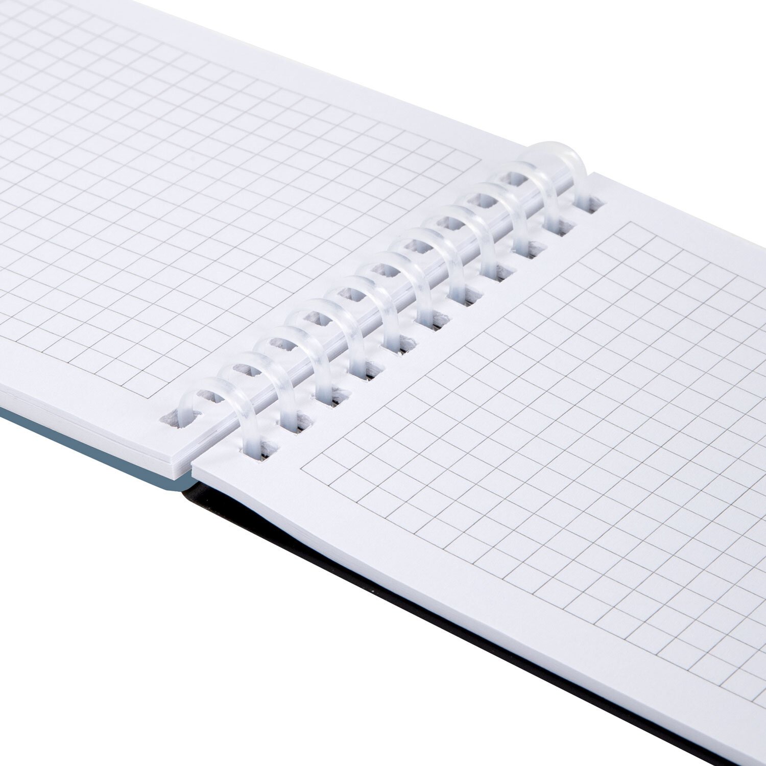 Прочная пластиковая обложка надежно защищает внутренний блок от повреждений и влаги, продлевая срок службы блокнота. Внутри — 60 листов высококачественной офсетной бумаги плотностью 70 г/м2 и белизной 100%, обеспечивающей комфортное письмо. Линовка блока - клетка. Листы скреплены мягким силиконовым гребнем, что обеспечивает удобство использования блокнота. Блокнот формата А6 — это компактное и удобное решение для быстрых записей в любом месте. Он легко помещается в карман, сумку или рюкзак, что делает его идеальным для повседневного использования.