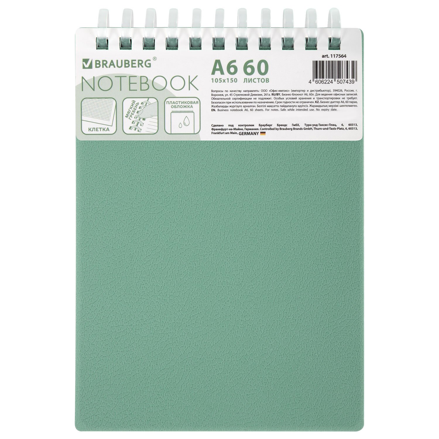 Блокнот МАЛЫЙ ФОРМАТ А6 105х145 мм, 60 л., гребень, пластик+картон, клетка, BRAUBERG, "Офис", 125398